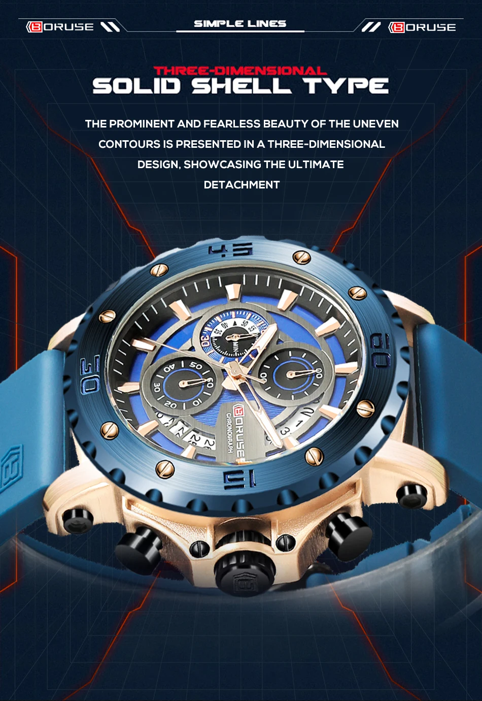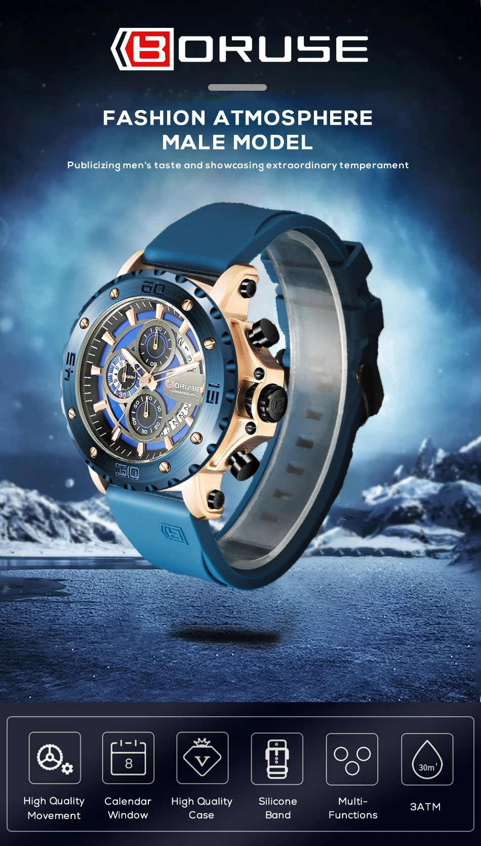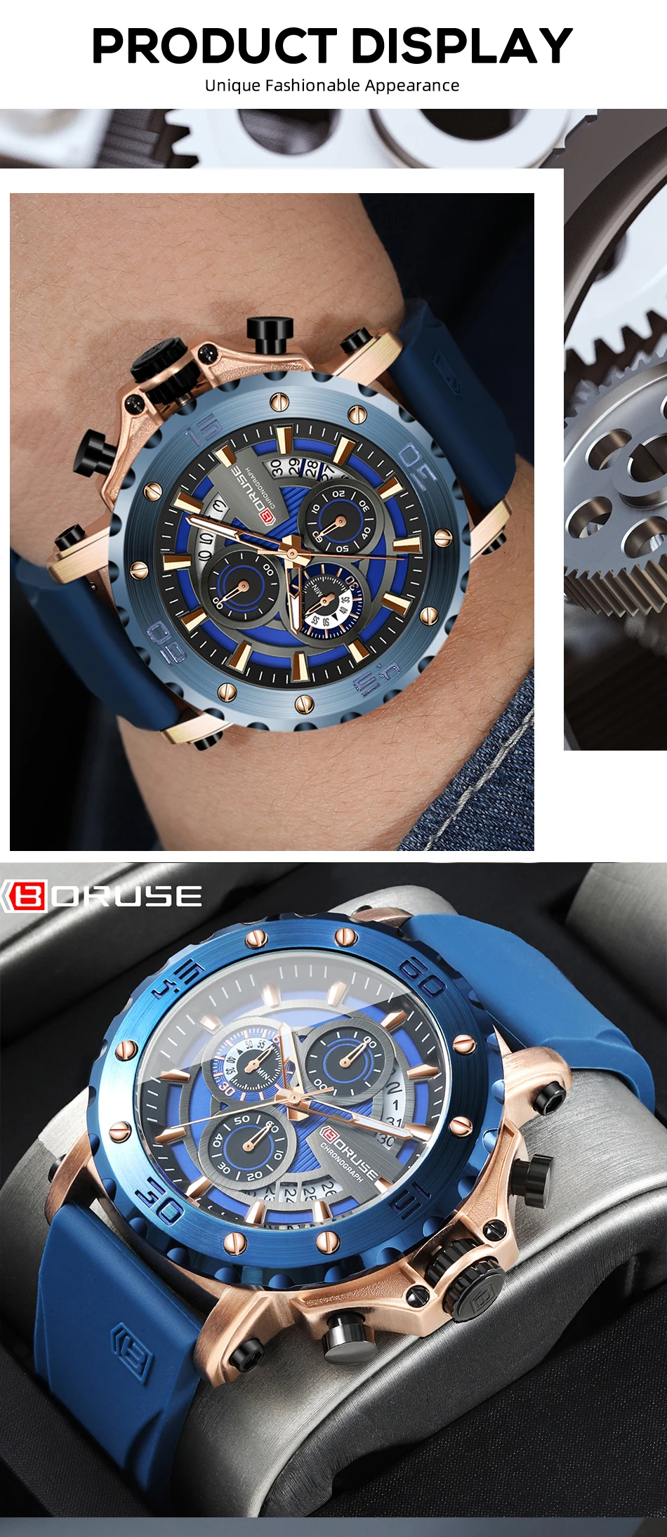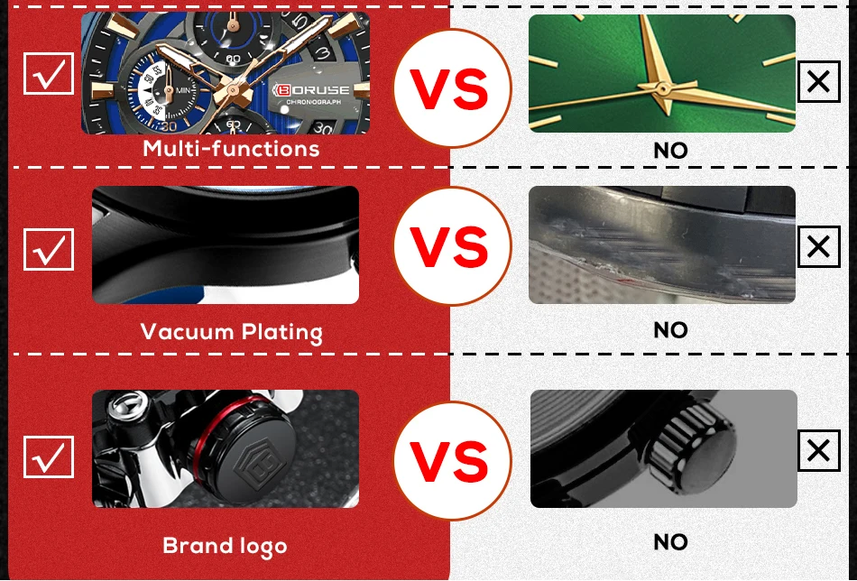 BORUSE Fashion Men Quartz Watches Top Brand Luxury Automatic Date Wristwatch for Men Waterproof Sport Chronograph Luminous Clock