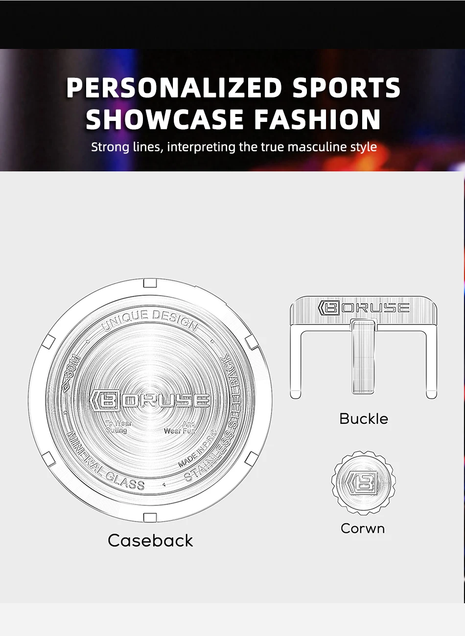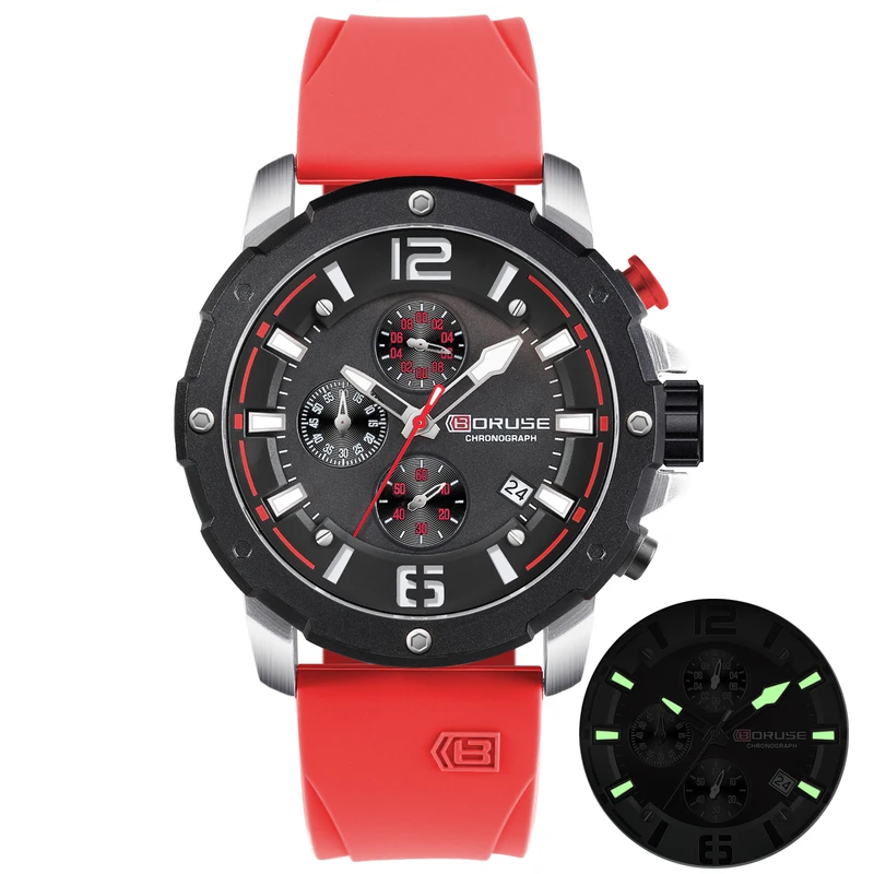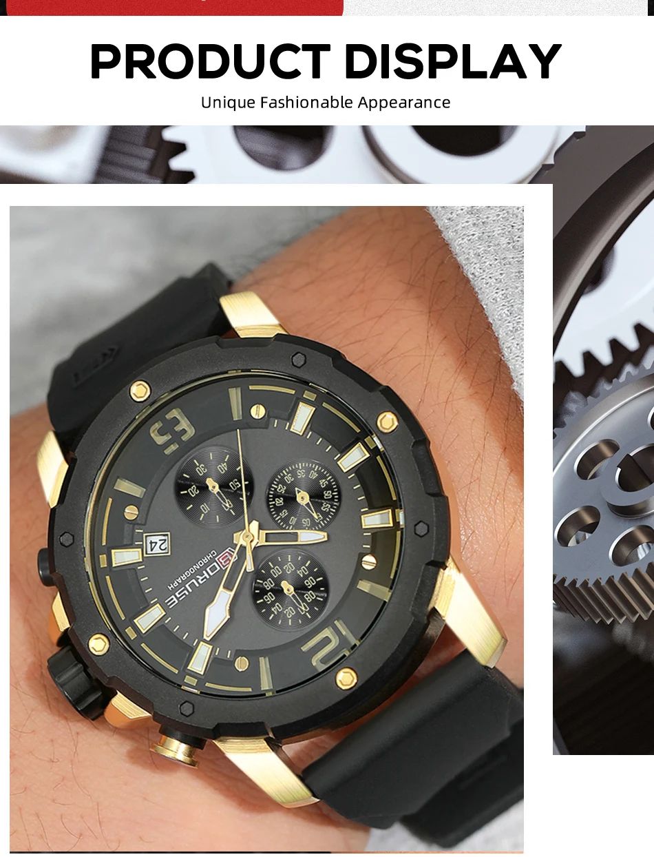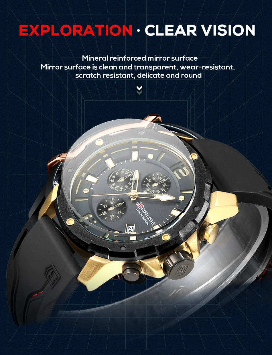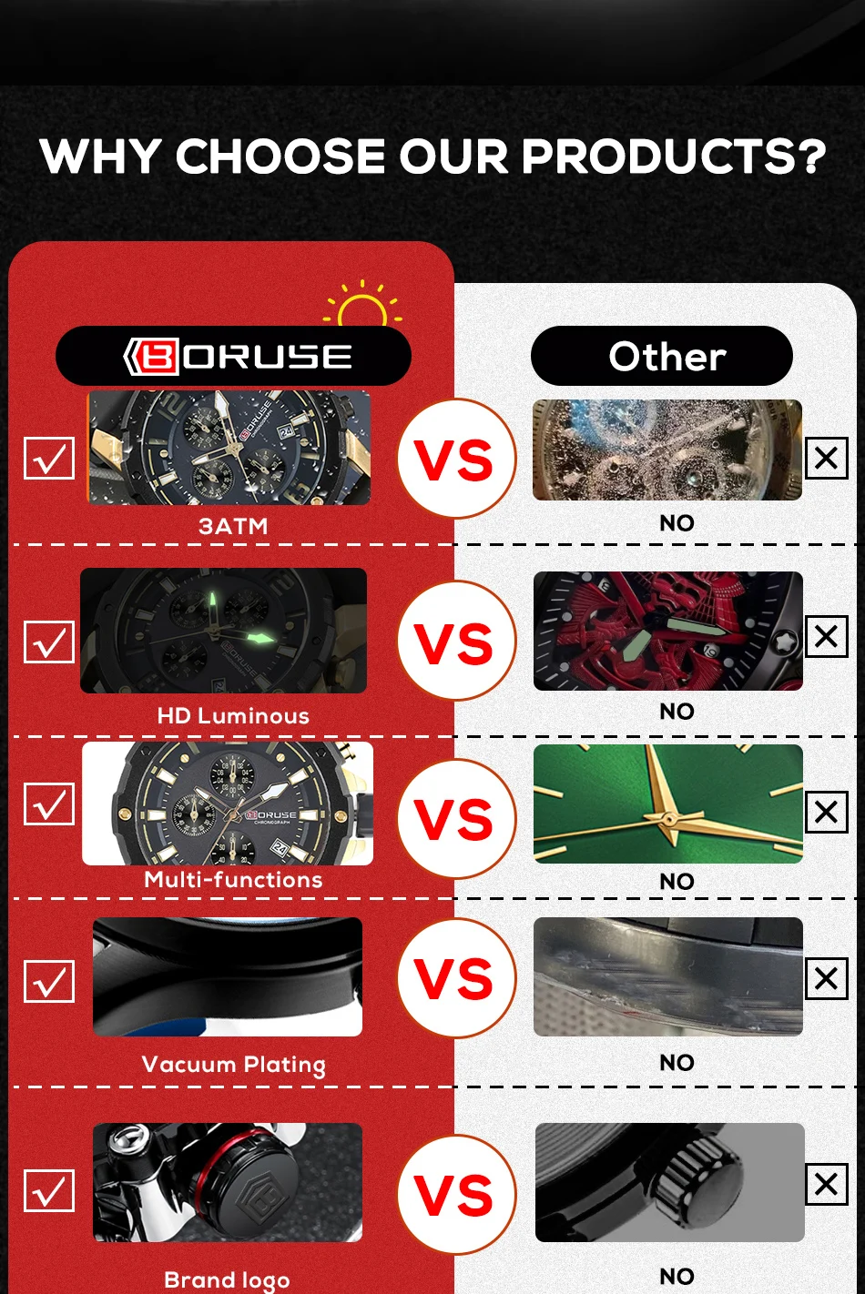 Boruse fashion mens watches top brand black gold quartz watch man silicone Chronos business wrist watches waterproof