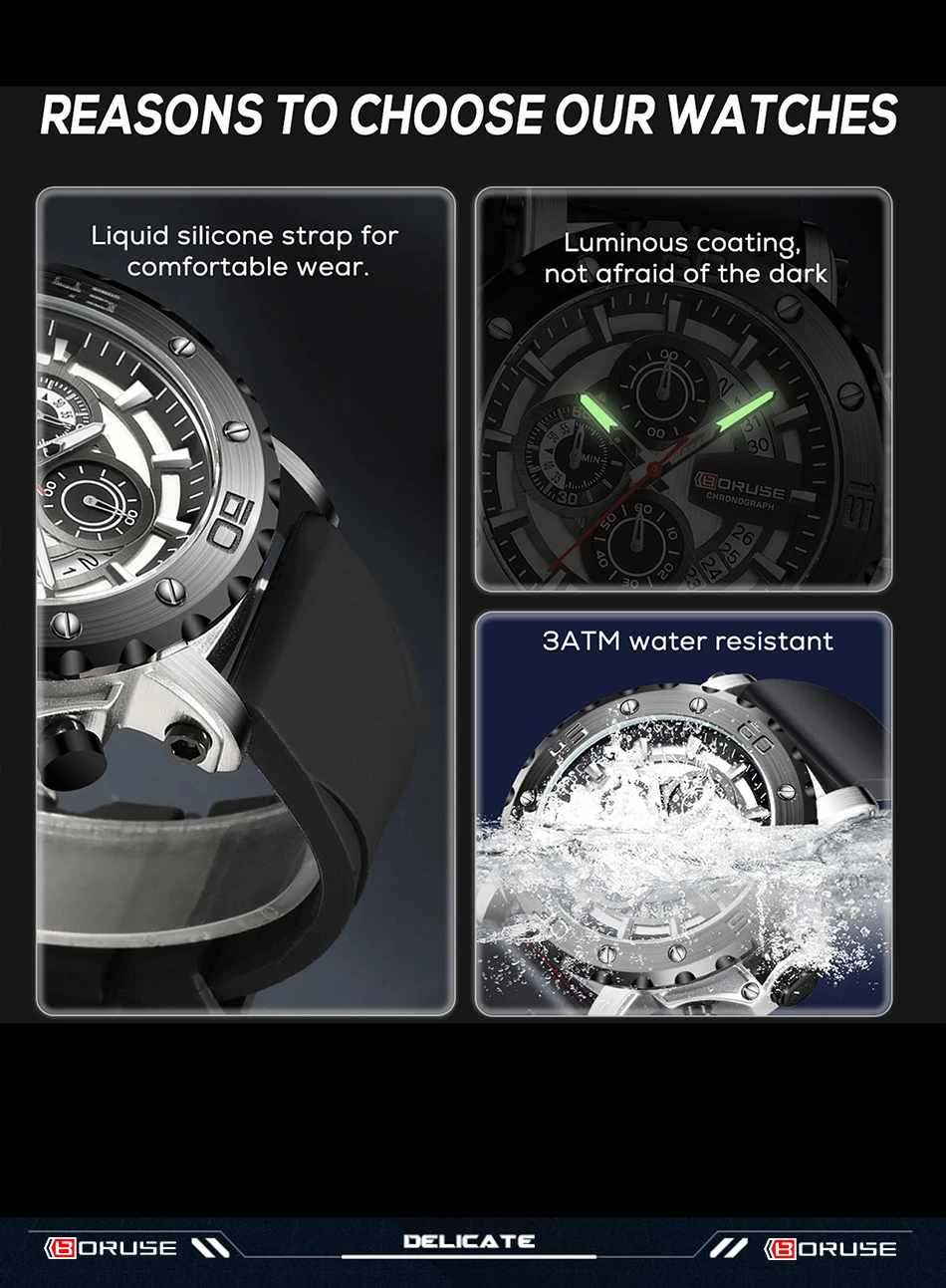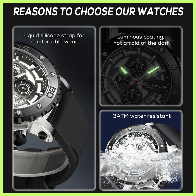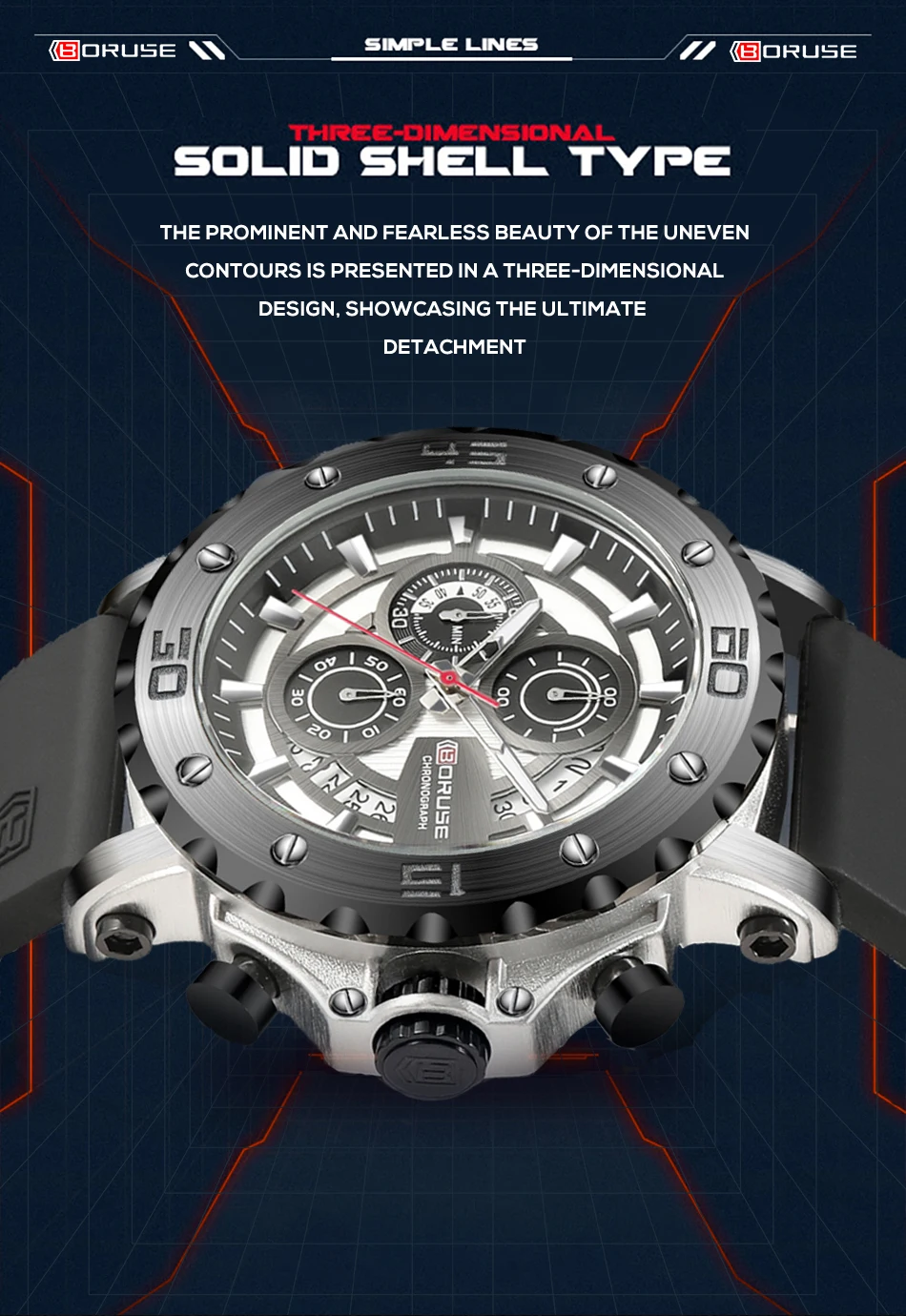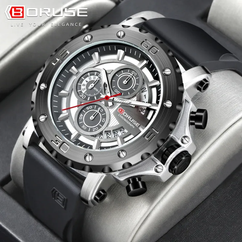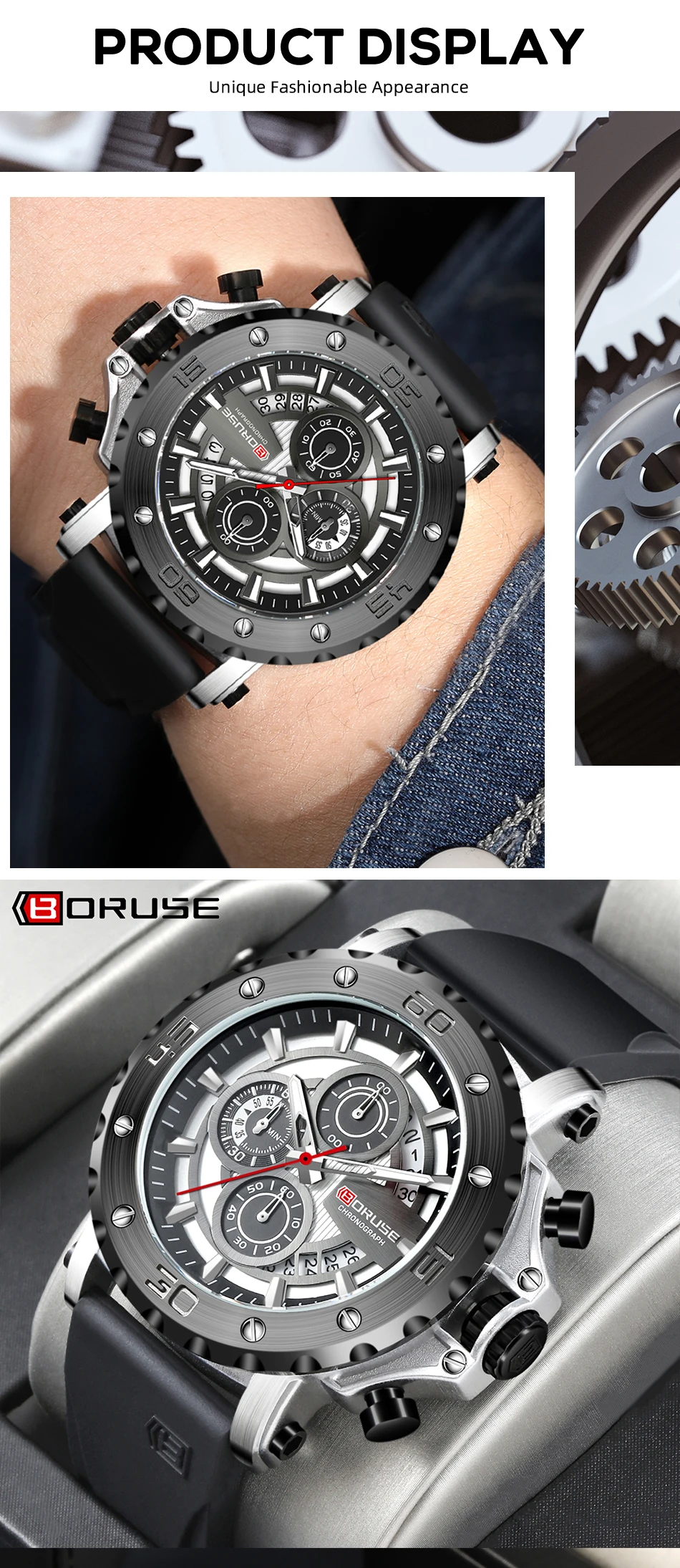 BORUSE Luxury Men Sport Quartz Wristwatch Chronograph Military Mens Watches Luminous Date Clock Watch for Men With Box
