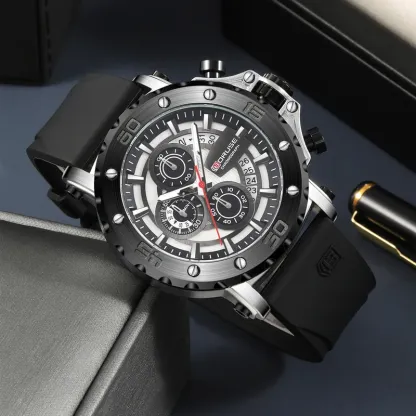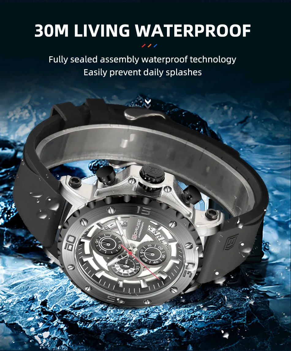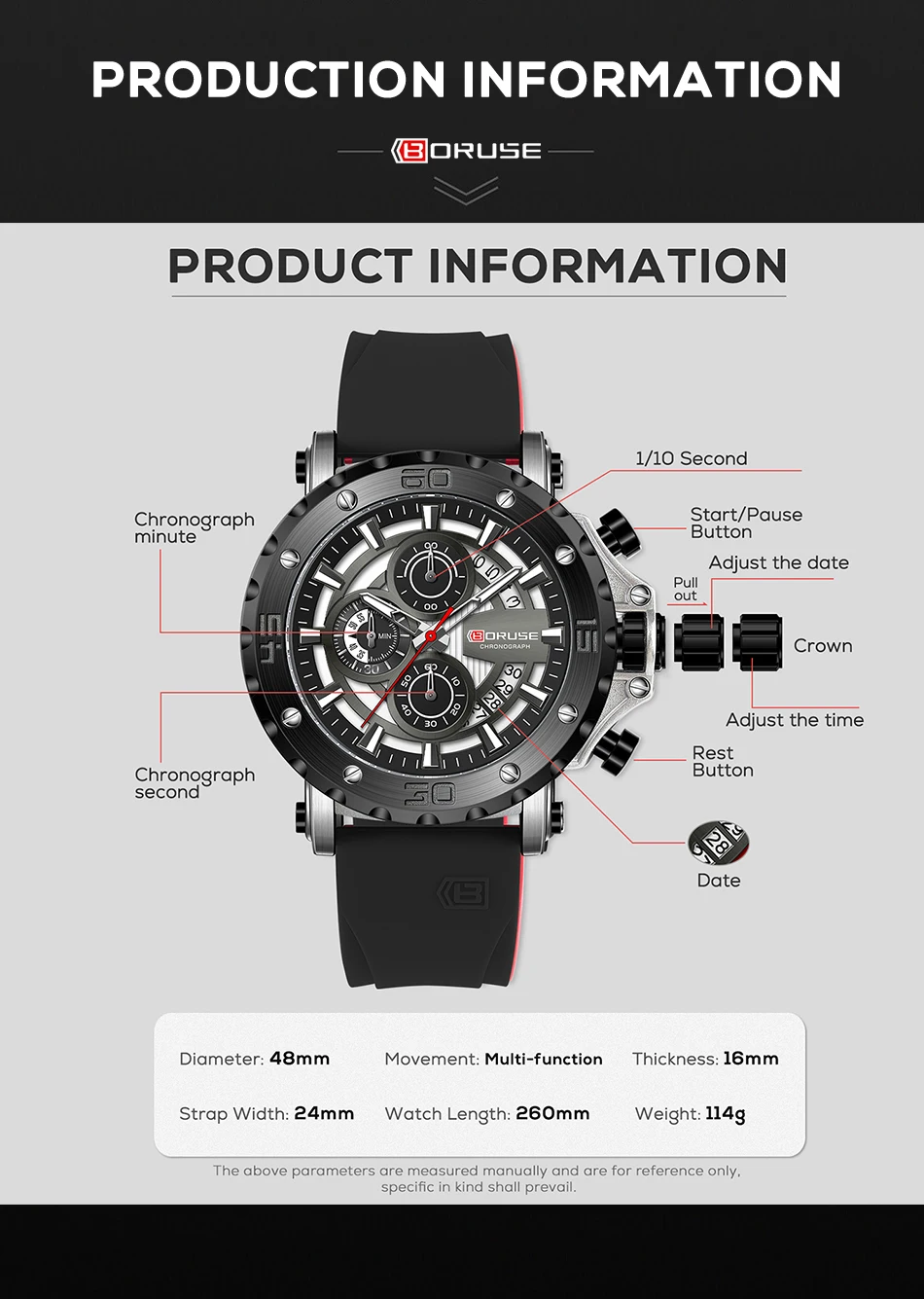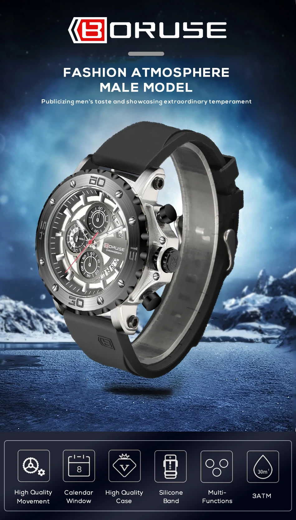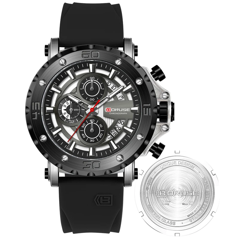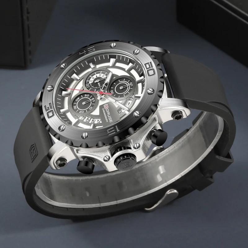 BORUSE Luxury Men Sport Quartz Wristwatch Chronograph Military Mens Watches Luminous Date Clock Watch for Men With Box
