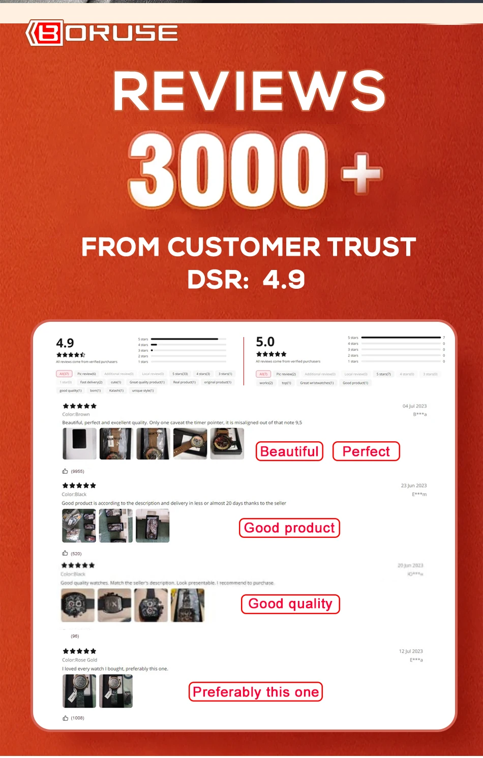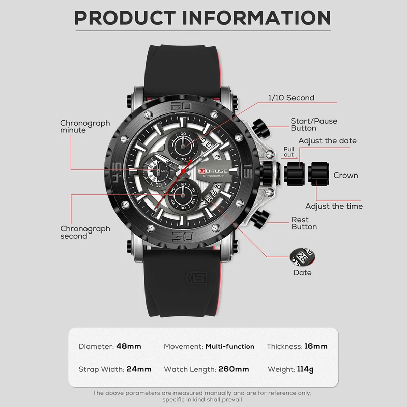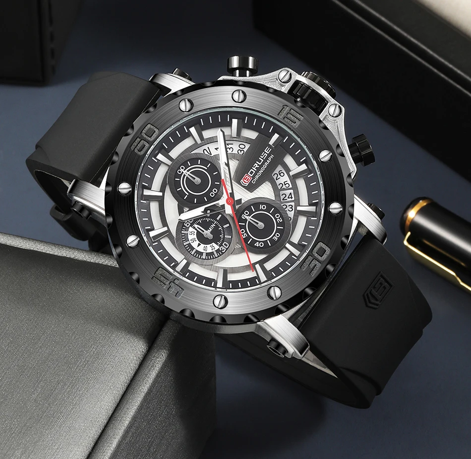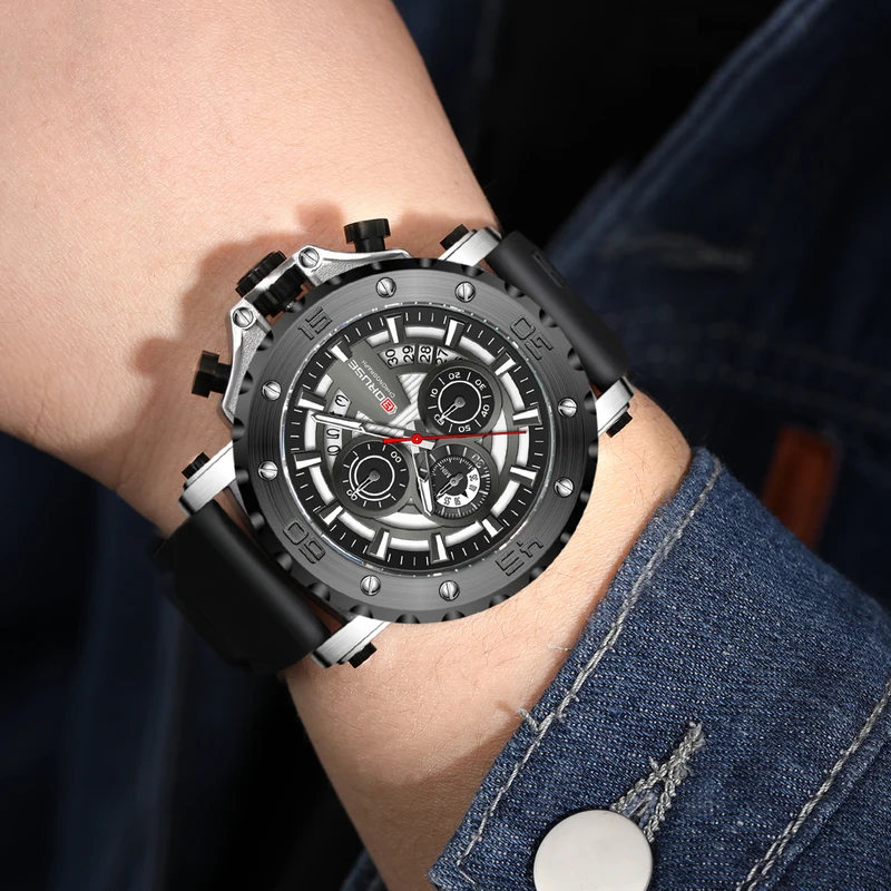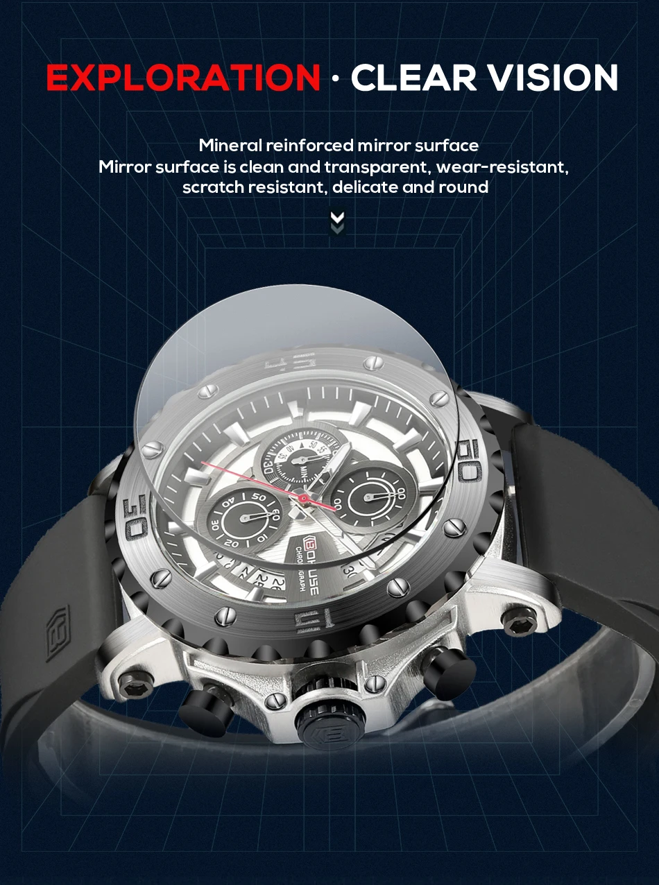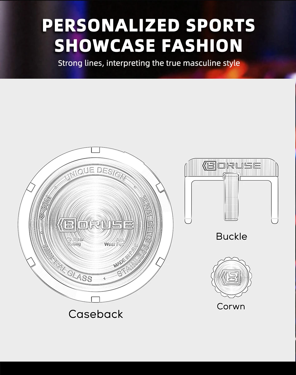 BORUSE Luxury Men Sport Quartz Wristwatch Chronograph Military Mens Watches Luminous Date Clock Watch for Men With Box