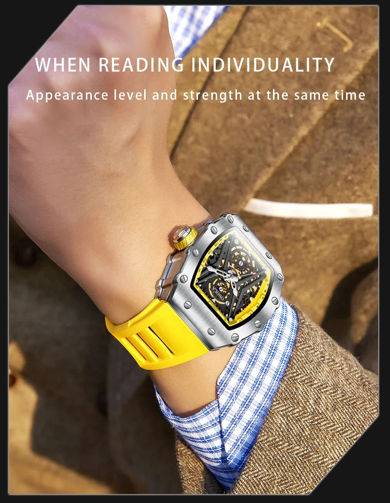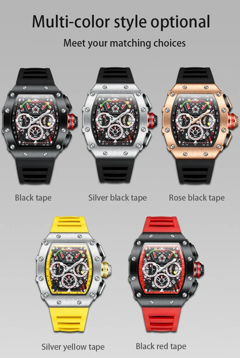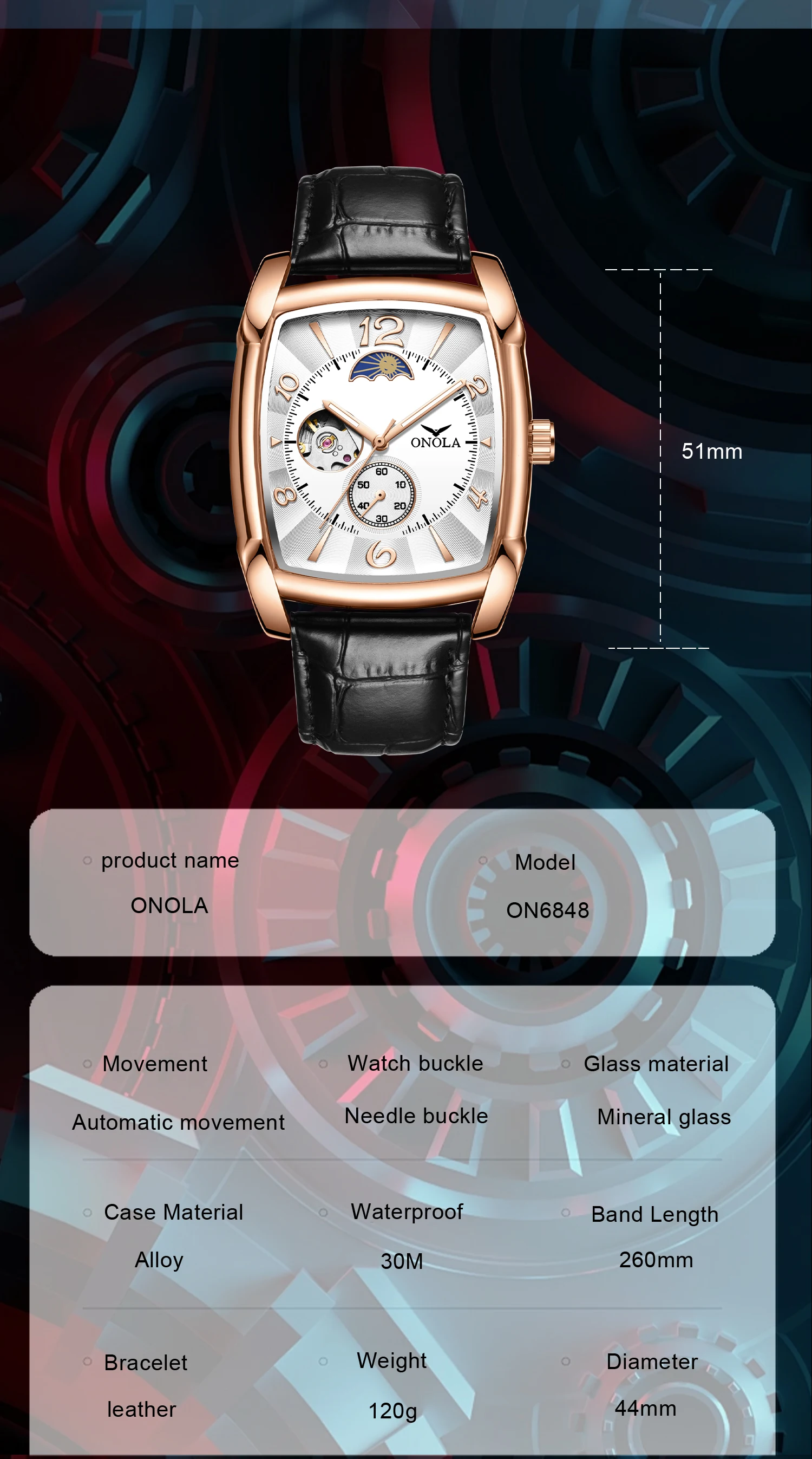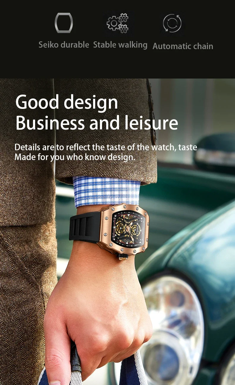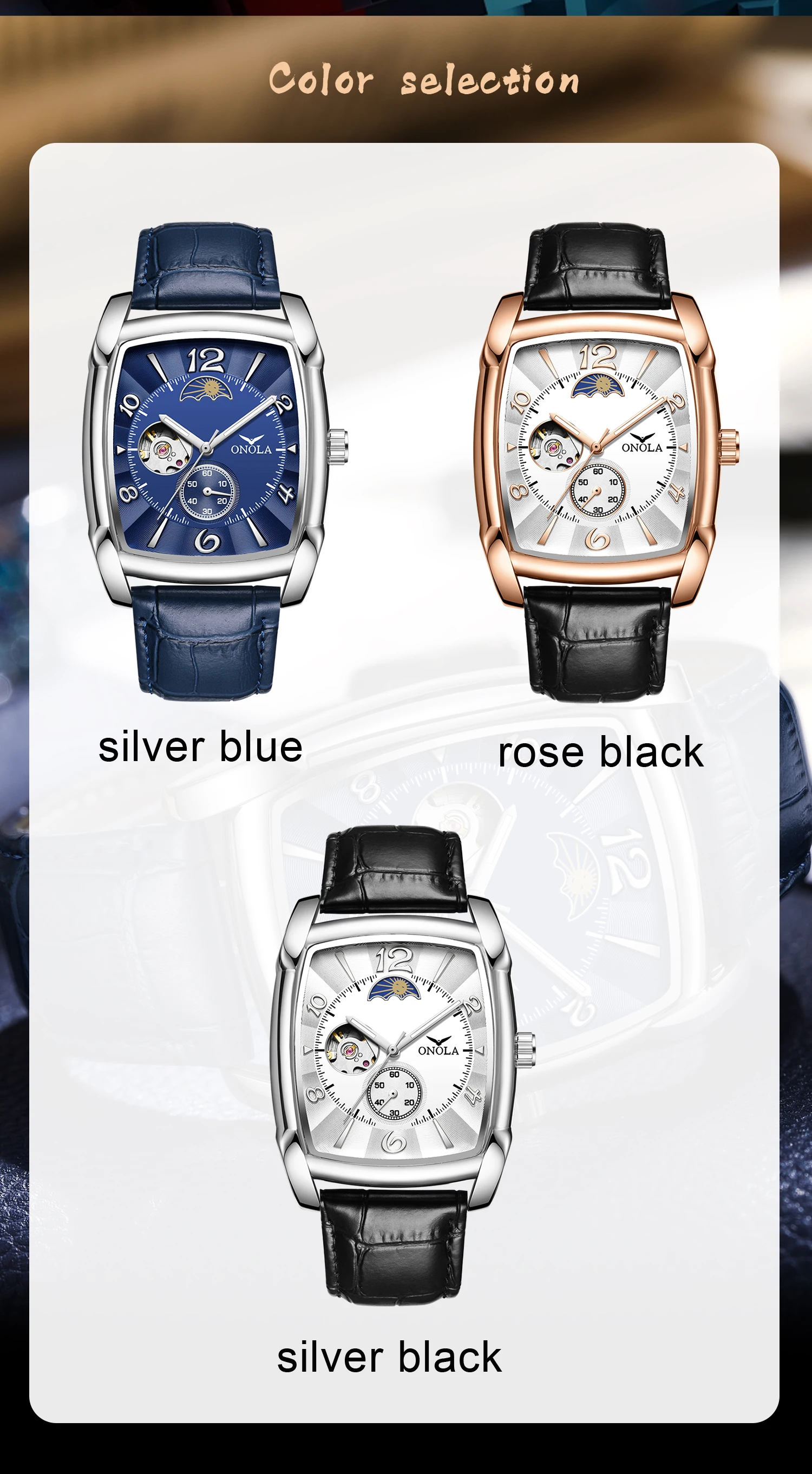 Brand ONOLA Top Luxury Fashion Men's Watches Luminous Square Mechanical Skeleton Sport Waterproof Male Automatic Watch Men