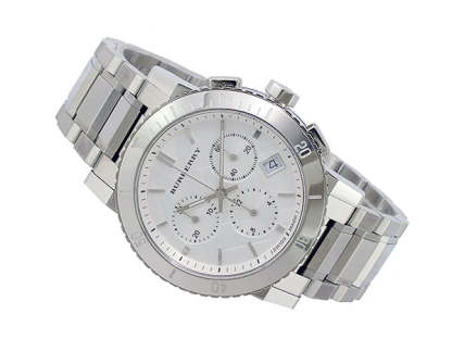 Burberry City Chronograph White Dial Silver Steel Strap Watch For Women - BU9700