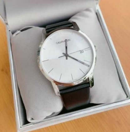 Calvin Klein City White Dial Black Leather Strap Watch for Men - K2G2G1CD