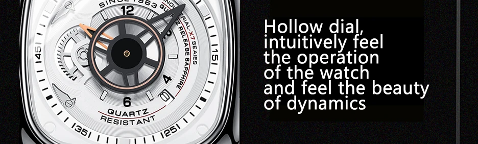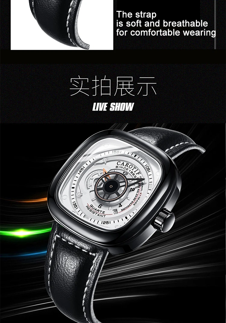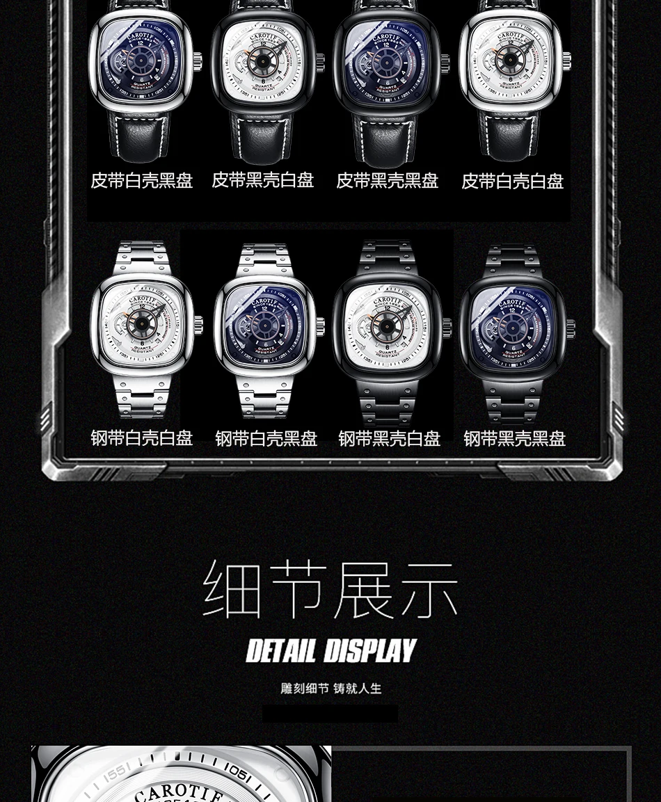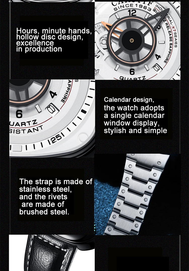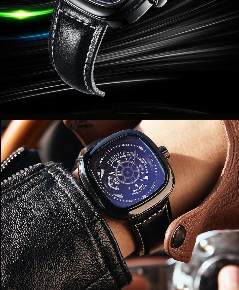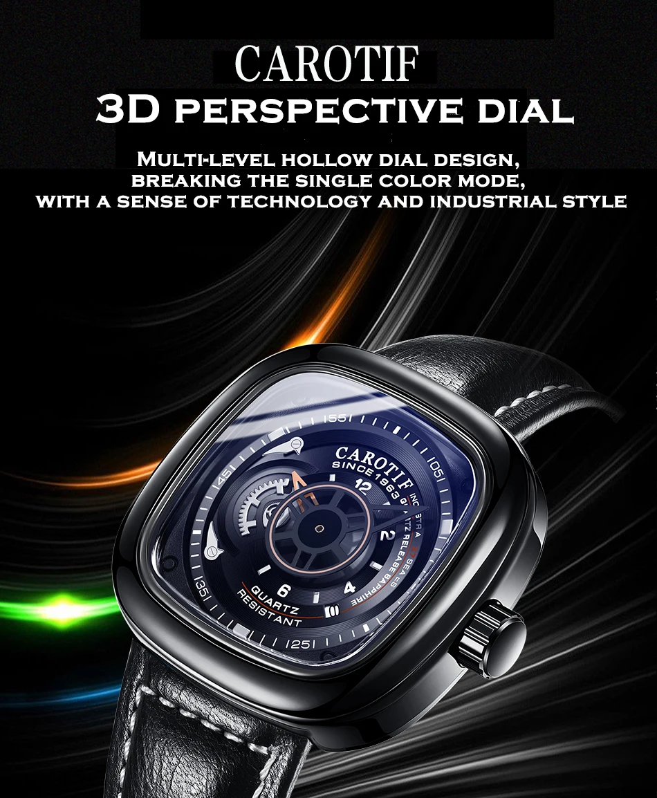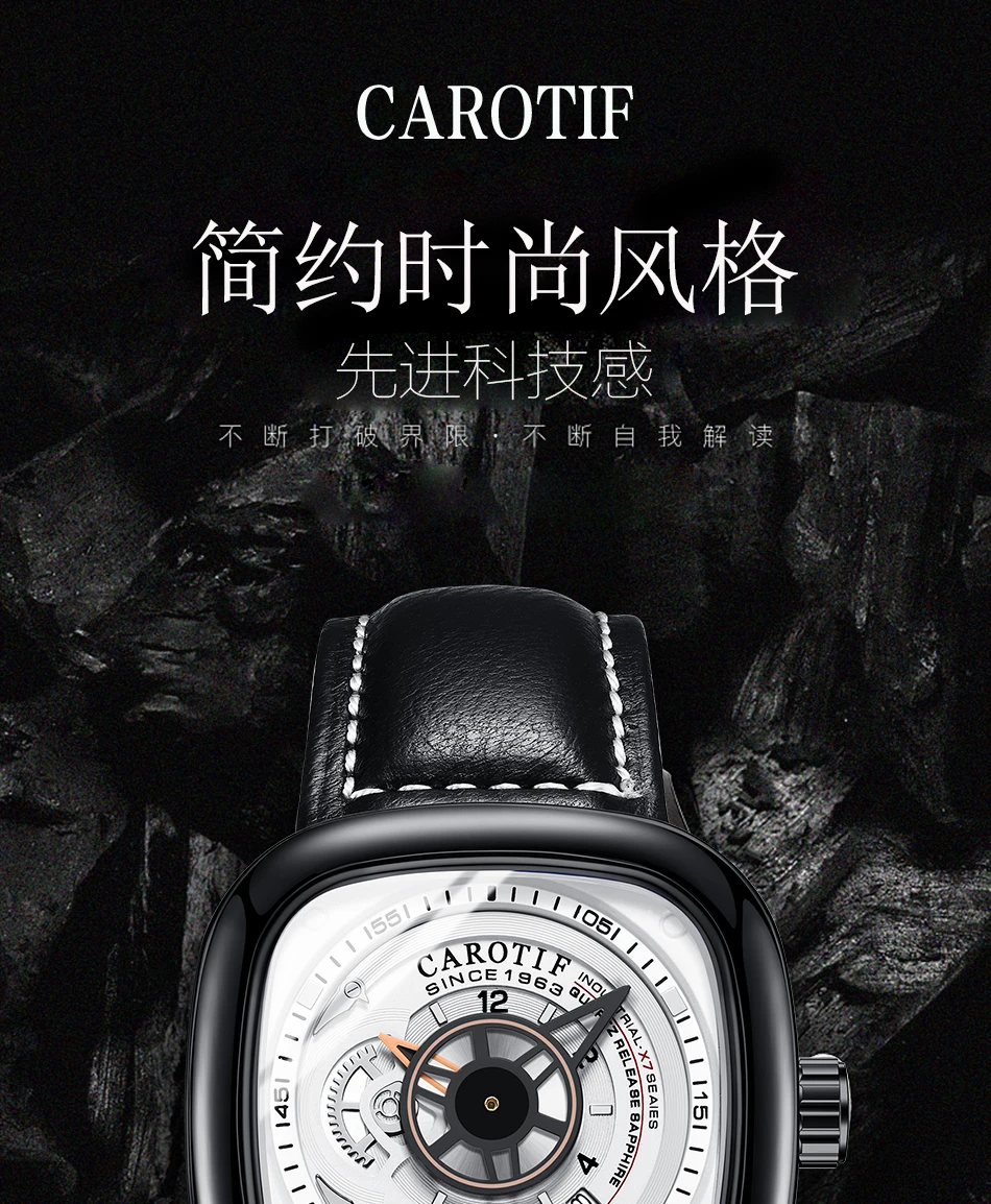 Carotif Fashion Brand Square Dial Quartz Men Watch Stainless Steel Strap Business Wristwatch 30M Waterproof Men's Hand Clock