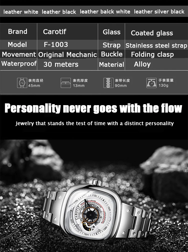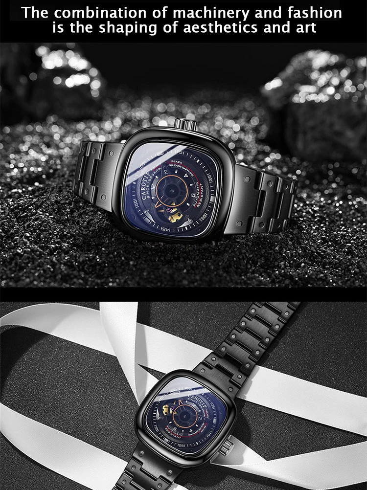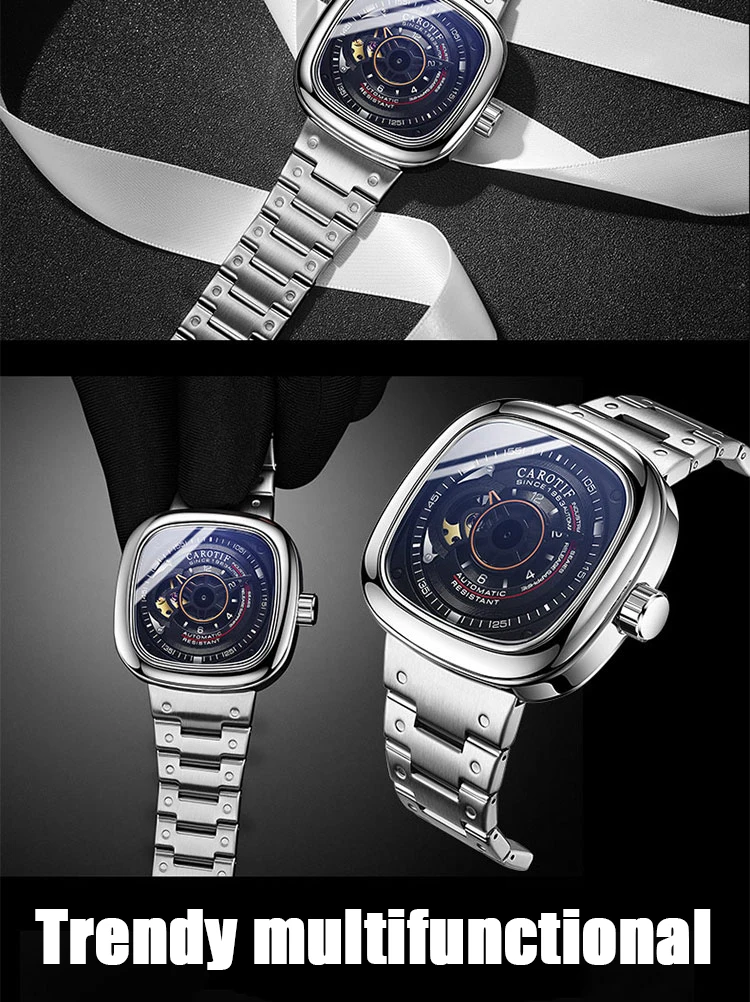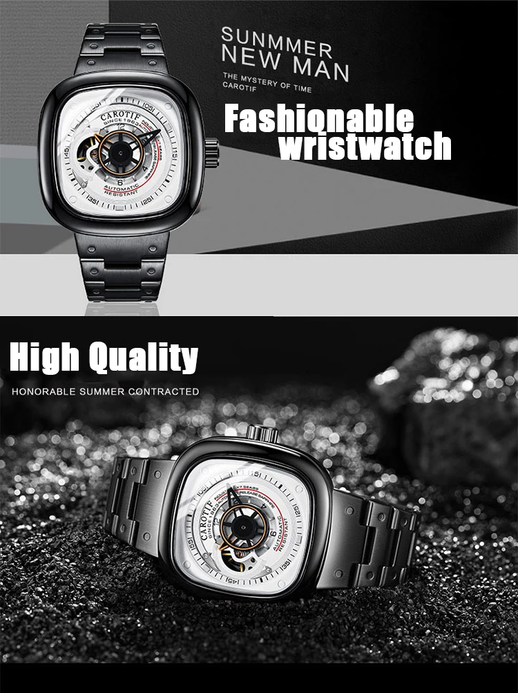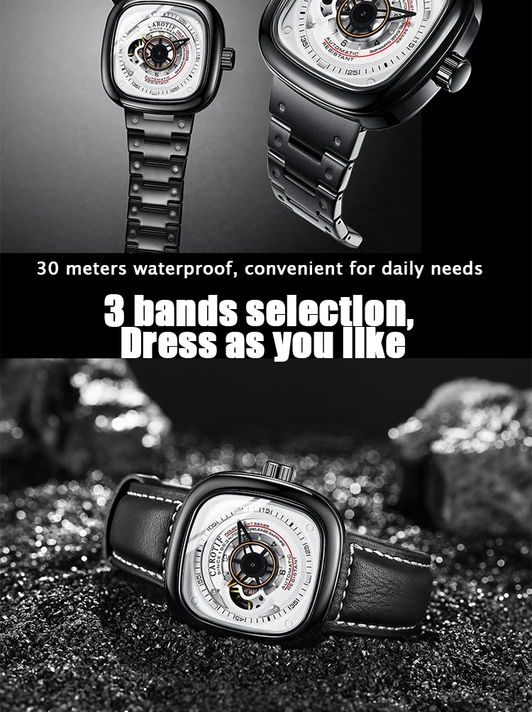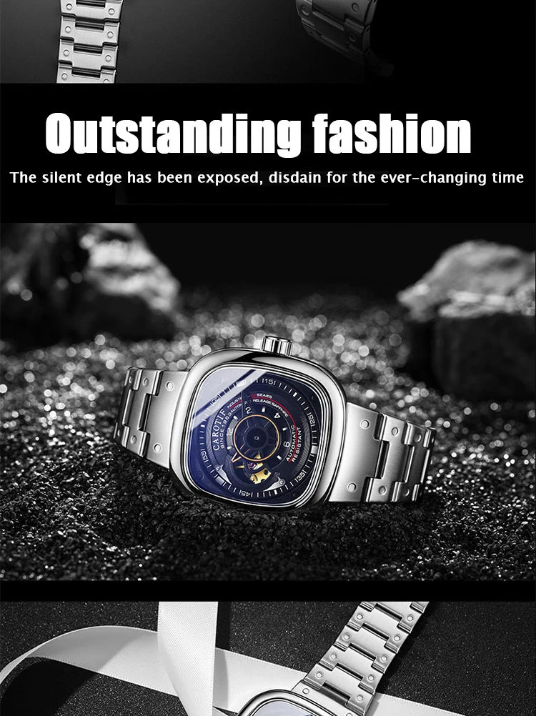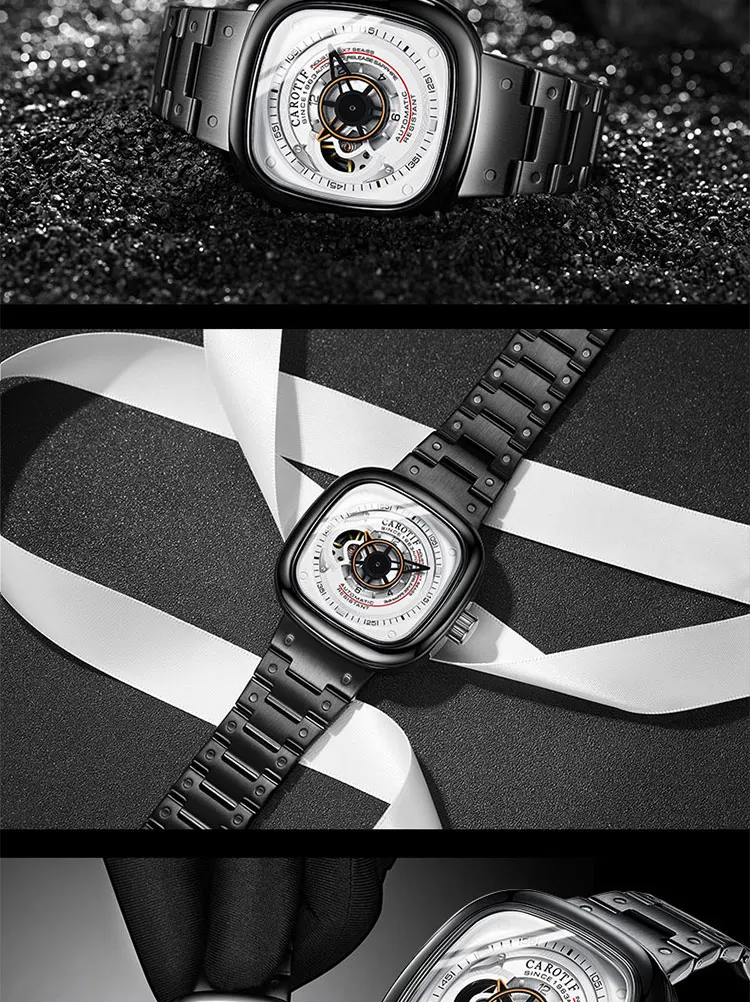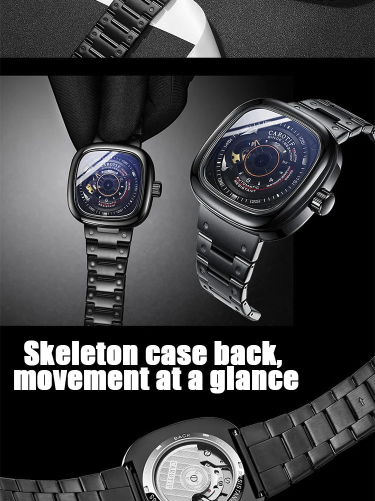 carotif top brand fashion business mechanical male watch luxury waterproof sports lover gift original square men's watches