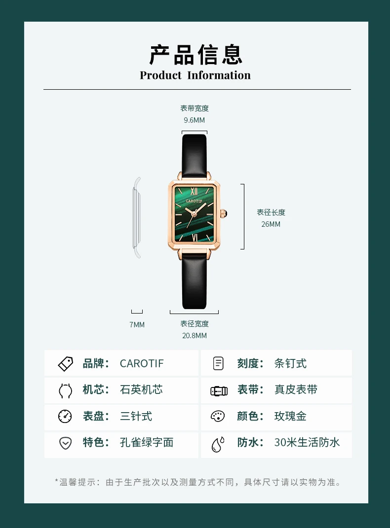 Carotif Top Brand Quartz Women'S Watches Vintage 30m Waterproof Fashion Designer Branded Ladies gift Watch montre femme