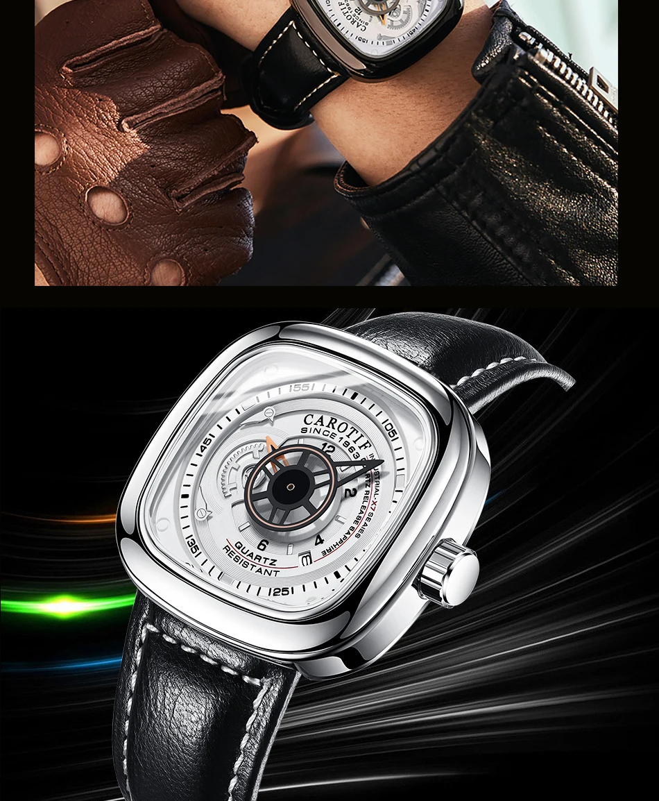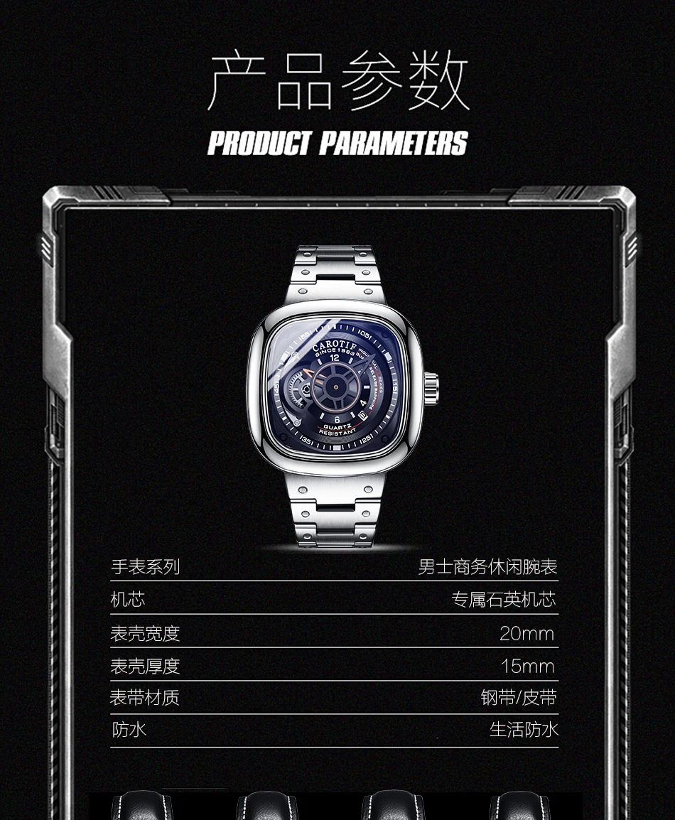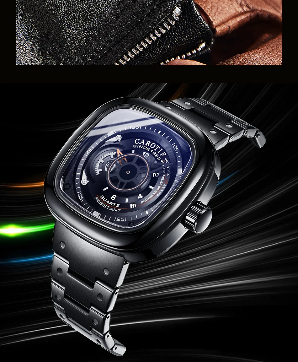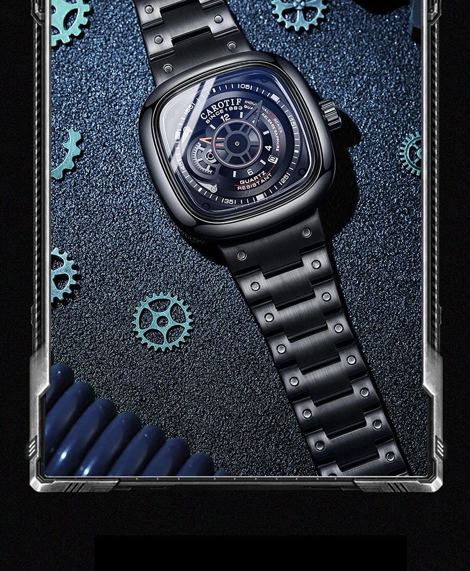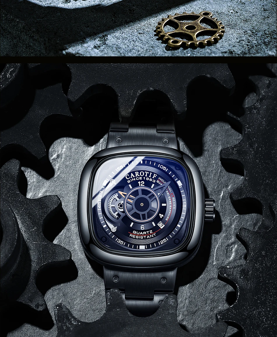 Carotif Top Brands Fashion Casual Quartz Men Watch Waterproof Stainless Steel Strap Square Male Wristwatch Husband Lover Watches
