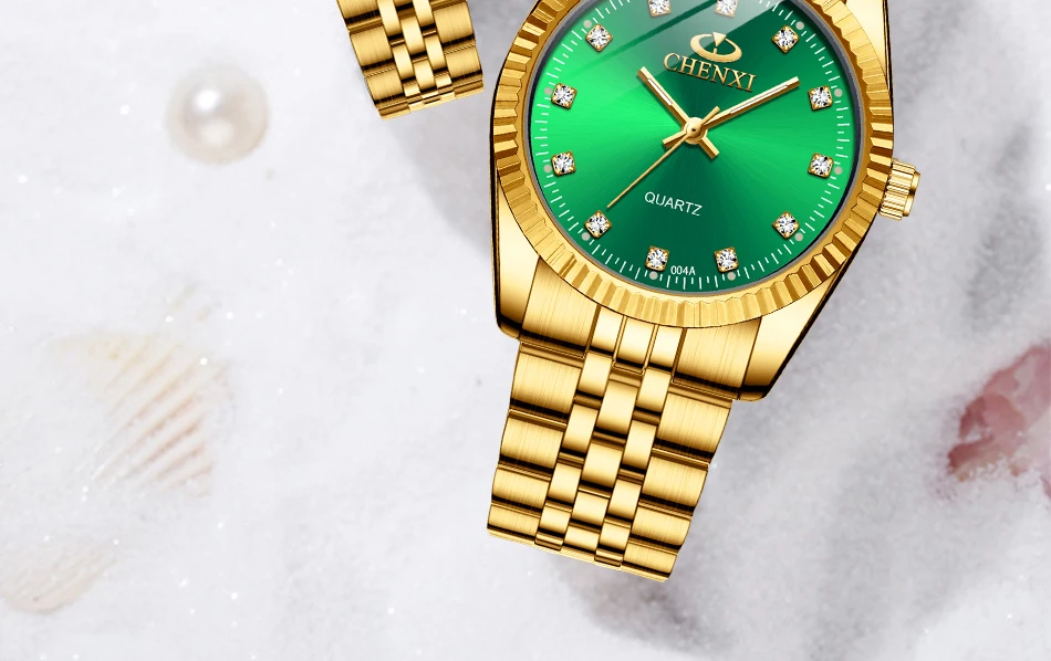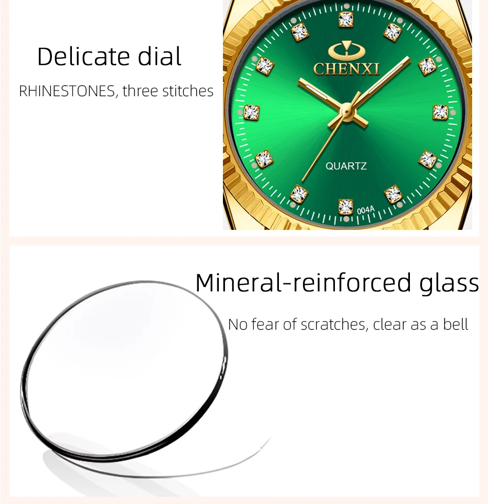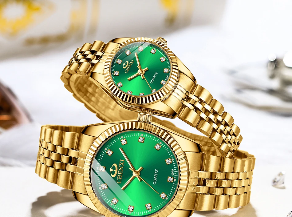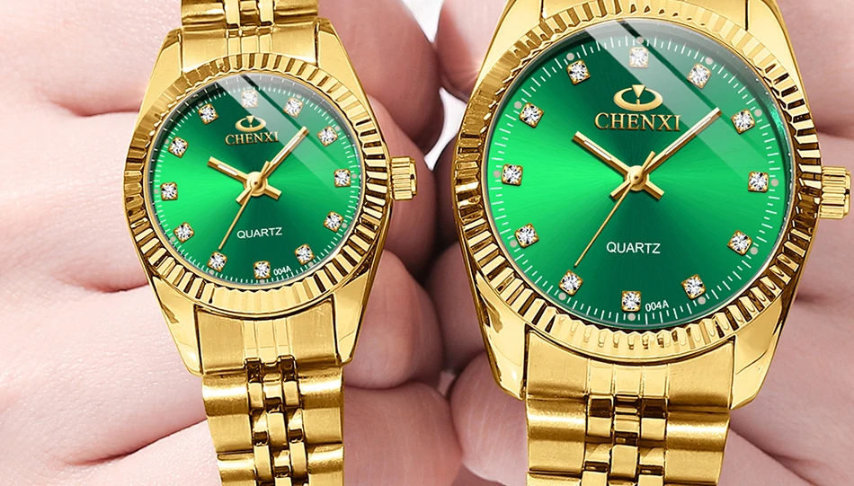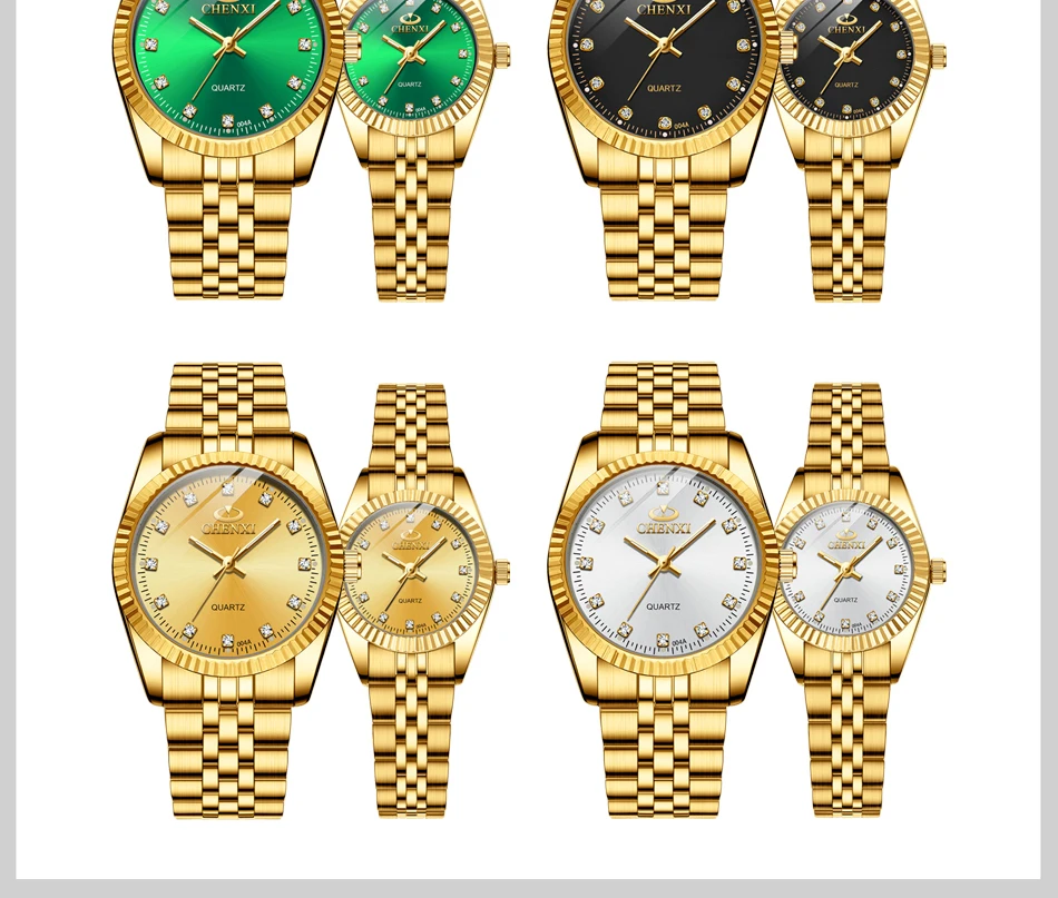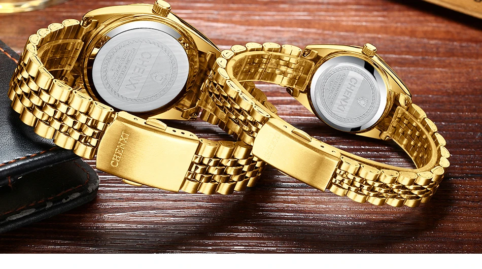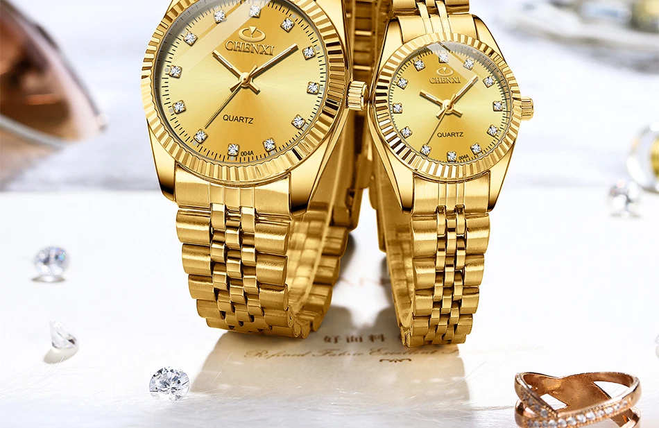 Chenxi lover watches luxury business stainless steel gold watch men classic waterproof watch for women rhinestone couple gift