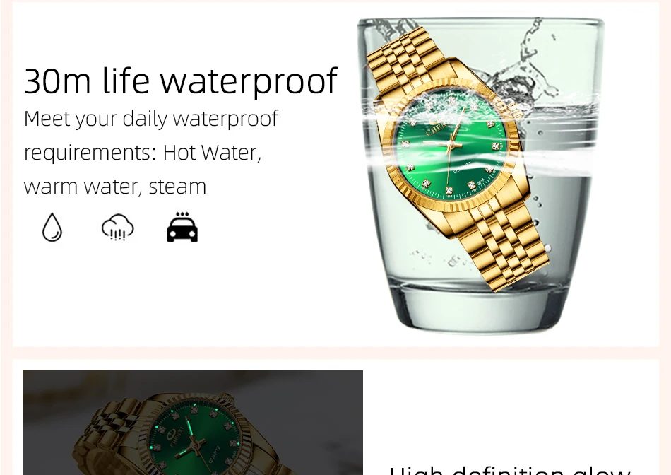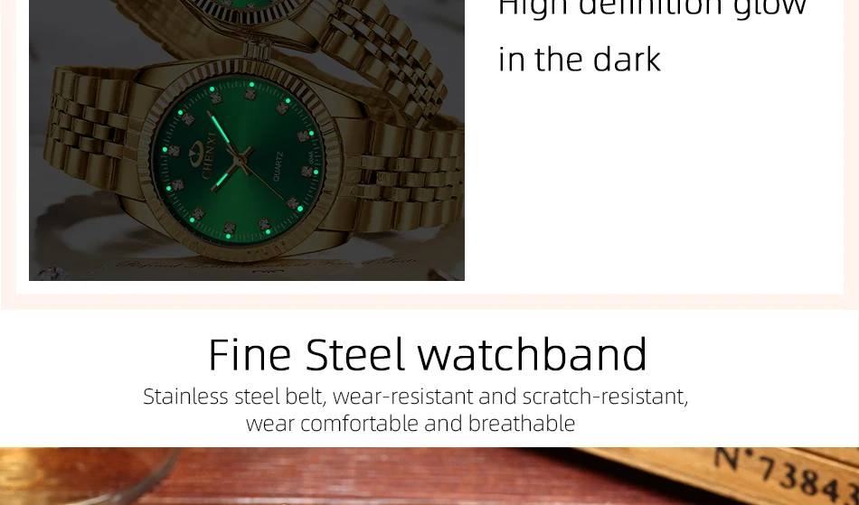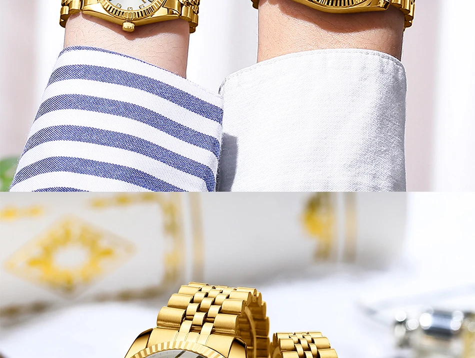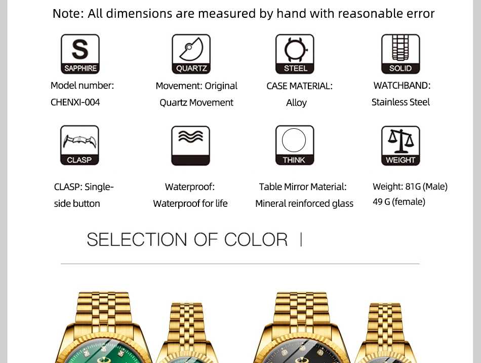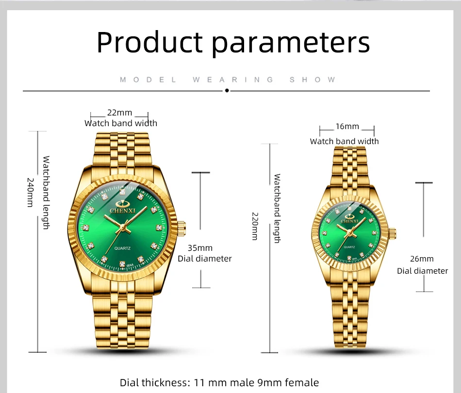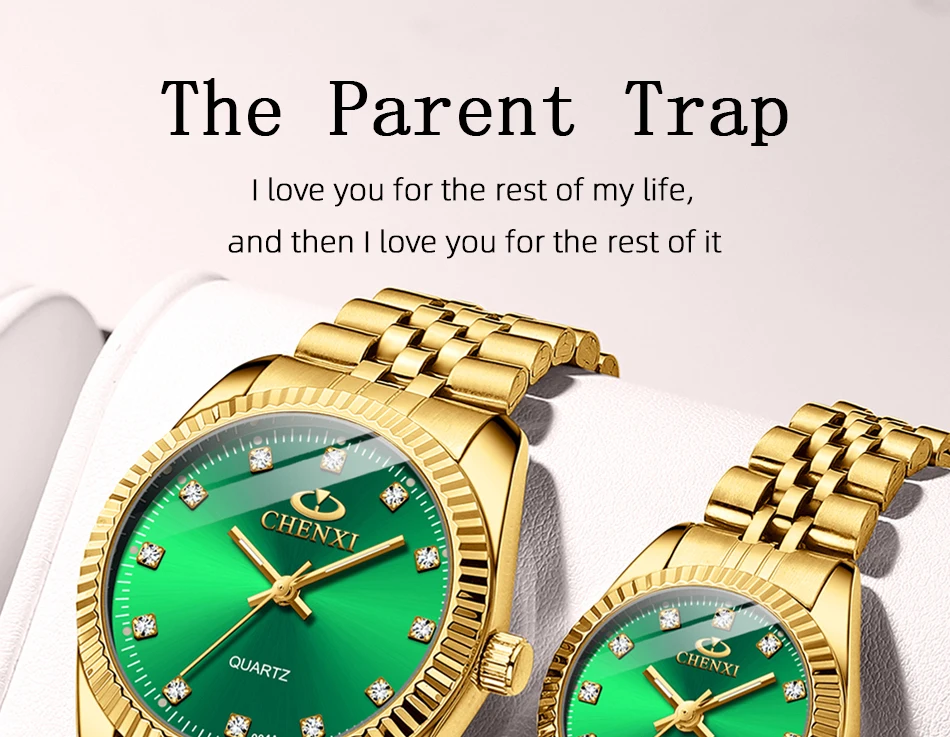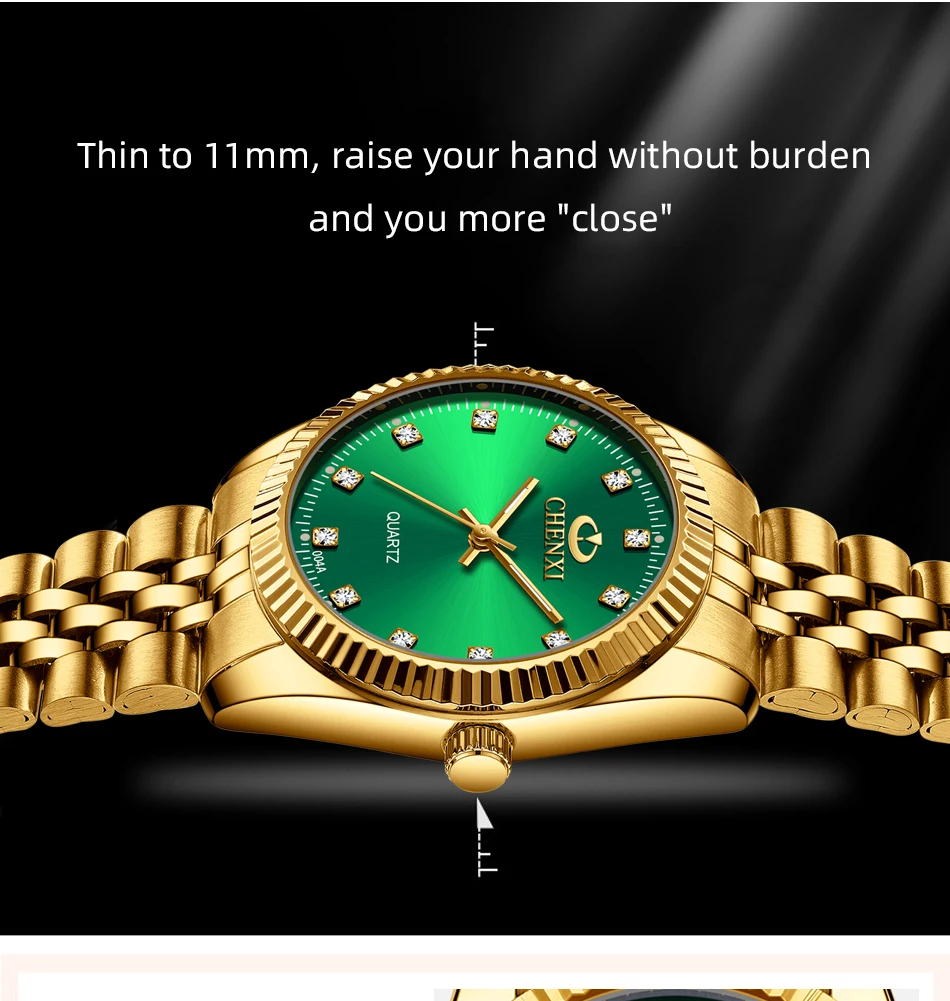 Chenxi lover watches luxury business stainless steel gold watch men classic waterproof watch for women rhinestone couple gift