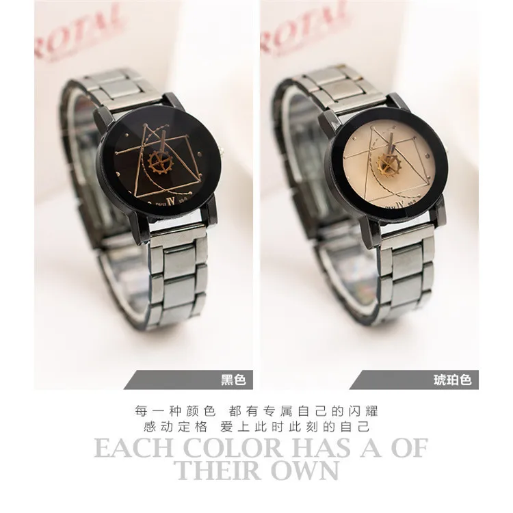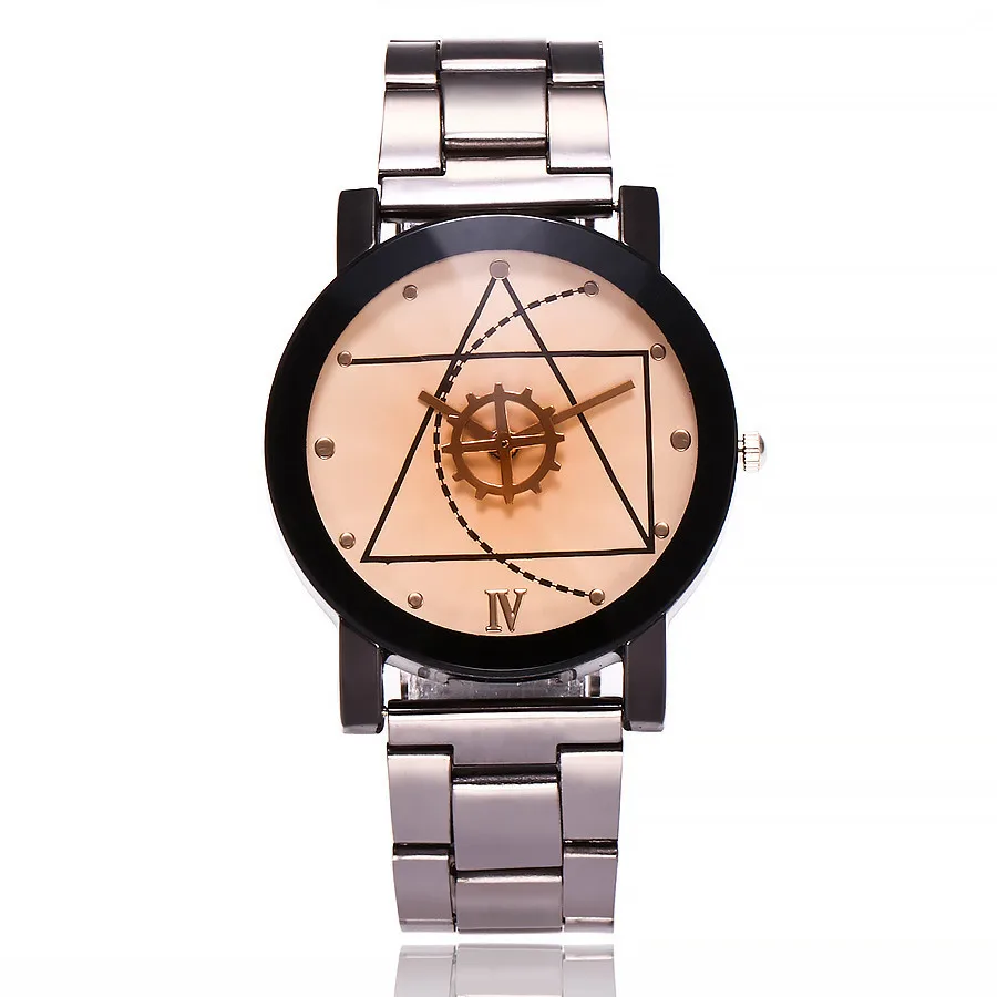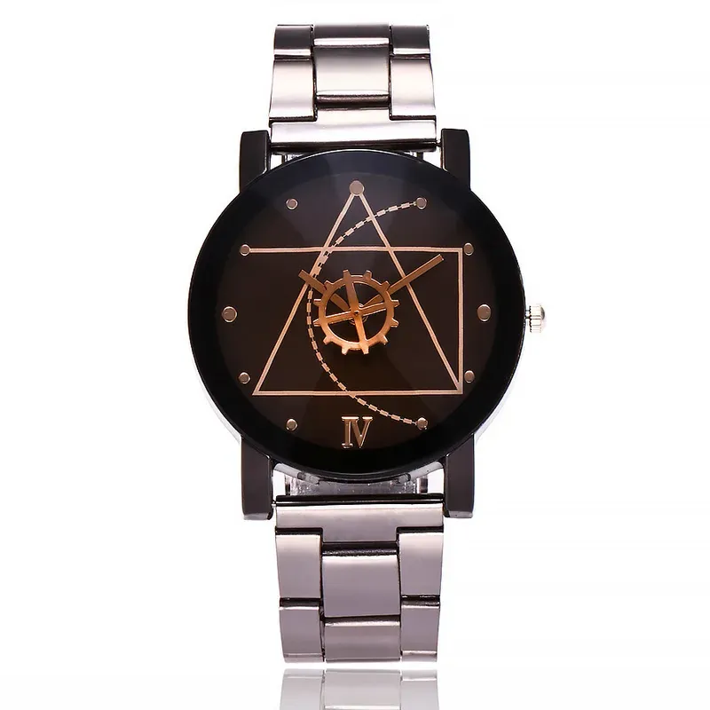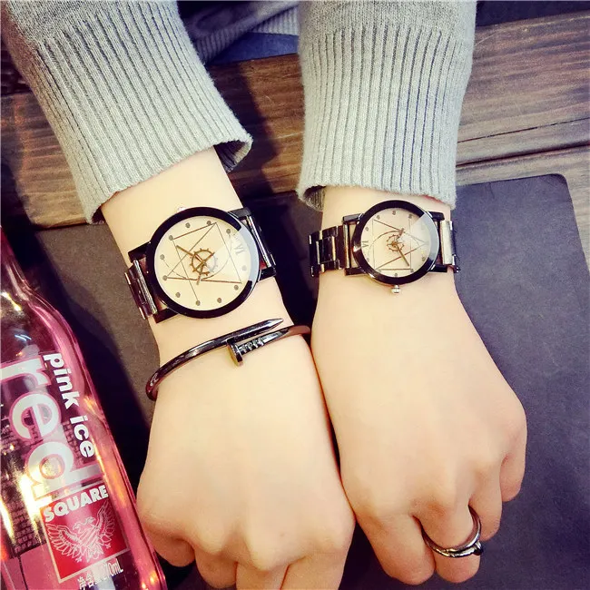 Couple Watches Men Gear Triangle Pointer Compass Dial Second Hand Watch Women Stainless Steel Watches Relogio Feminino For Gifts