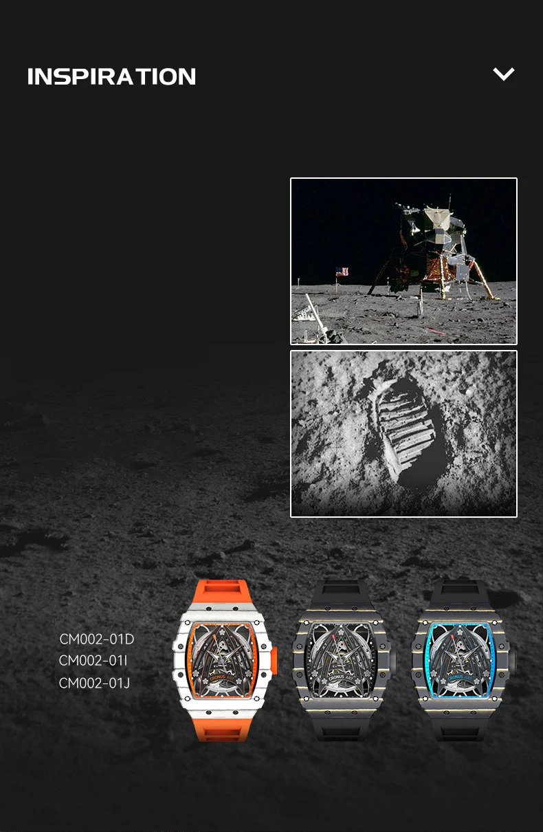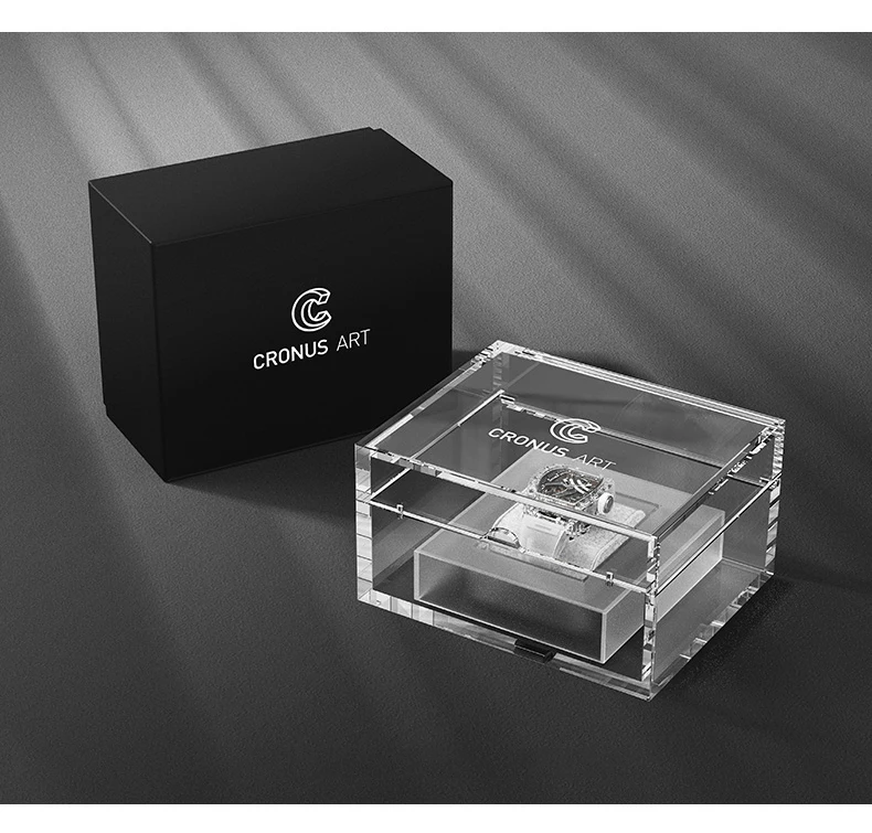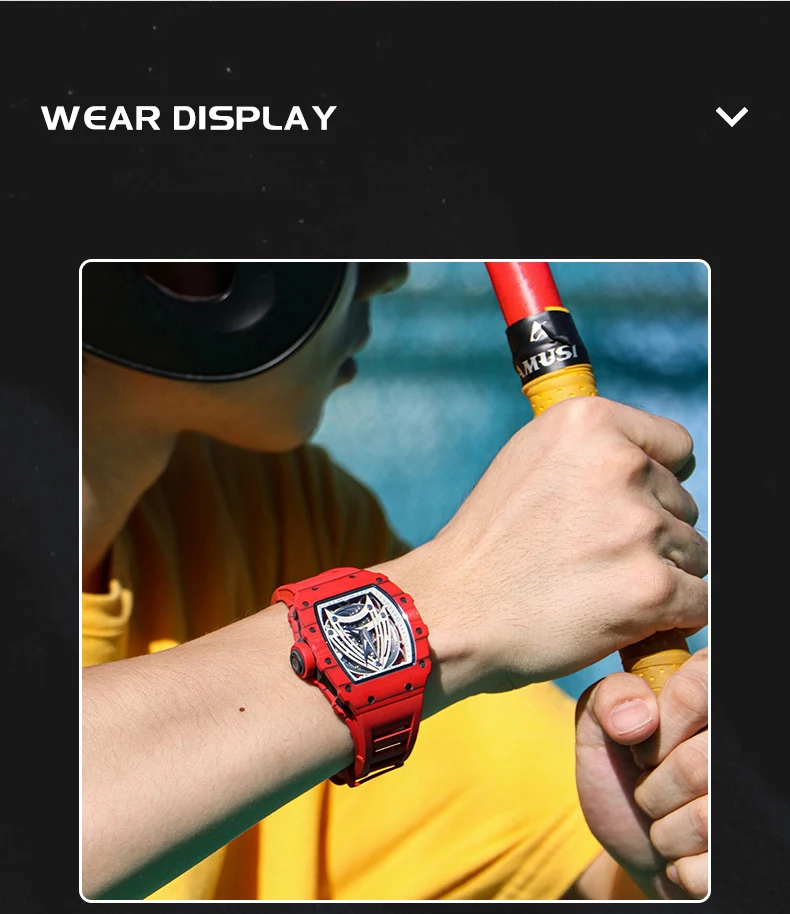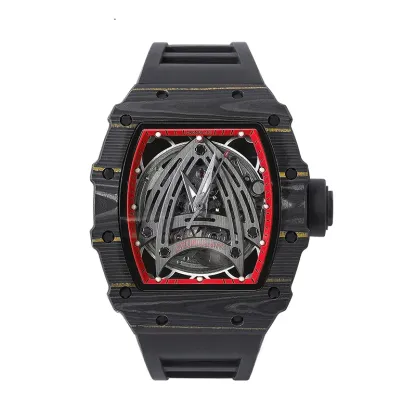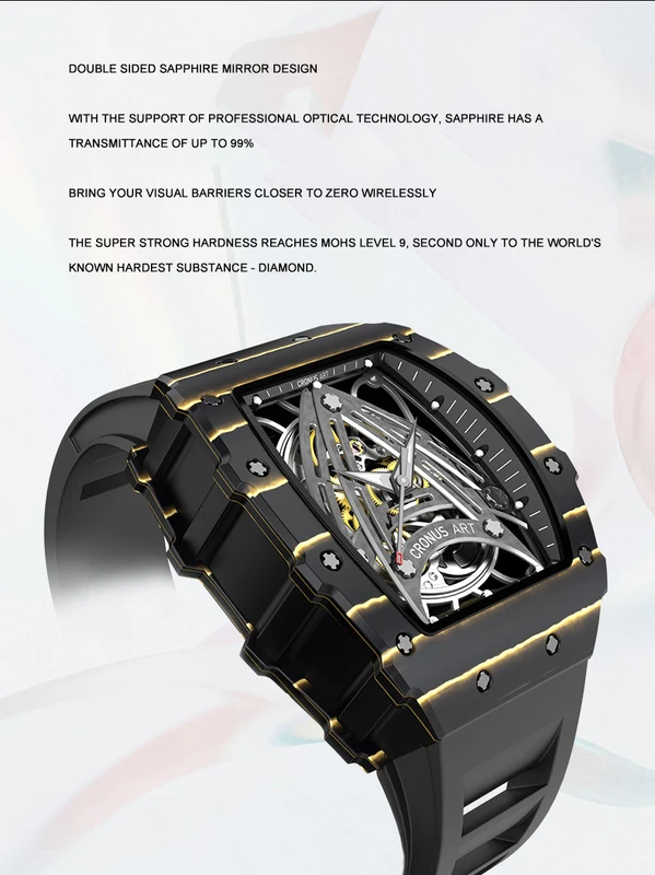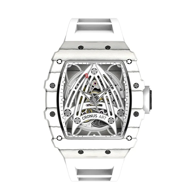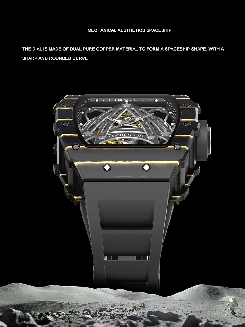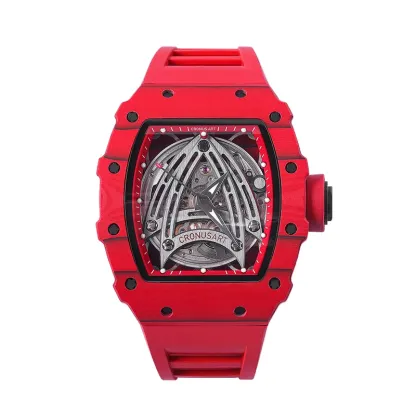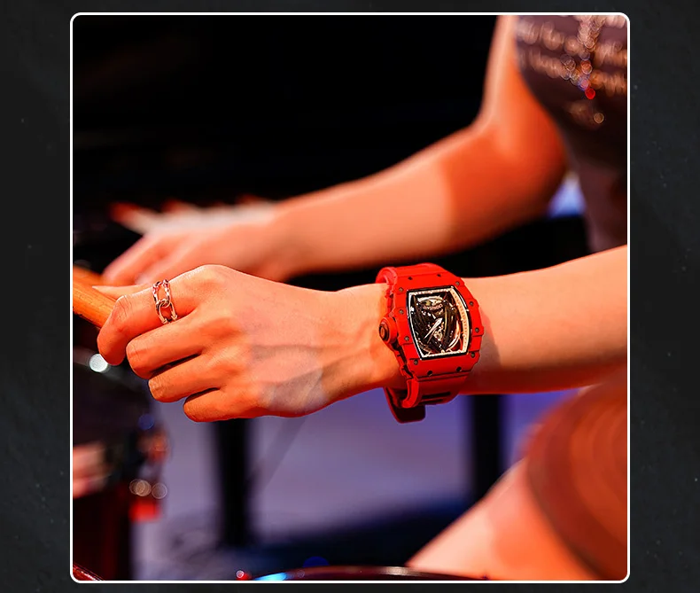 CRONUSART Men Automatic Watch 50MM Luxury Tonneau Mechanical Wristwatch Carbon Fibre Case Luminous Fluororubber Strap