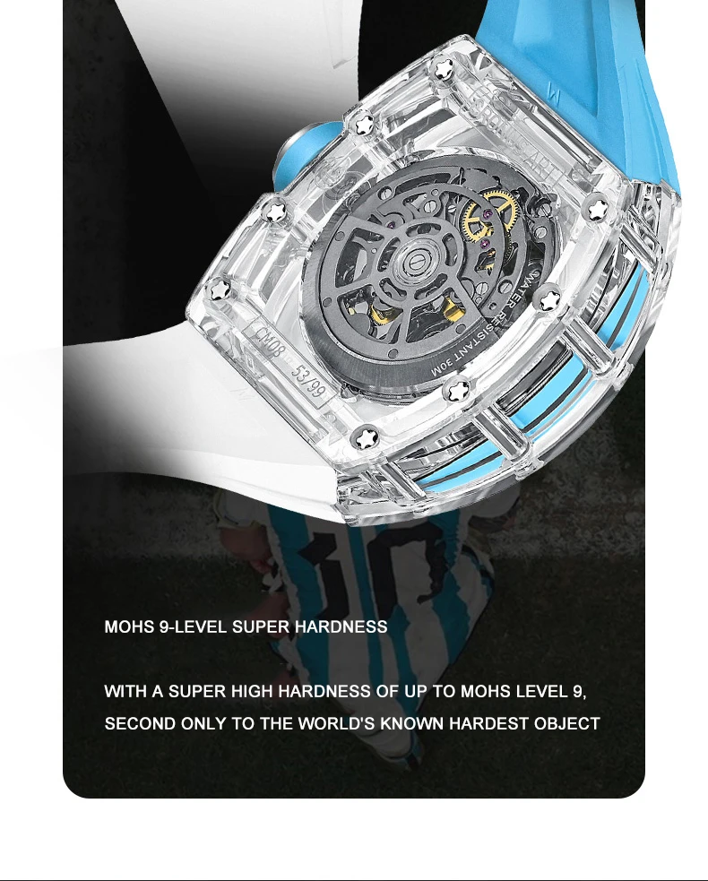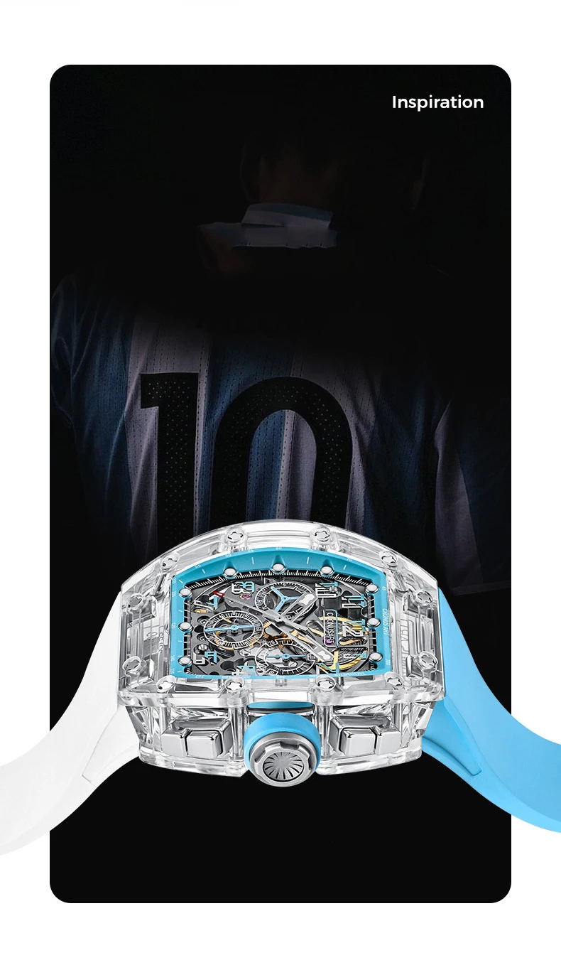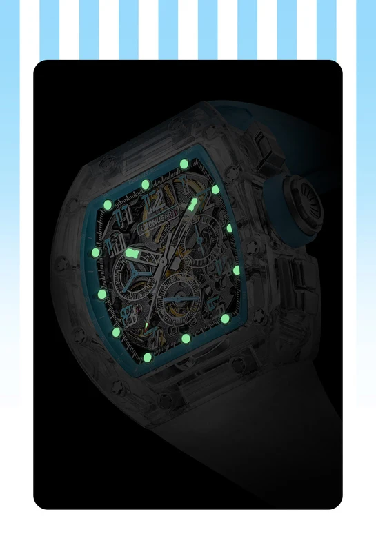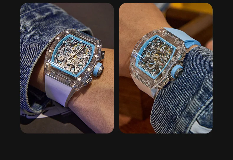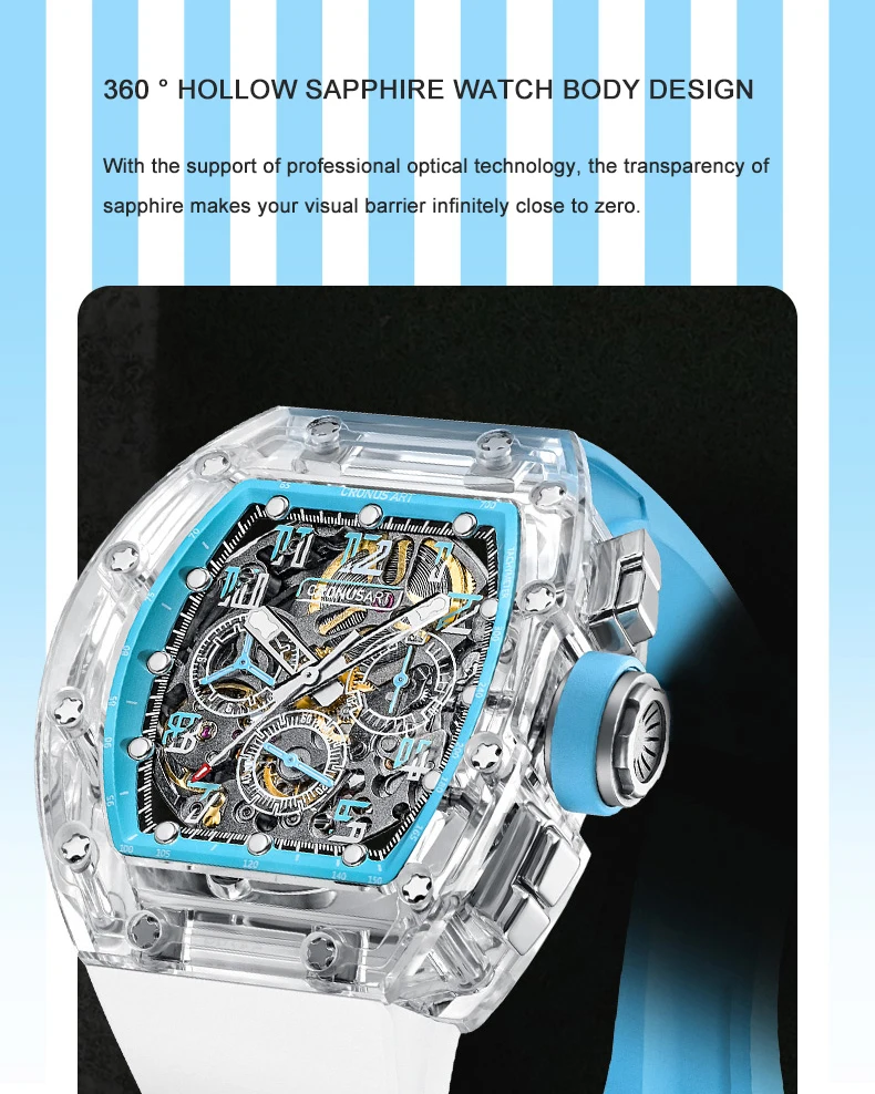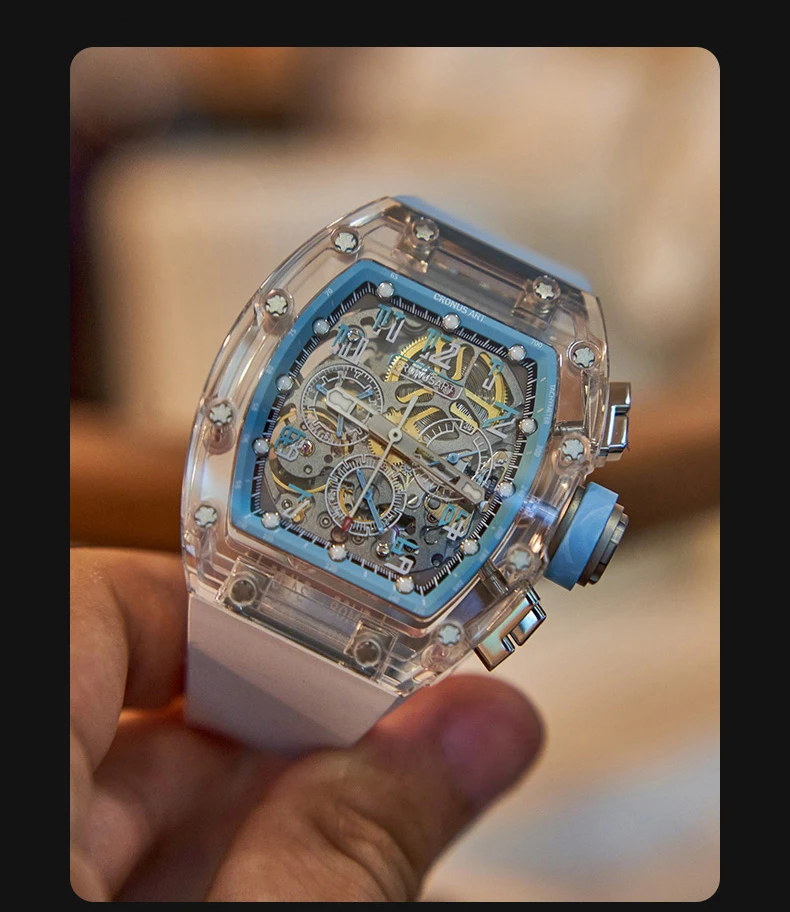 CRONUSART Men Chronograph Watch 50MM Tonneau Mechanical Wristwatch Sapphire Case Luminous Fluororubber Strap Big Triple Windows