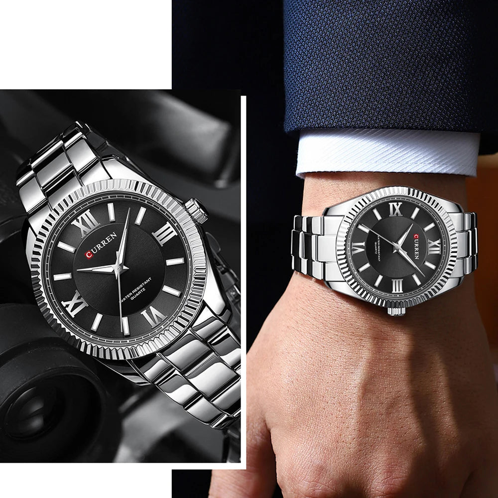 CURREN Brand Men's Watches Round Mirror Original Quartz Watch for Man Waterproof Luminous Stainless Steel Wristwatch Male Clock