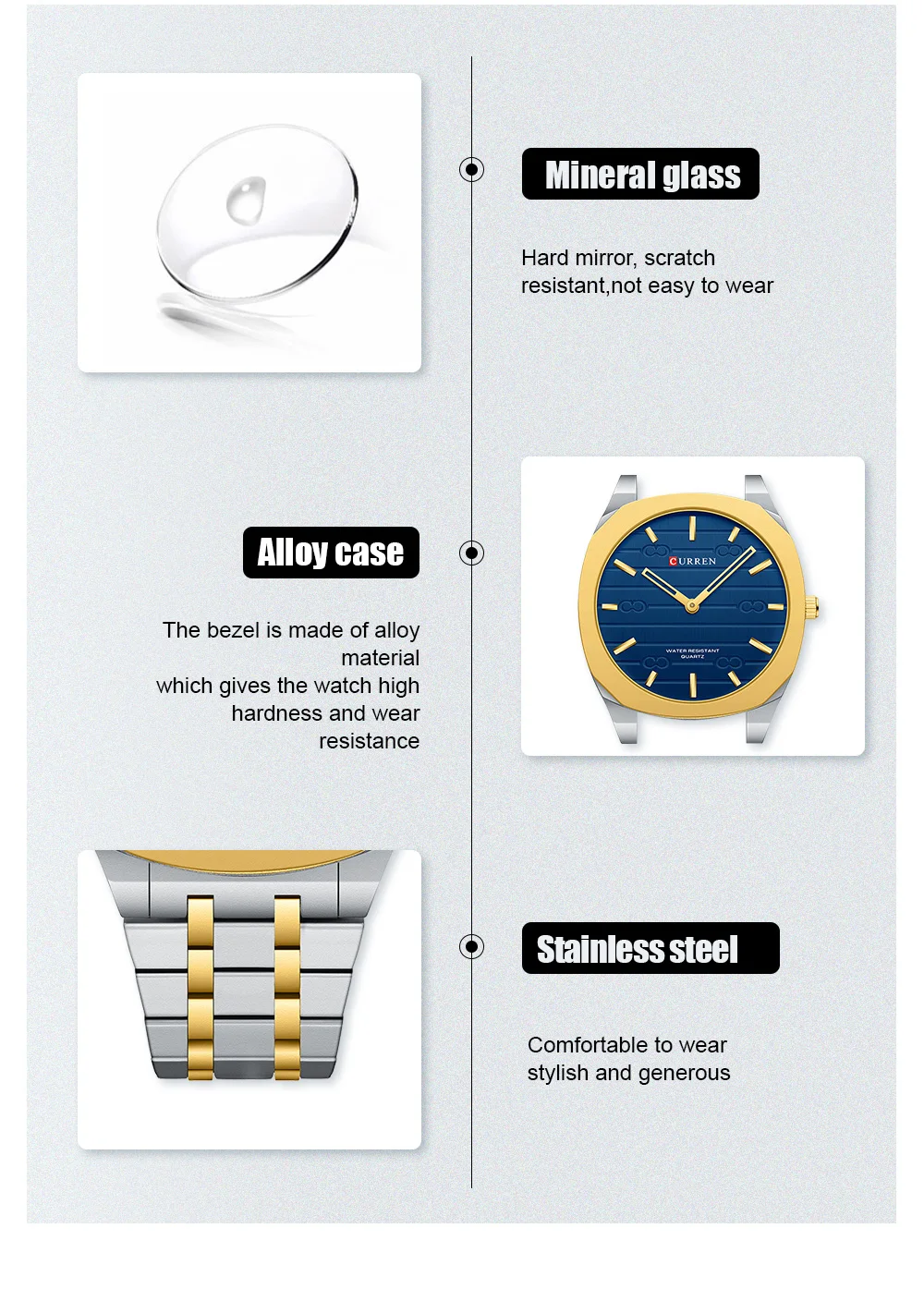 CURREN Business Brand Thin Men's Quartz Wristwatches Simple Casual Stainless Steel Watch