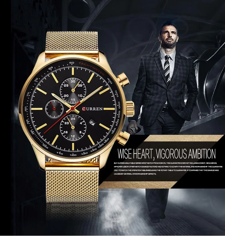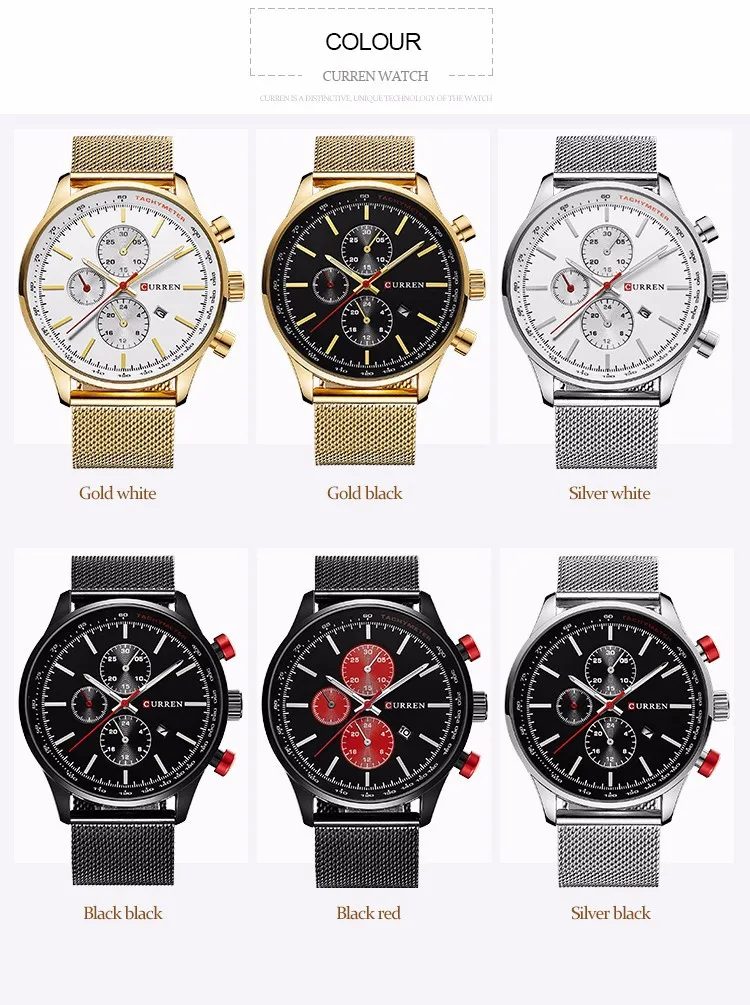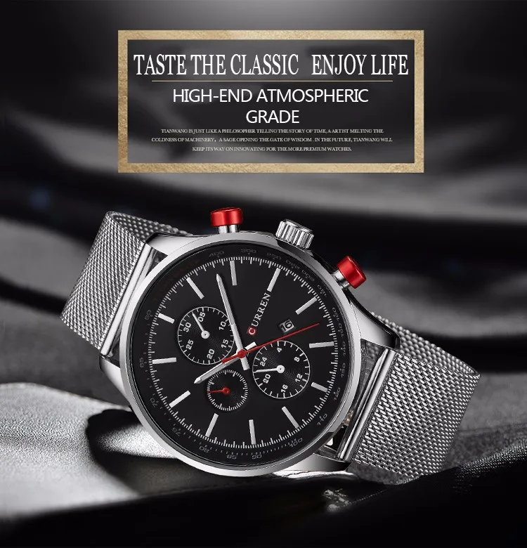CURREN Fashion Mens Watch Quartz Classic Black Wristwatch Steel Belt Luxury Calendar Business Watch Herren Uhren Gifts for Men