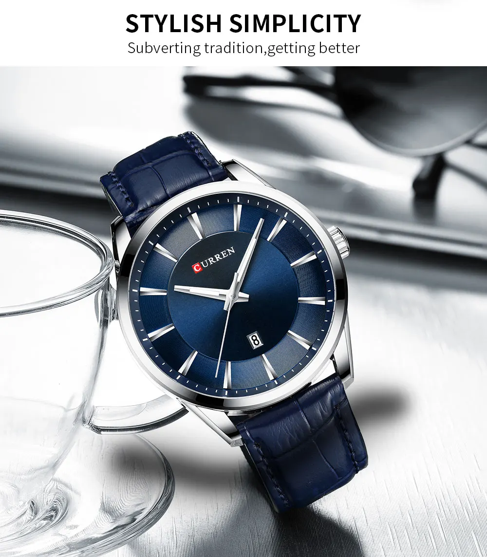 CURREN Quartz Watches for Men Leather Strap Male Wristwatches Top Luxury Brand Business Men's Clock 45 mm Reloj Hombres