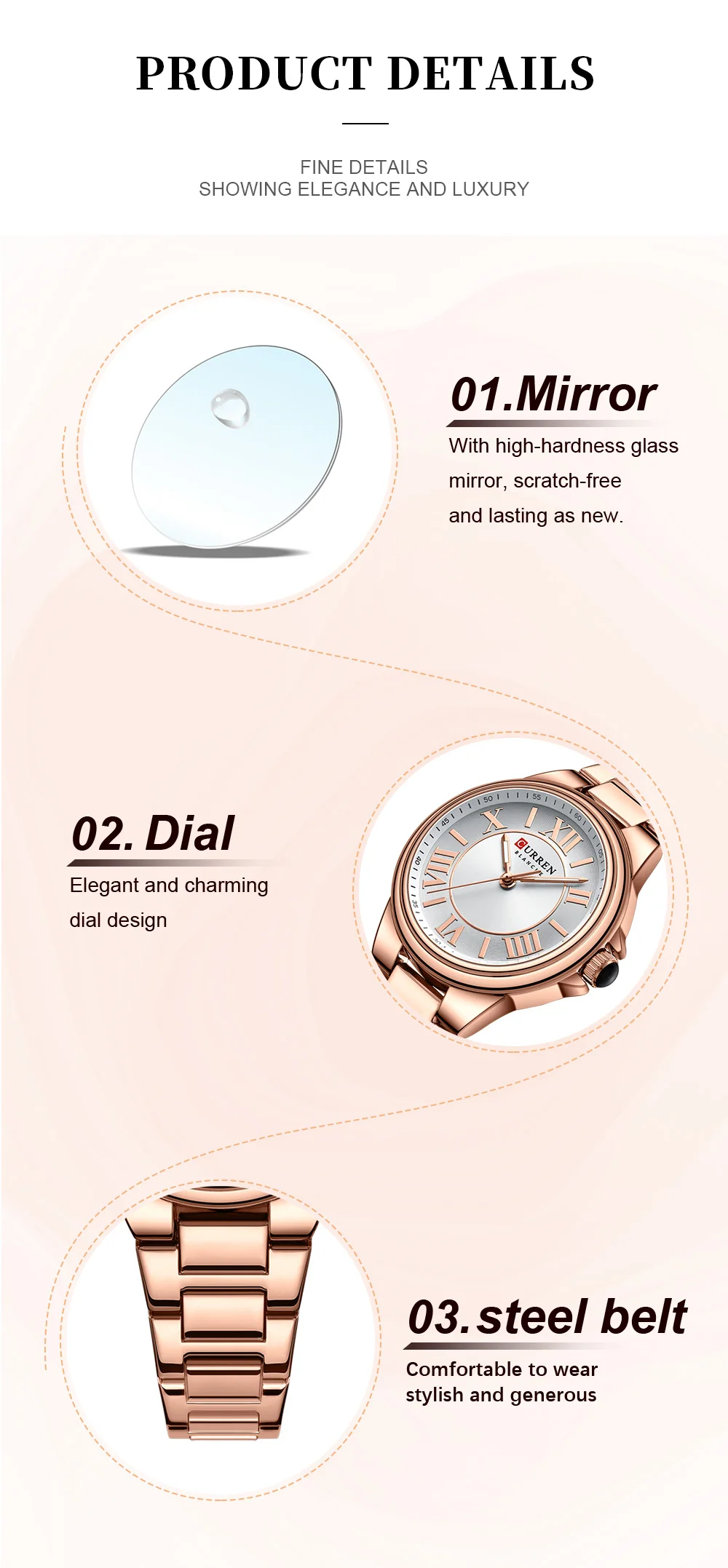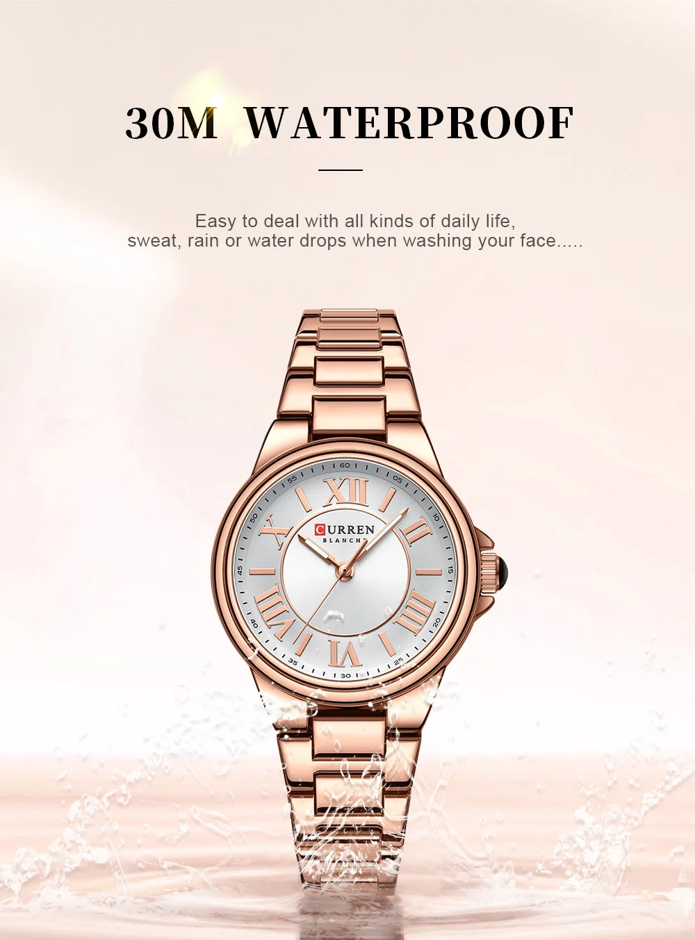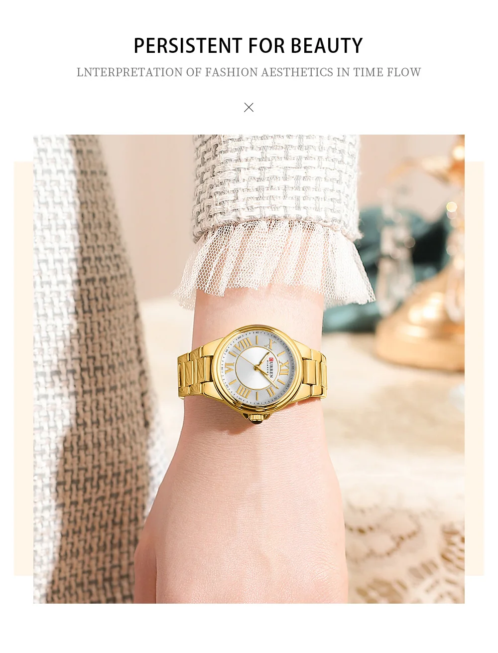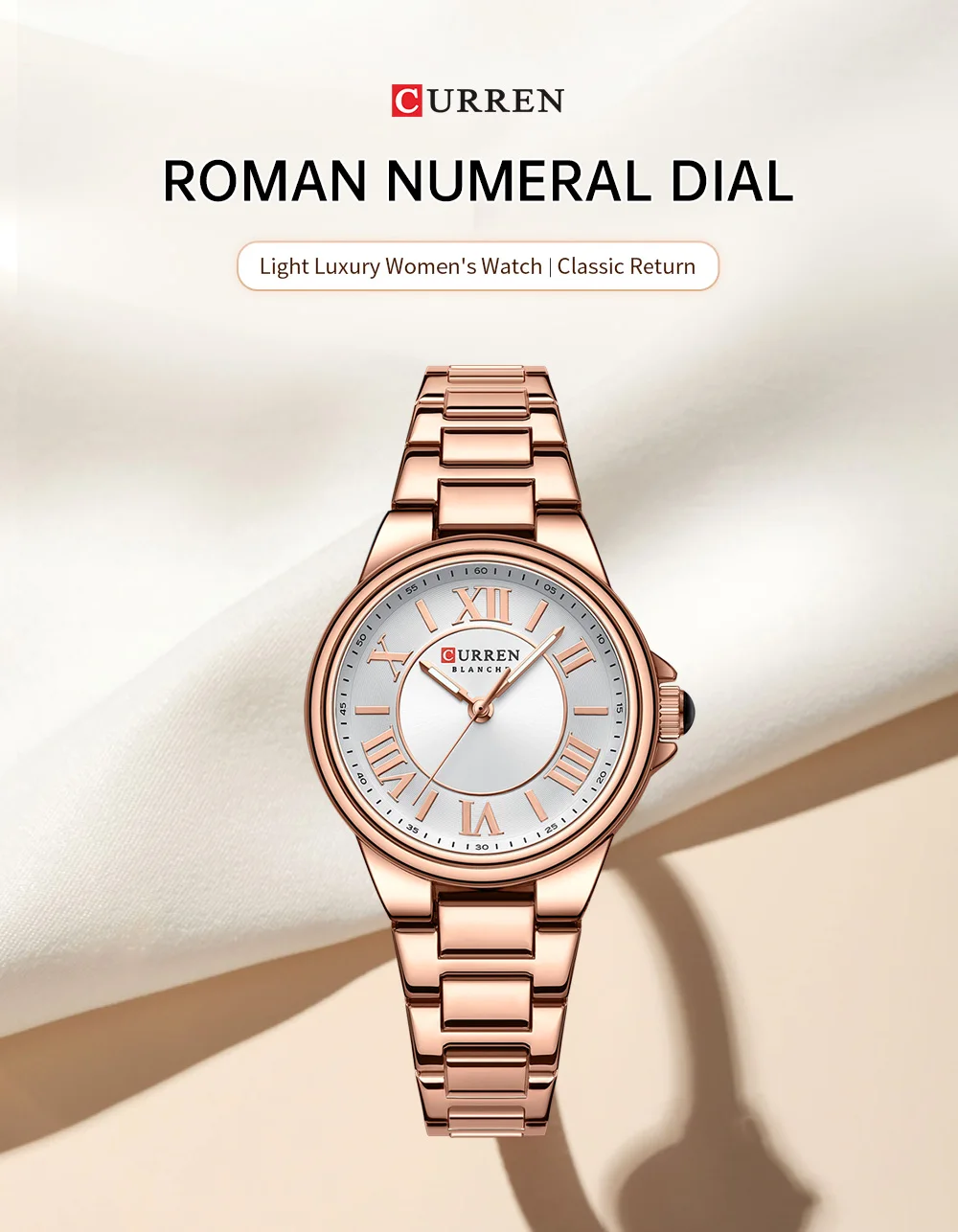 CURREN Romantic Charm Women's Wristwatches Fashion Design Thin Quartz Watch with Luminous Hands Stainless Steel Bracelet