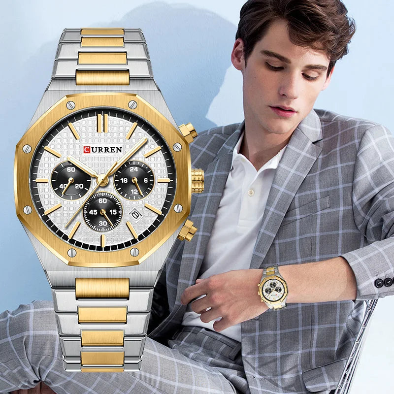 CURREN Watches for Mans Fashion Sports Waterproof Chronograph Octagonal Design Quartz luminous Wristwatches with Auto Date