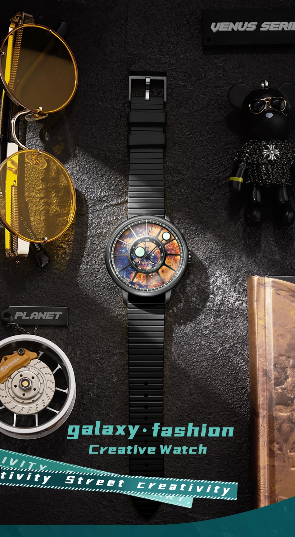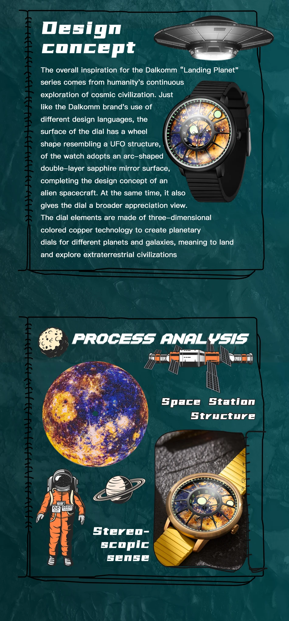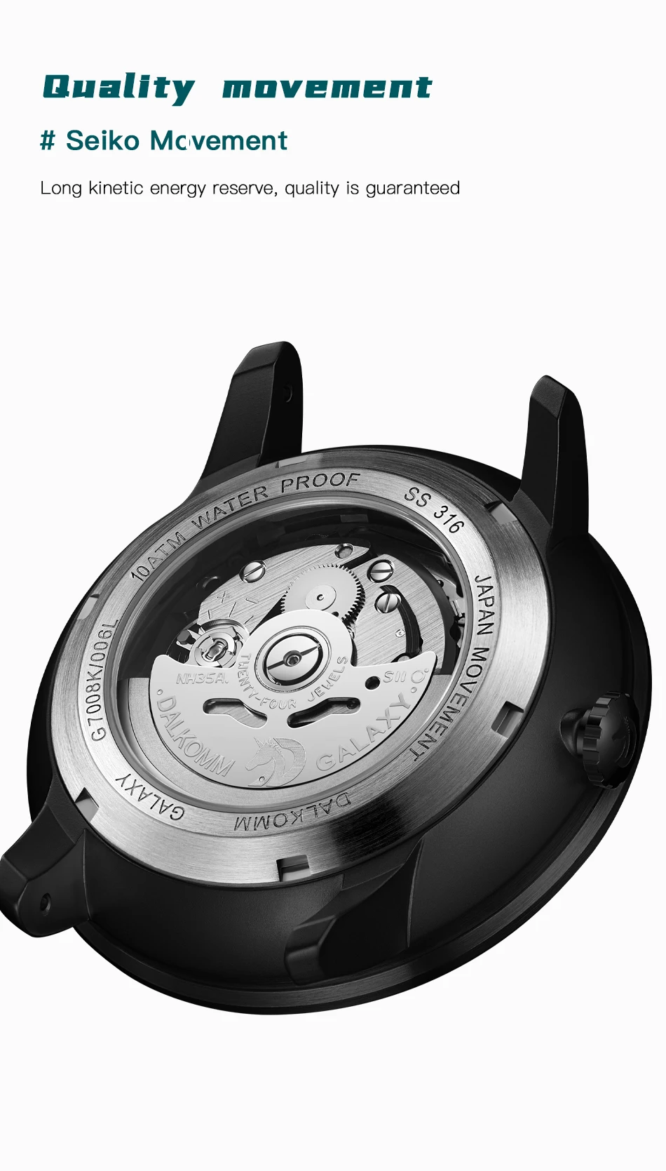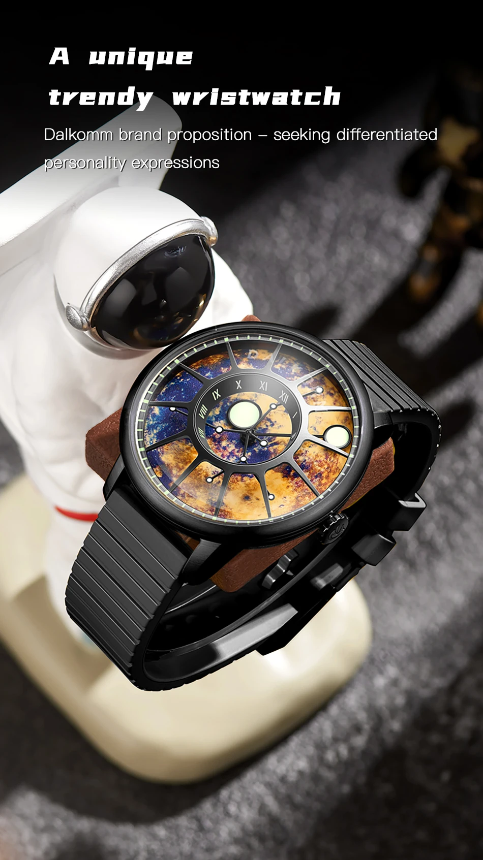 DALKOMM 2024 Design New Mechanical Watch NH35 Planet Theme Automatic Watch Men's Luminous Hands 100M Waterproof Rubber Strap