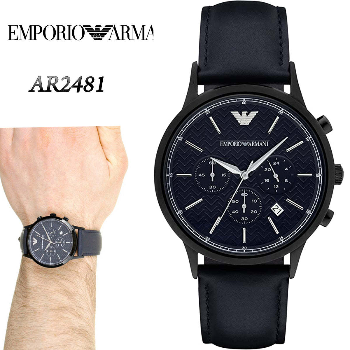Emporio Armani Renato Chronograph Quartz Blue Dial Blue Leather Strap Watch For Men - AR2481