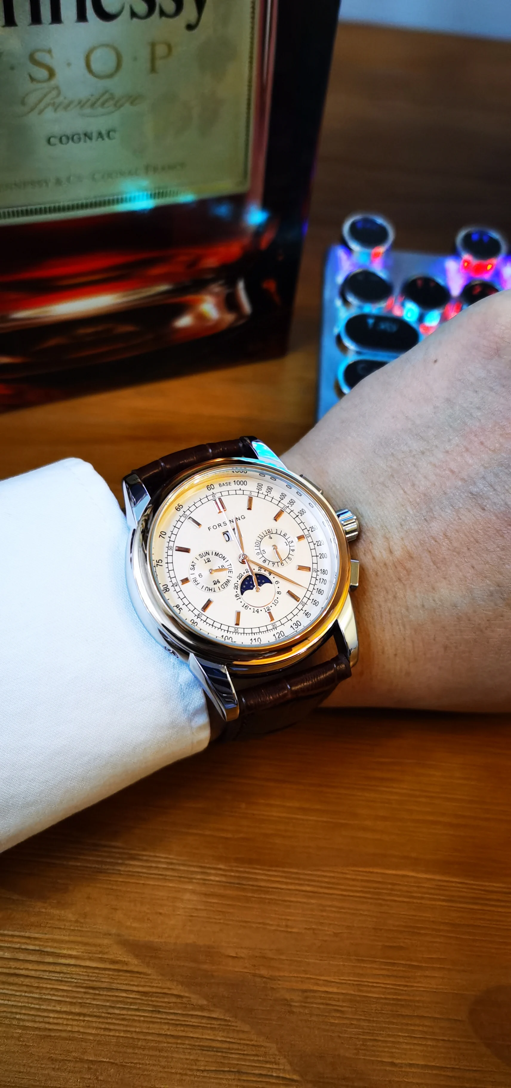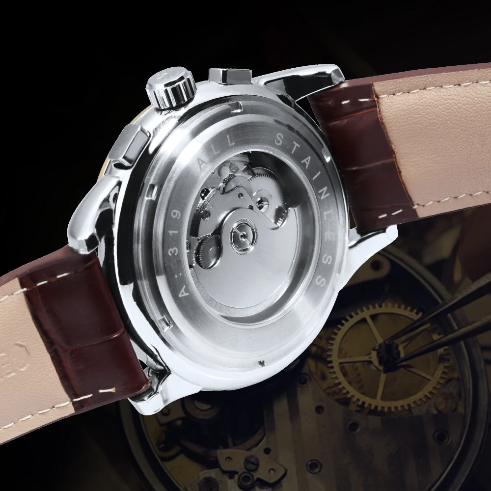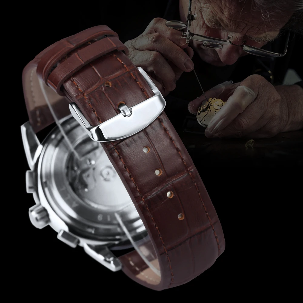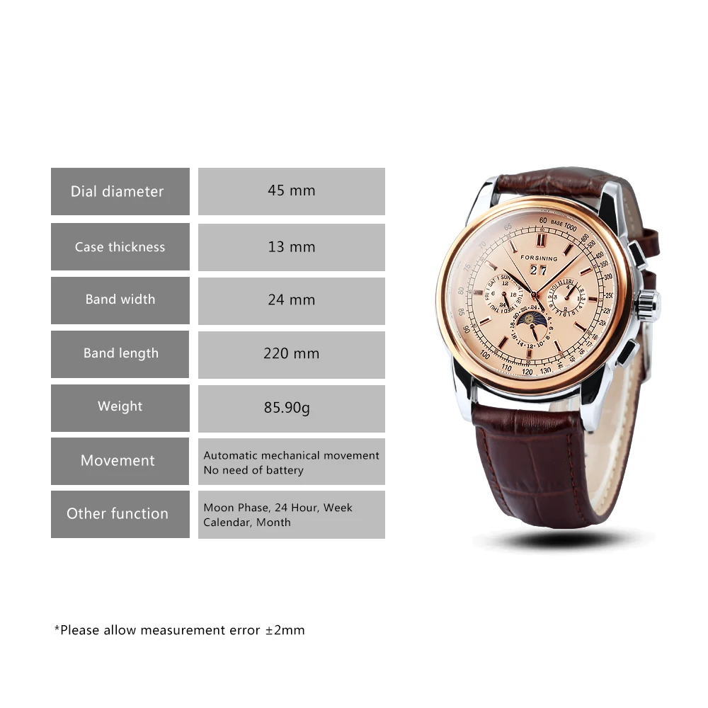 Forsining Classic Retro Mechanical Watches for Men Moon Phase Calendar Brown Genuine Leather Strap Luxury Automatic Mens Watch