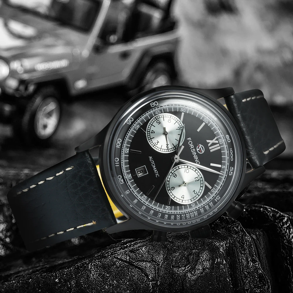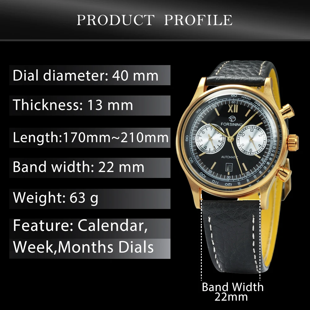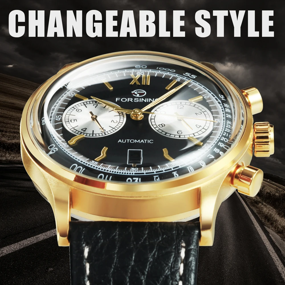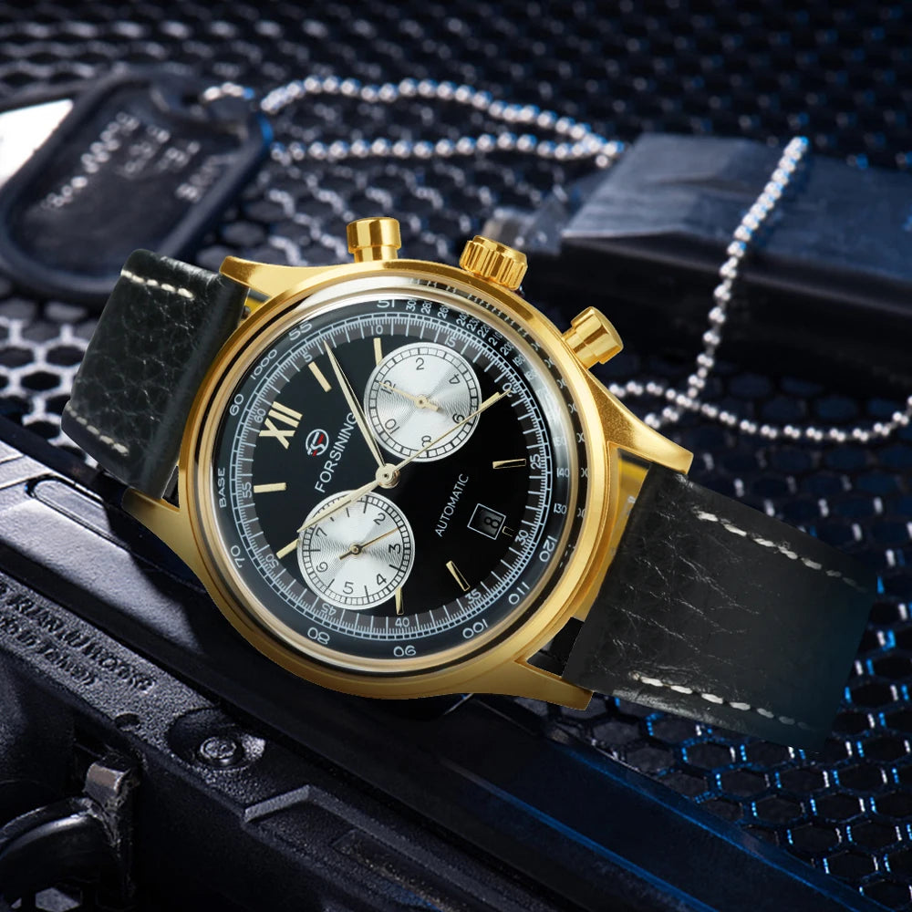 Forsining Luxury Mechanical Watches Retro Concave Glass Calendar Small Dials Automatic Mens Watch Classic Genuine Leather Strap