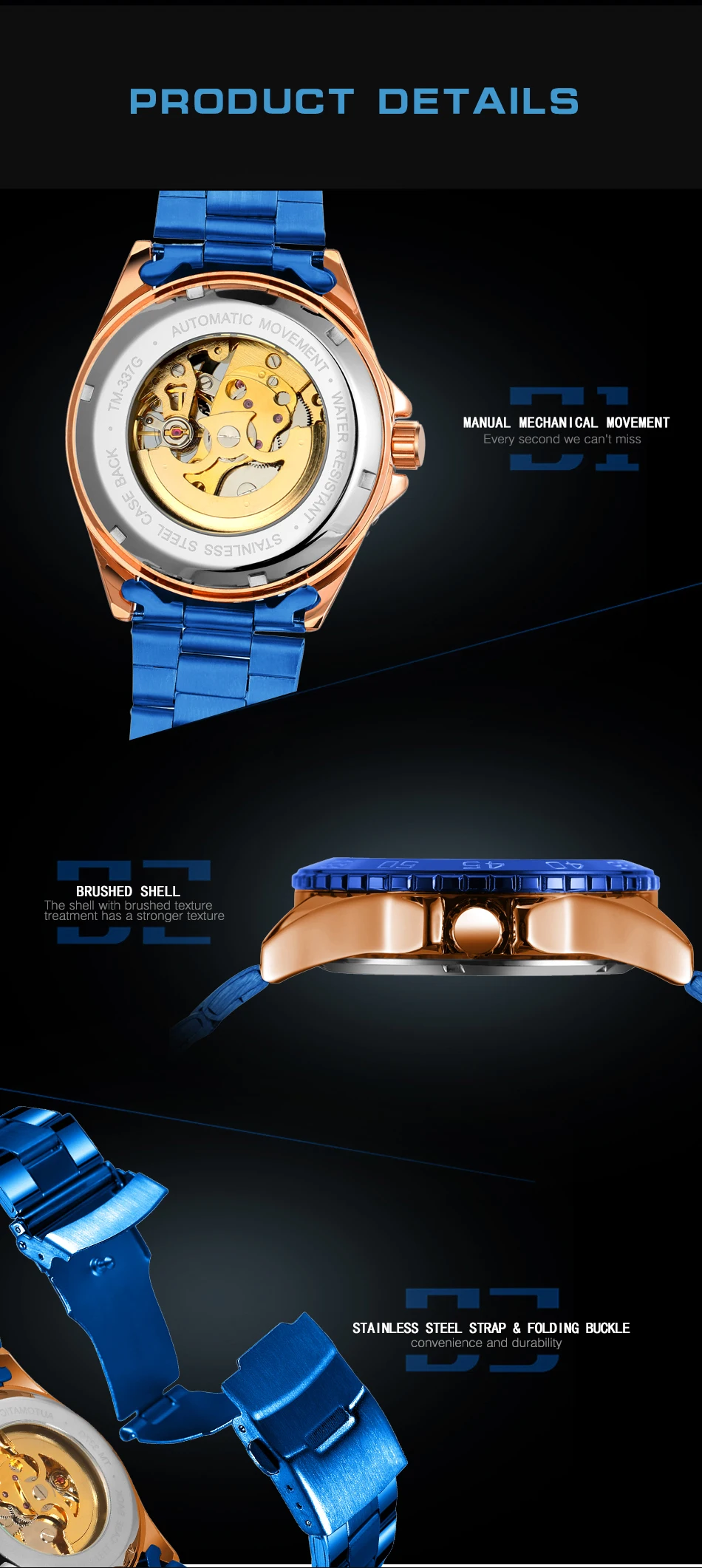 Manual Instruction: Mechanical watch needs shaking & winding to start(NO OVER WINDING!).