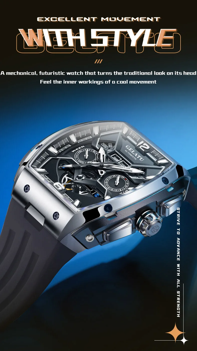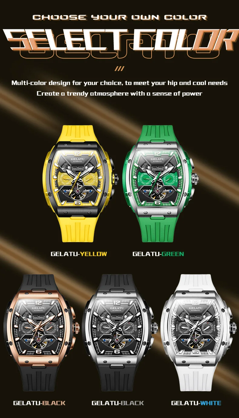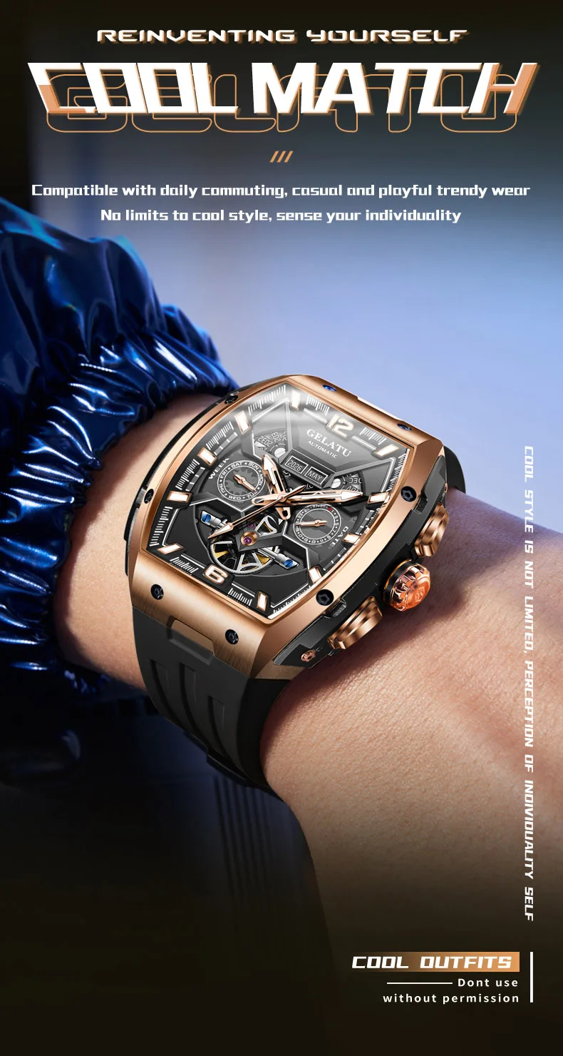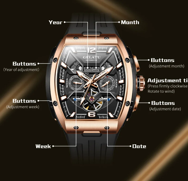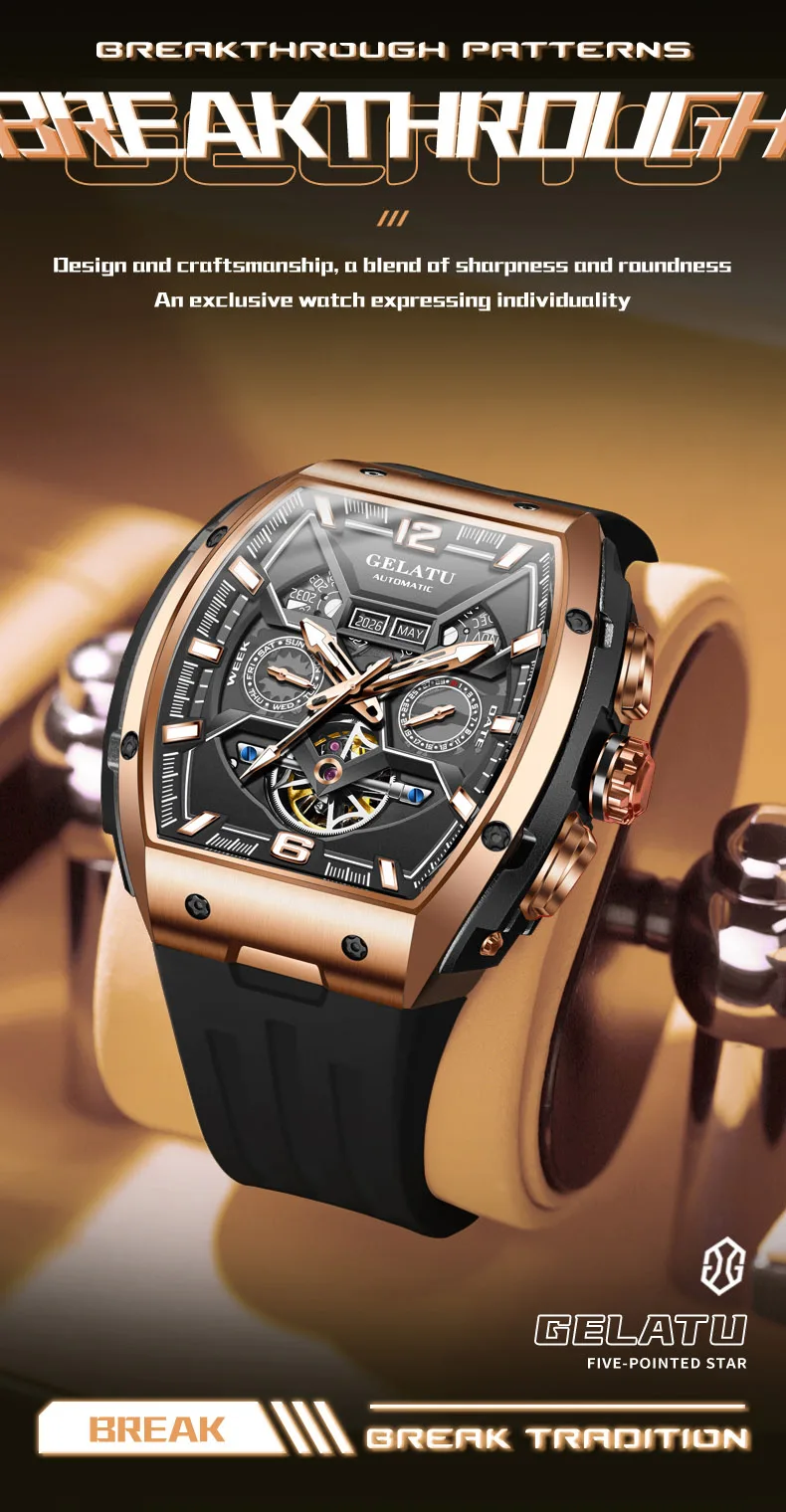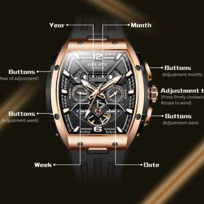 GELATU 6013 Tourbillon Men's Watch Luxury Brand Multi functional Sapphire Waterproof Men Automatic Mechanical Watch Reloj Hombre