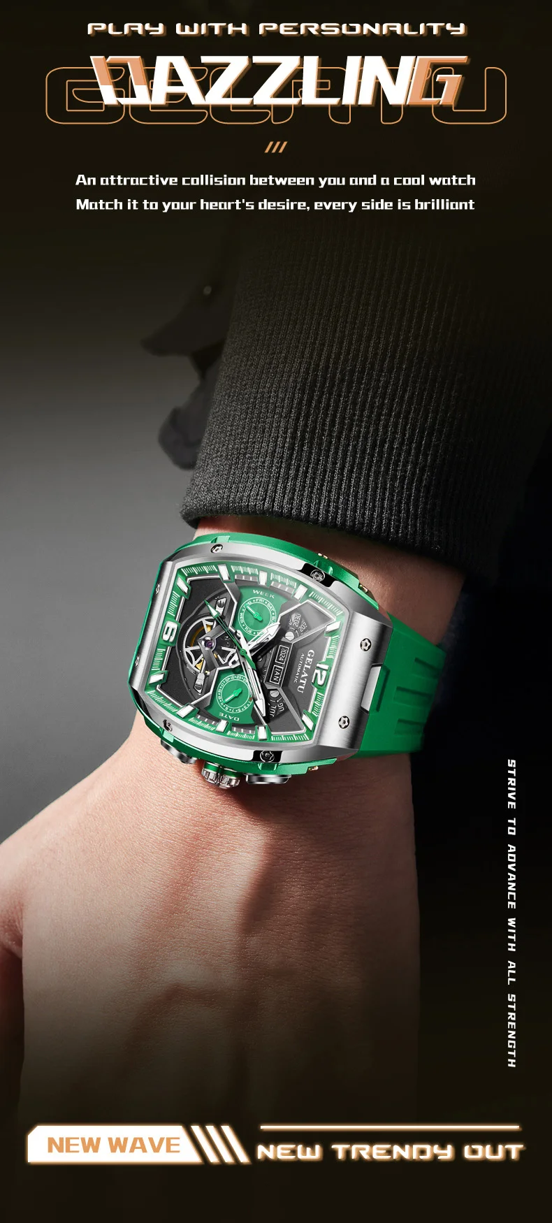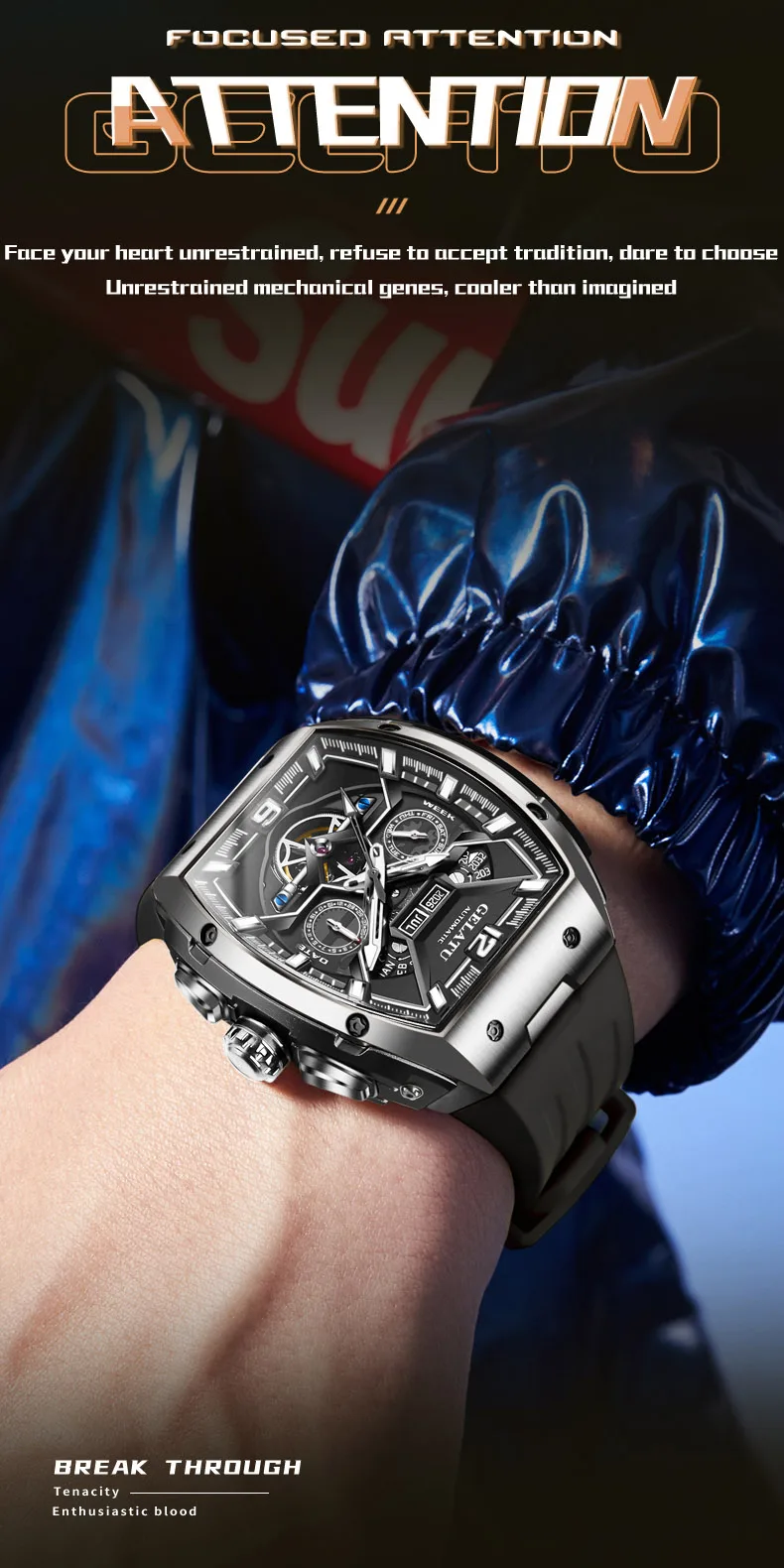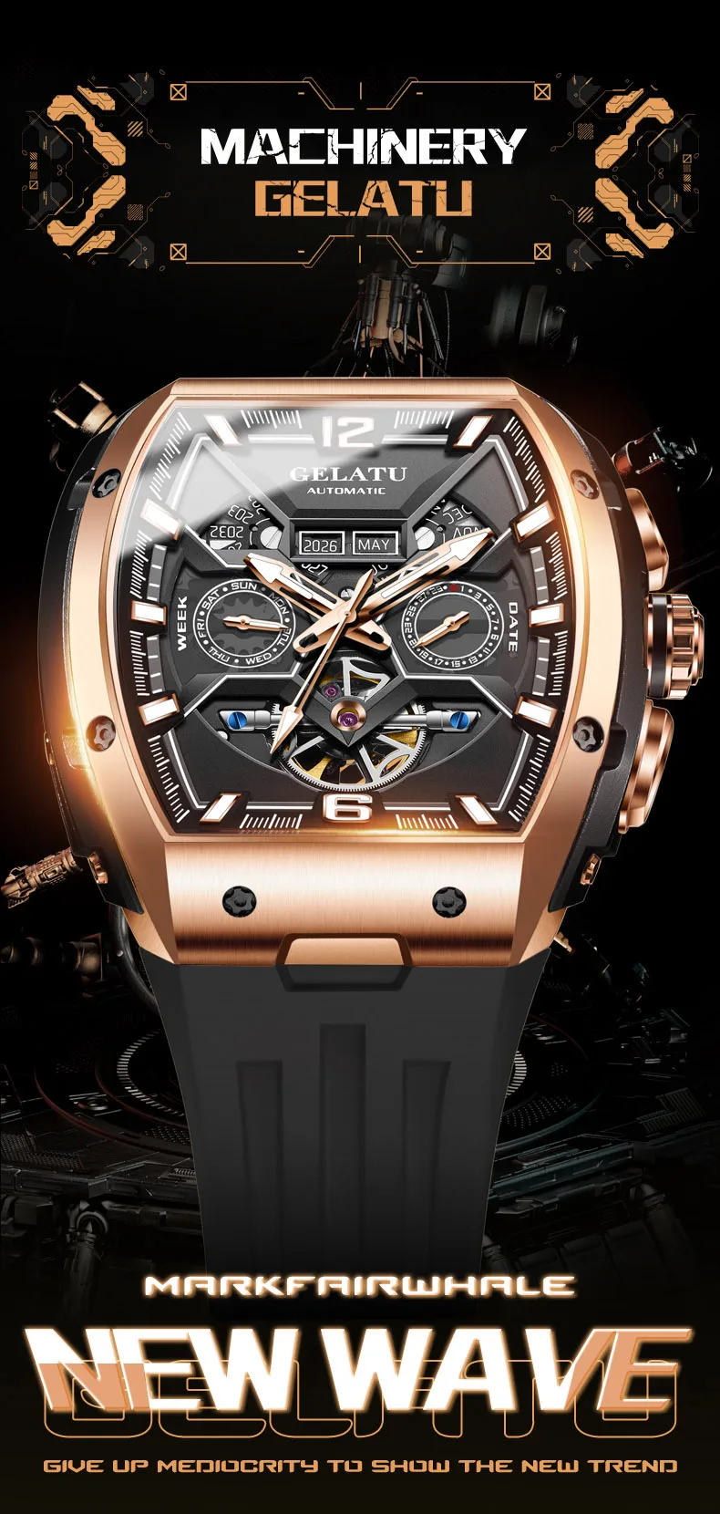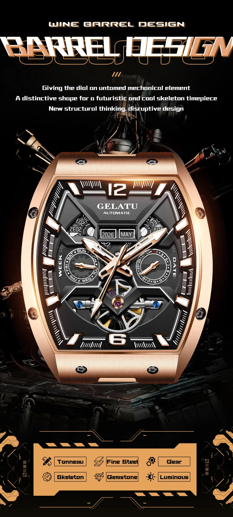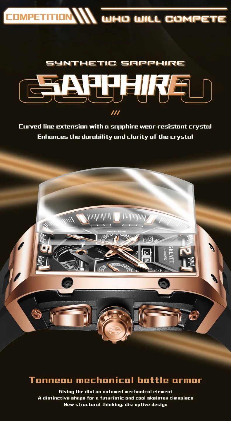 GELATU 6013 Tourbillon Men's Watch Luxury Brand Multi functional Sapphire Waterproof Men Automatic Mechanical Watch Reloj Hombre