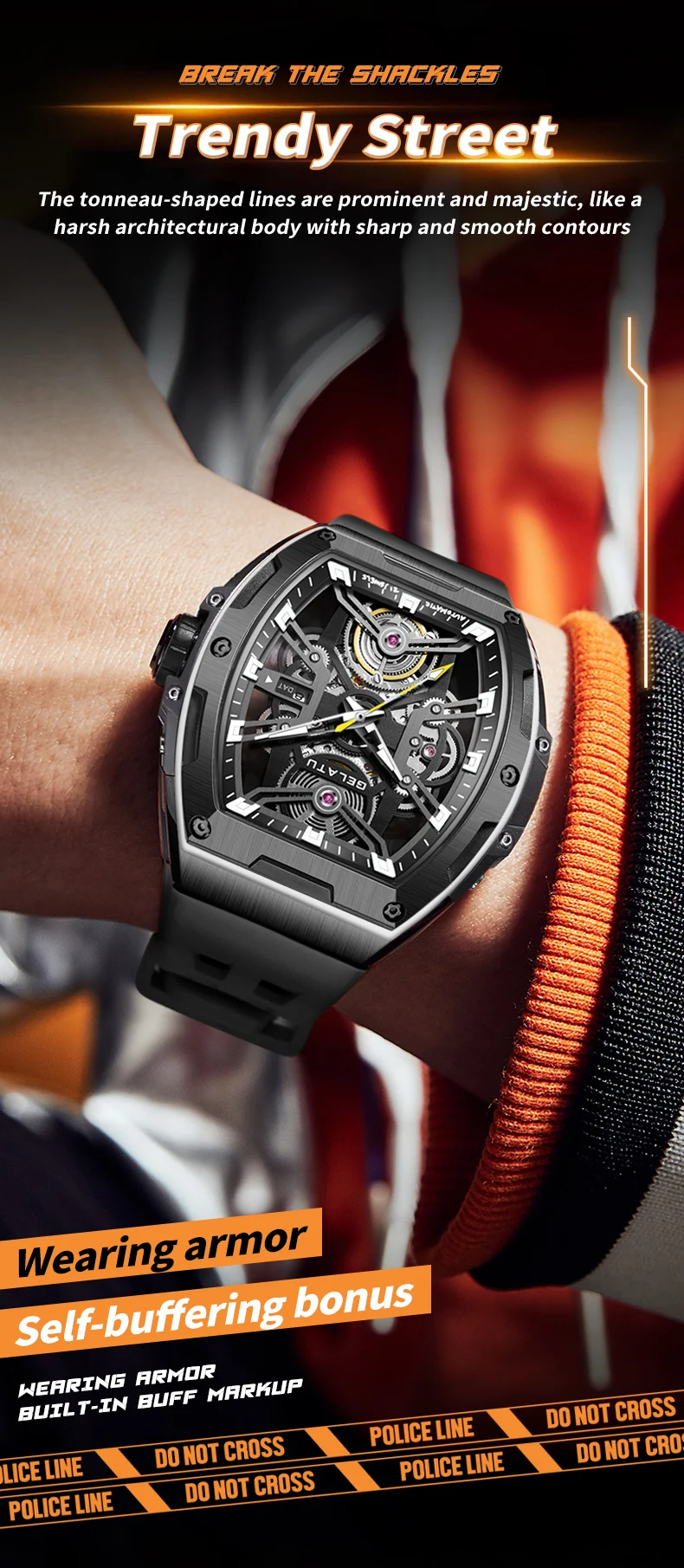 Original Tonneau Automatic Men's Luxury Watch Mechanical Sapphire Crystal Waterproof Sport Silicone Strap Wristwatche