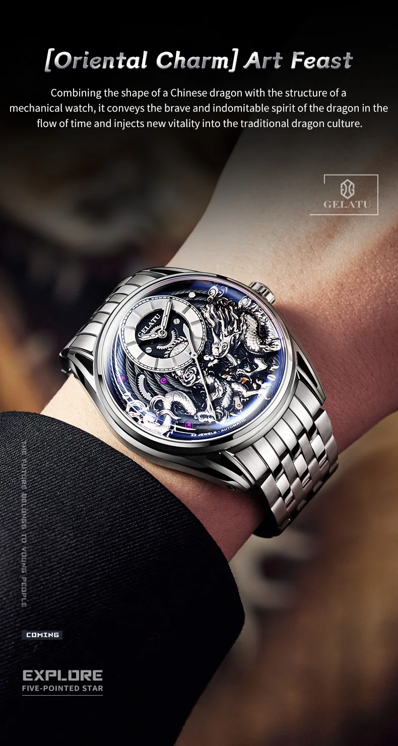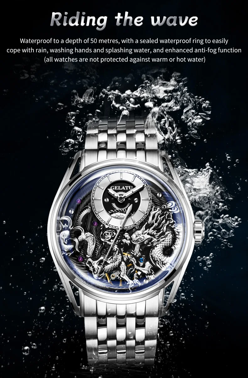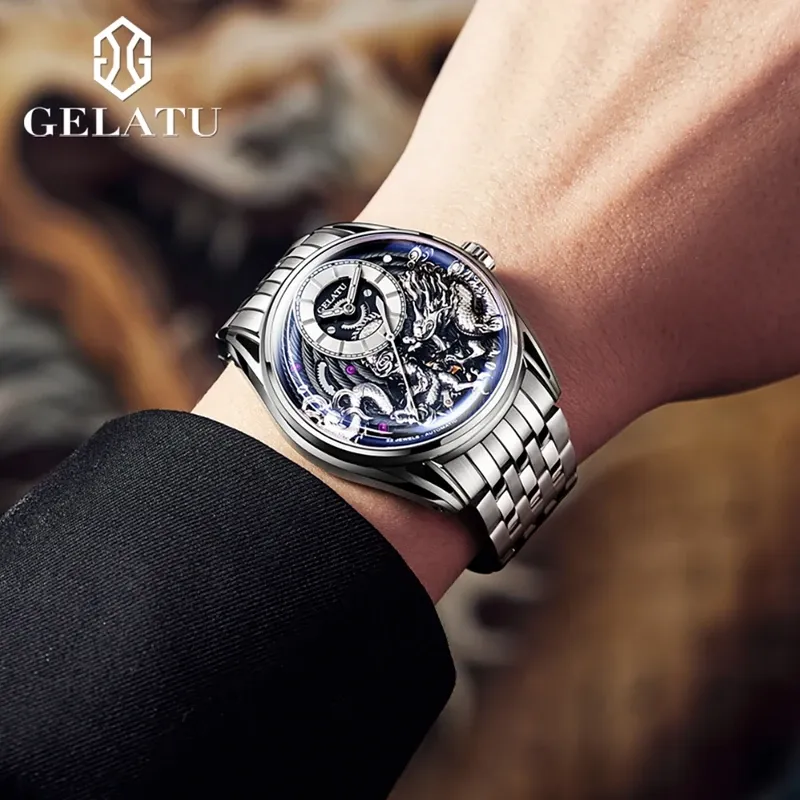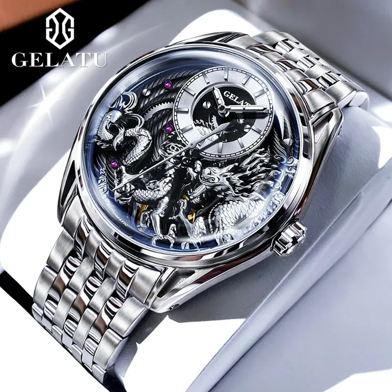GELATU Top Brand Fashion Men Watch Trend Automatic Mechanical Watch 316 Steel Strip Waterproof High end Gift Box Male Wristwatch