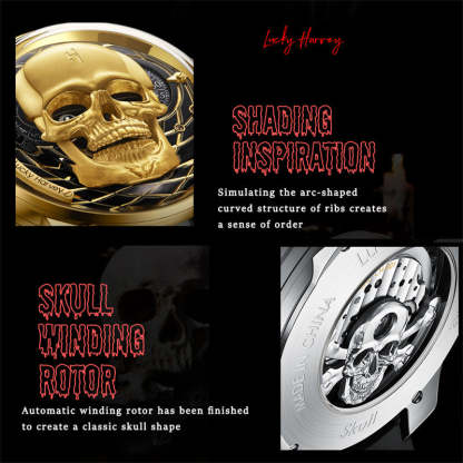 【Limited Edition 111pcs】Gold Skull Automatic Mechanism Watch Lucky Harvey