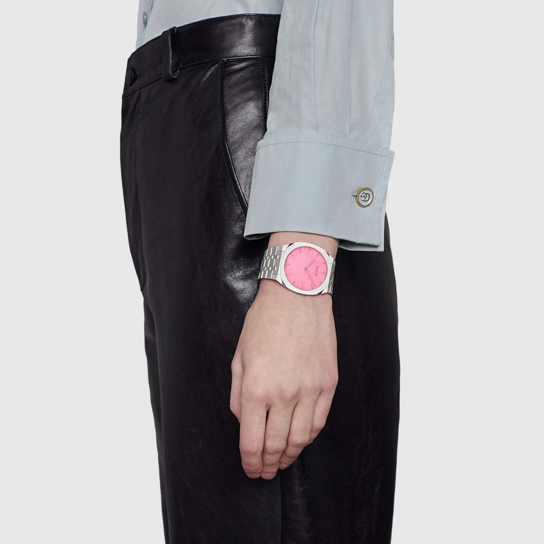 Gucci 25H Quartz Pink Dial Silver Steel Strap Watch for Women - YA163410