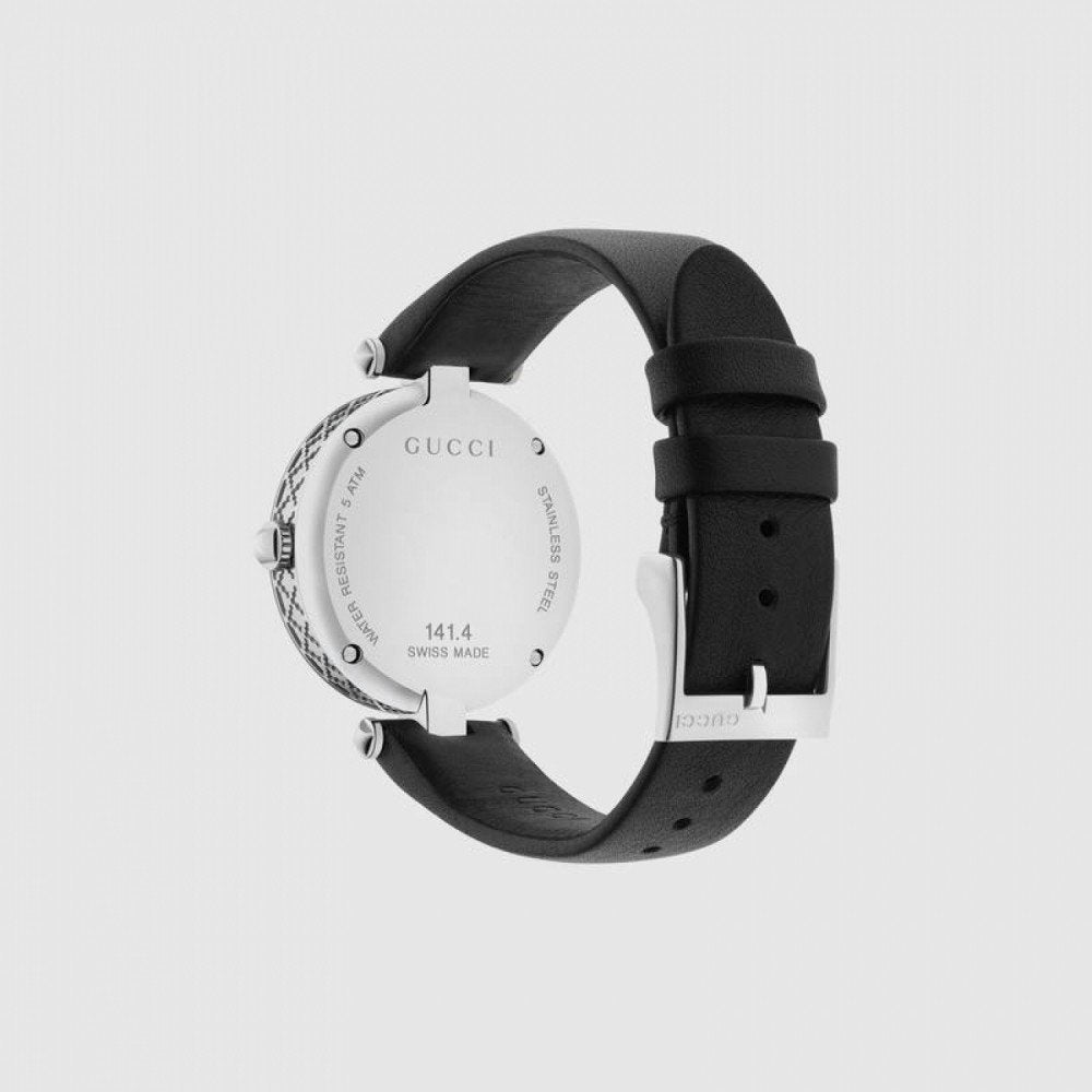 Gucci Diamantissima Diamonds Black Dial Black Leather Strap Watch For Women - YA141403