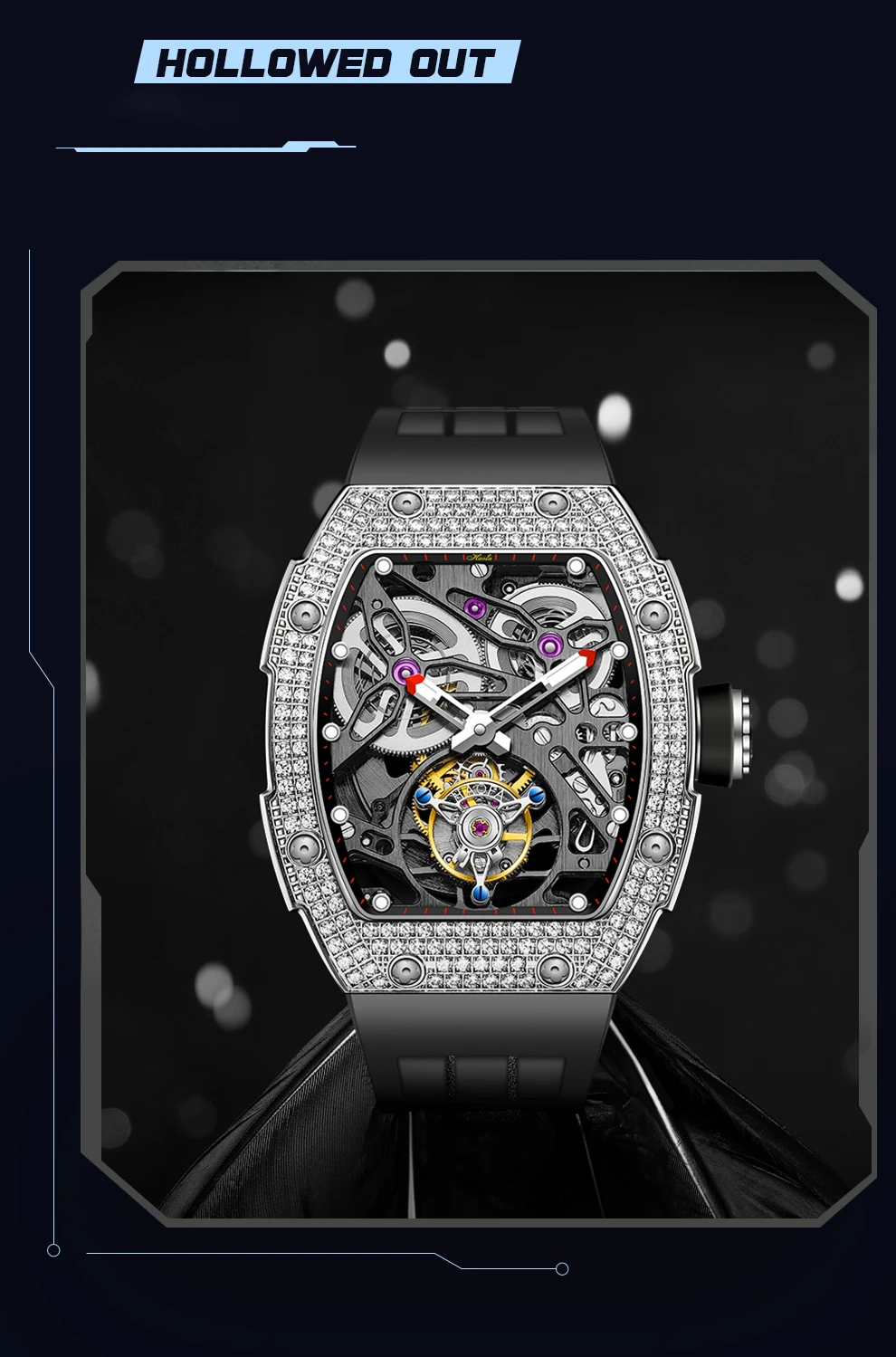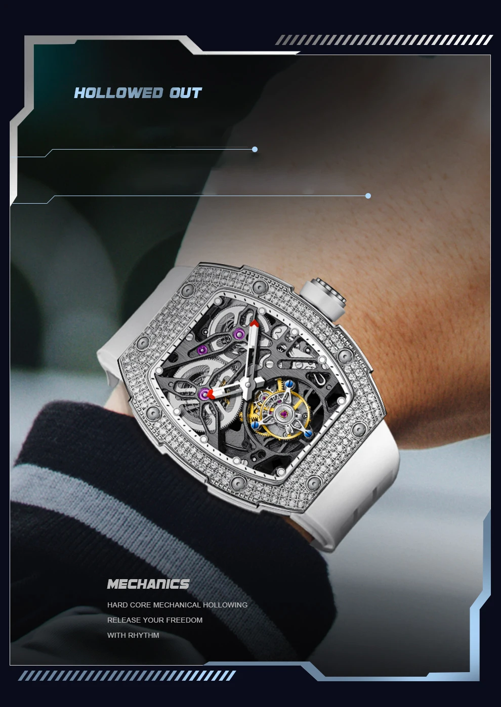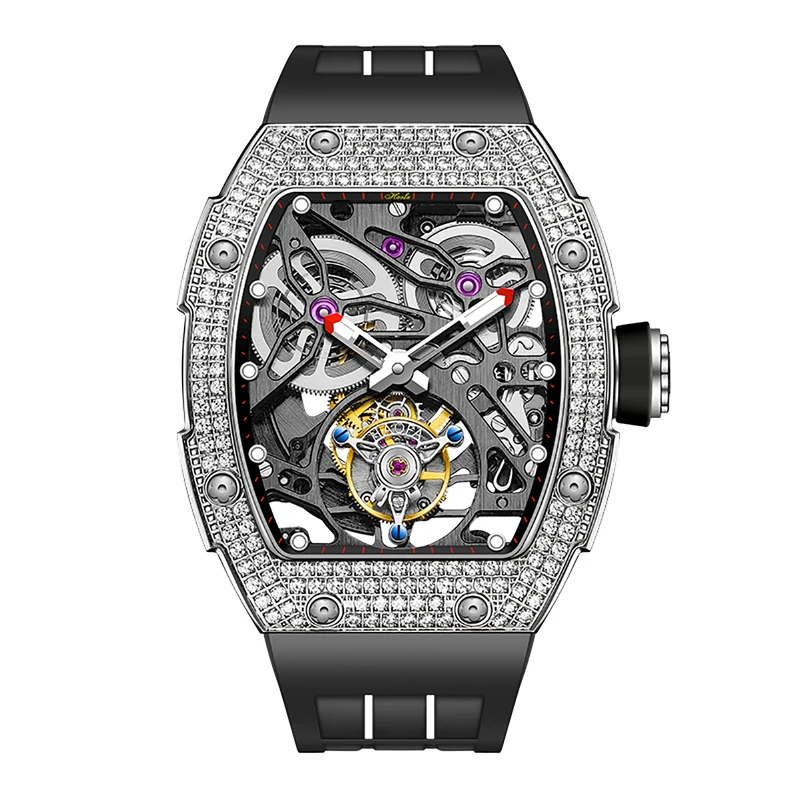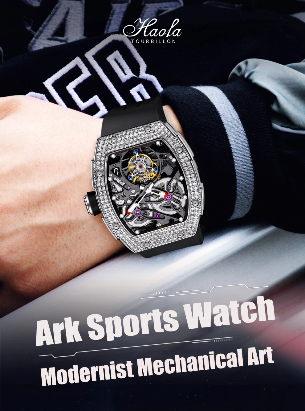 Haofa 1901 Skeleton Automatic Tourbillon Movement Watch For Men Luxury Diamond Case Mechanical Tourbillon Sapphire Mens Watch