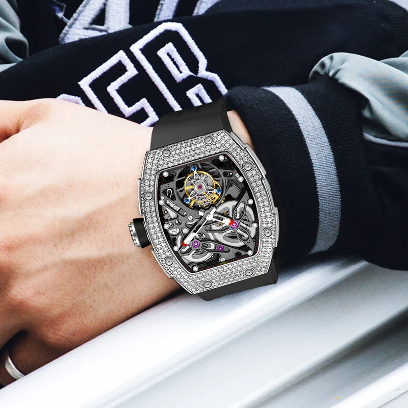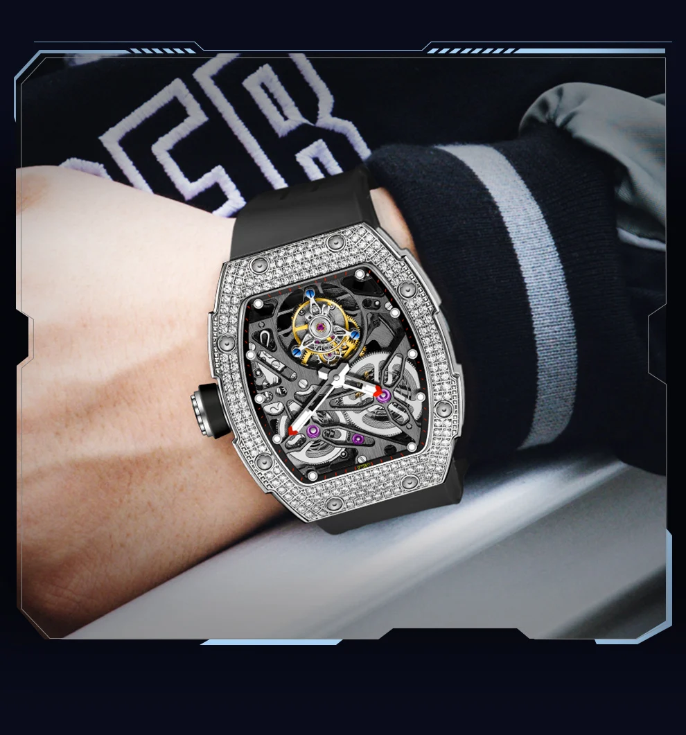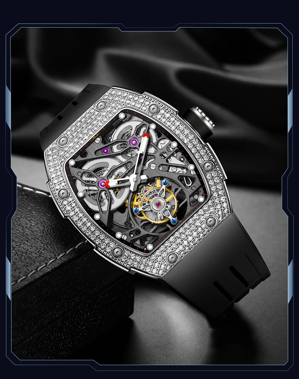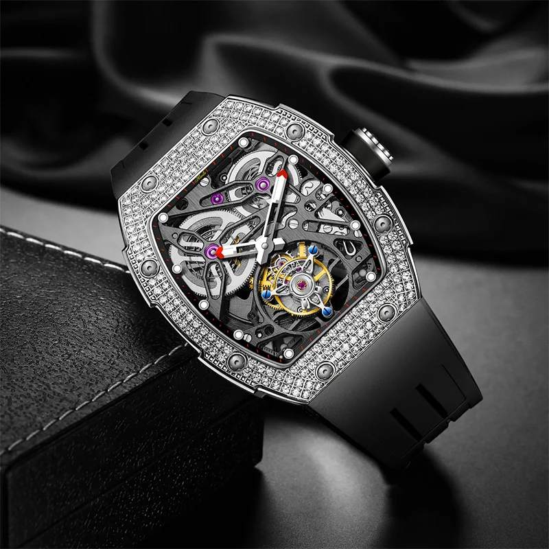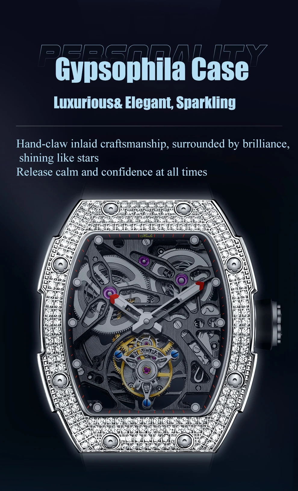 Haofa 1901 Skeleton Automatic Tourbillon Movement Watch For Men Luxury Diamond Case Mechanical Tourbillon Sapphire Mens Watch