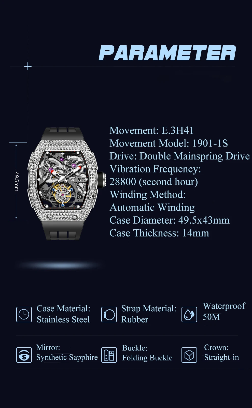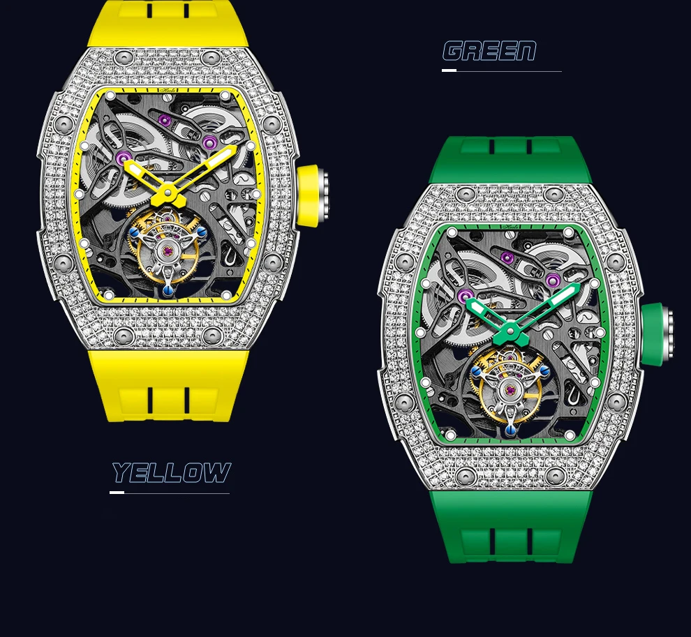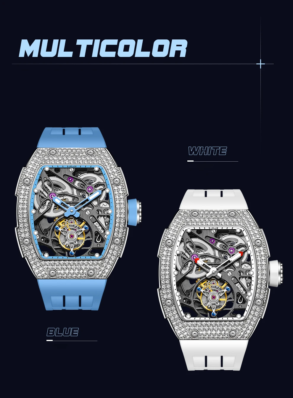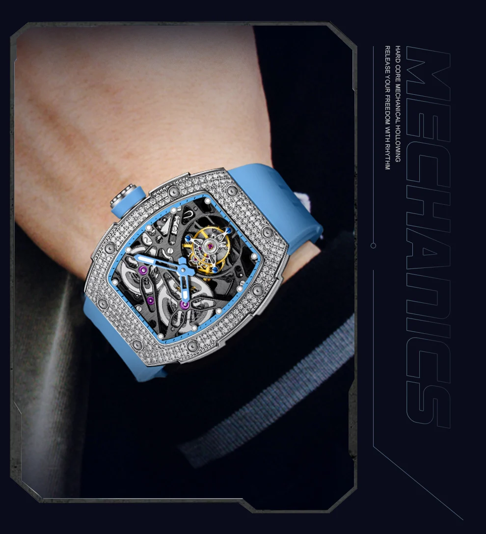 Haofa 1901 Skeleton Automatic Tourbillon Movement Watch For Men Luxury Diamond Case Mechanical Tourbillon Sapphire Mens Watch