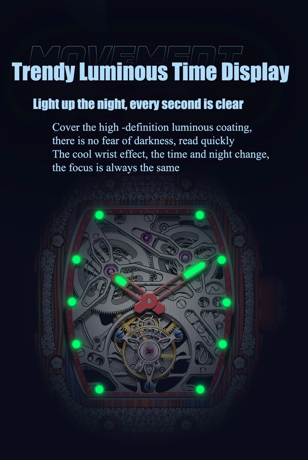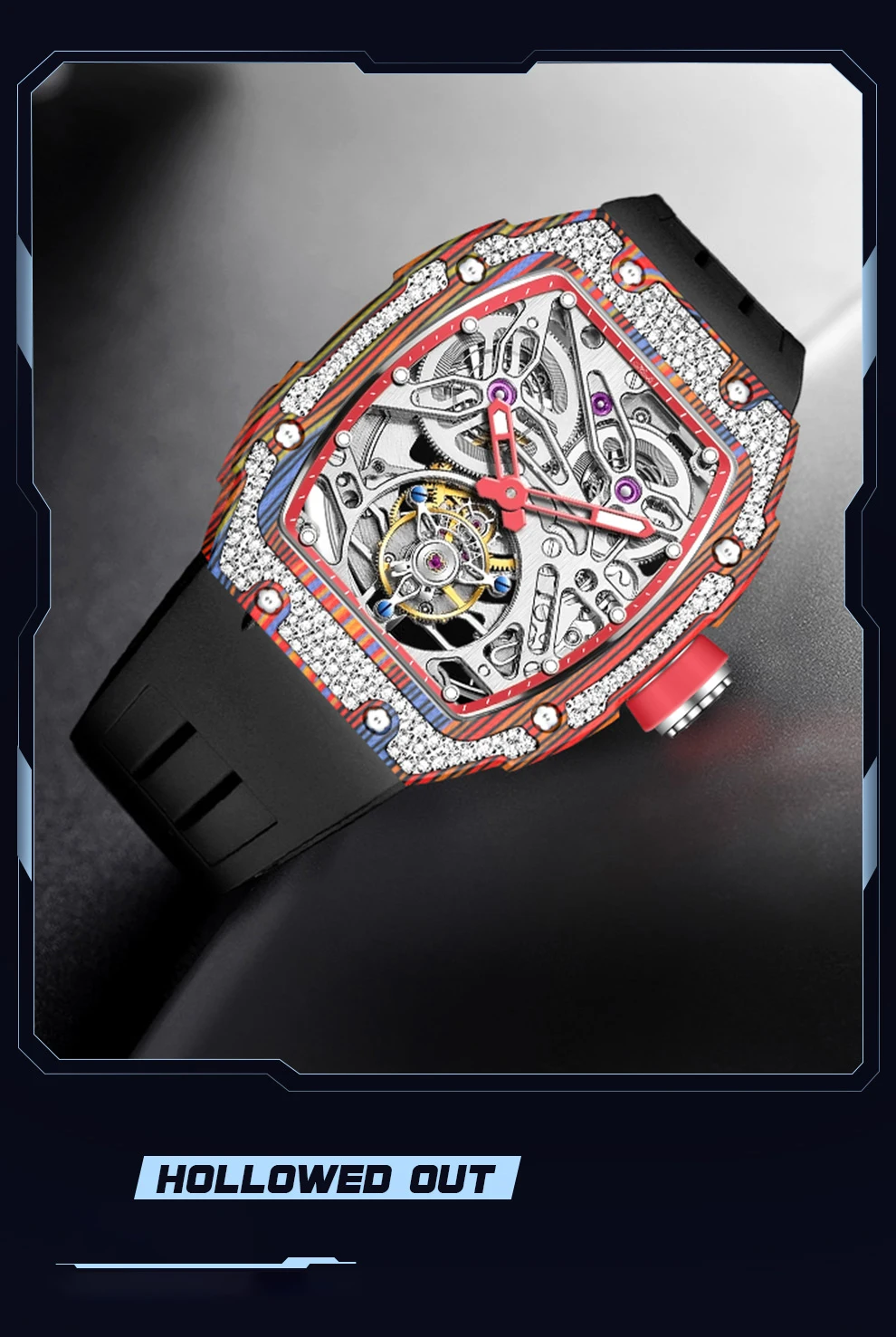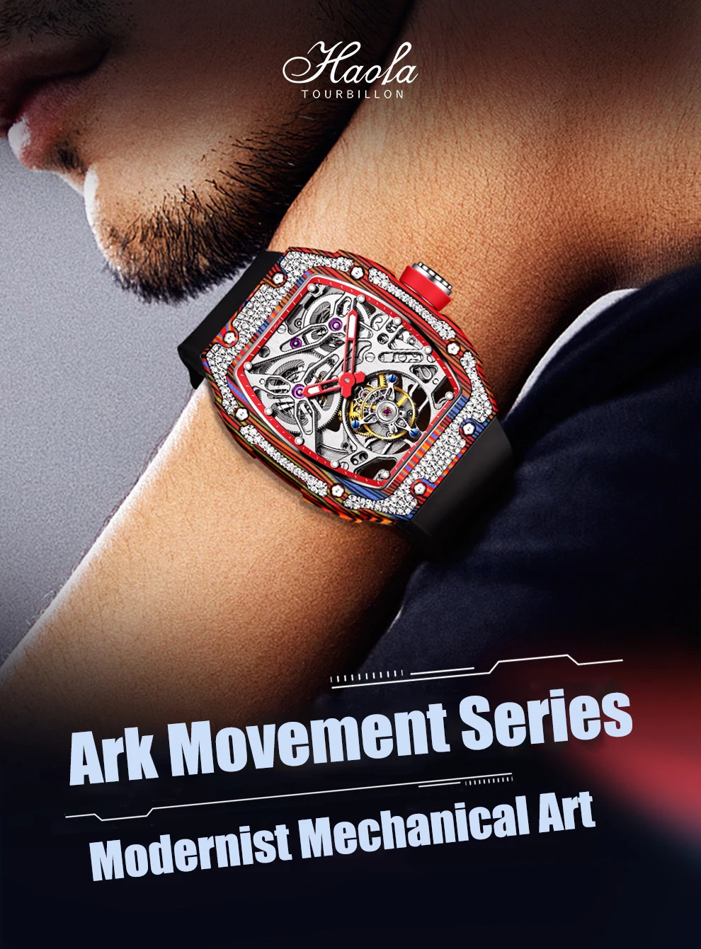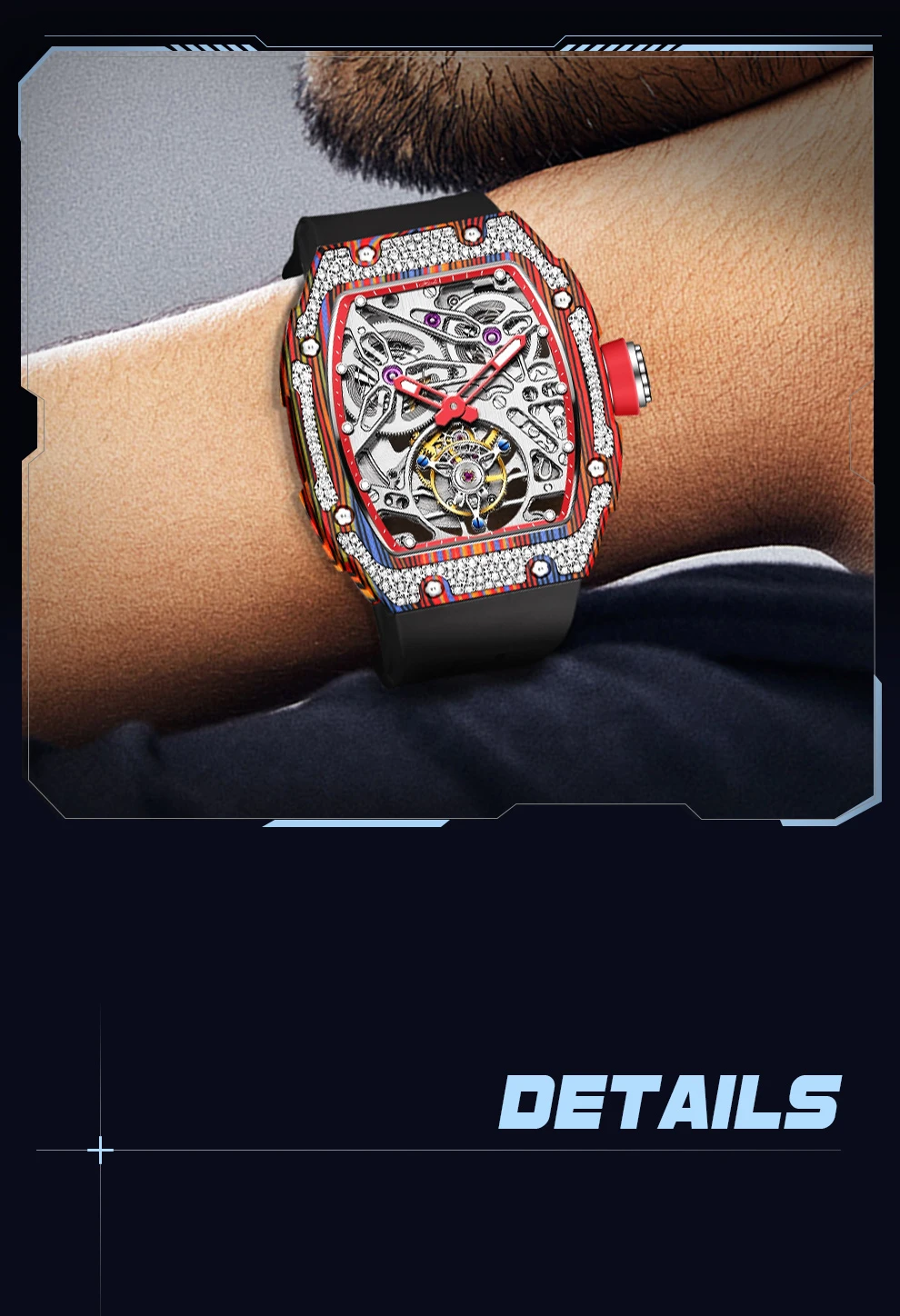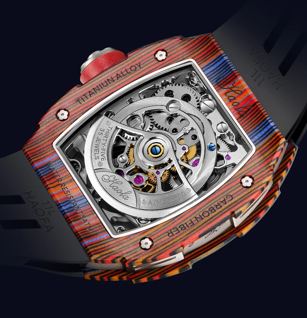 Haofa Automatic Tourbillon Watch Luxury Carbon Fiber Diamond Case Skeleton Mechanical Watch Sapphire Waterproof Luminous 1901-3