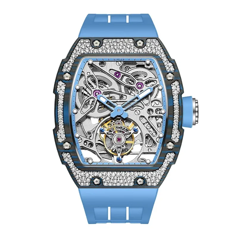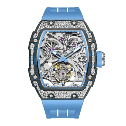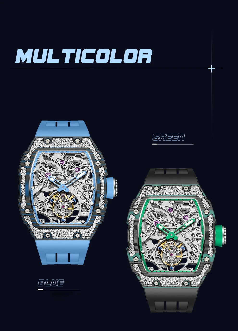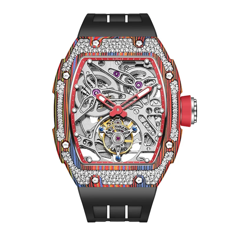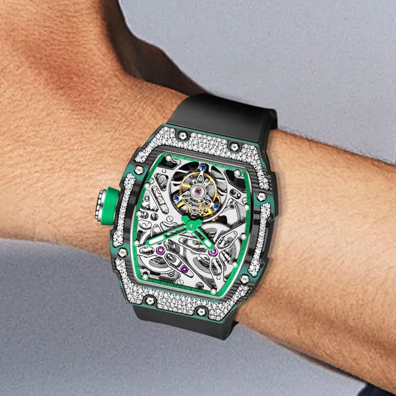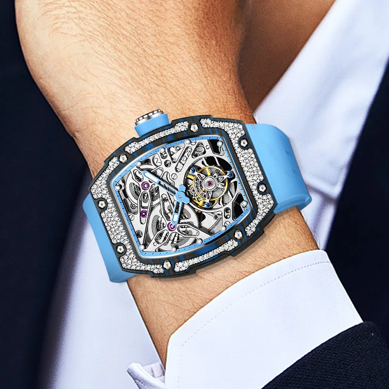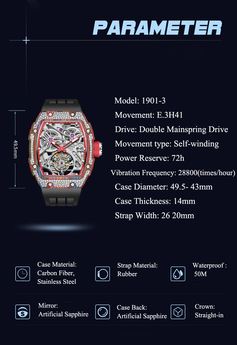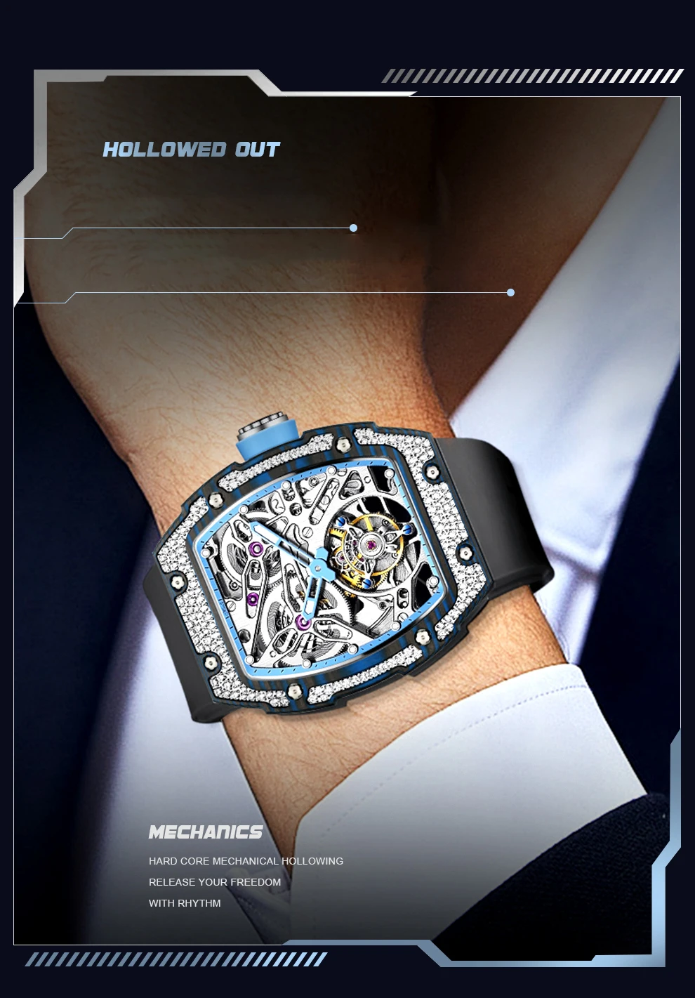 Haofa Automatic Tourbillon Watch Luxury Carbon Fiber Diamond Case Skeleton Mechanical Watch Sapphire Waterproof Luminous 1901-3