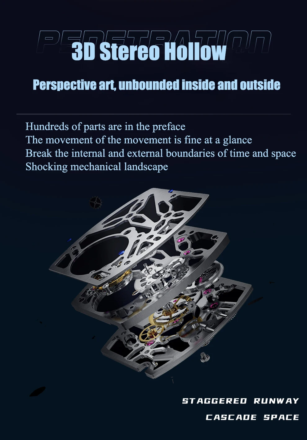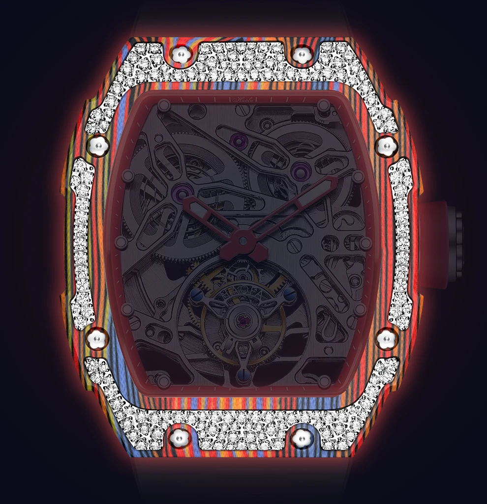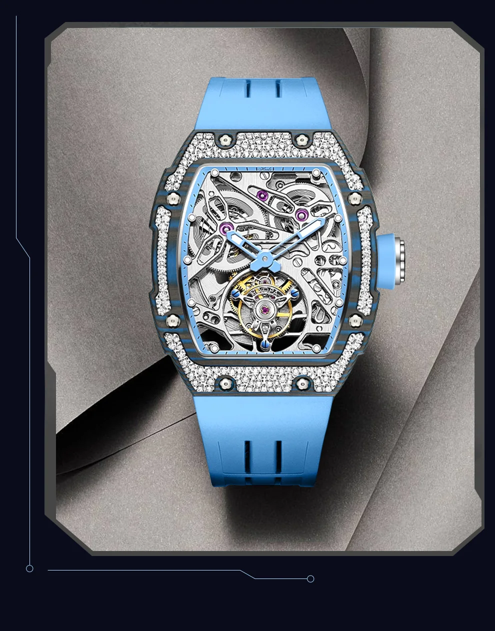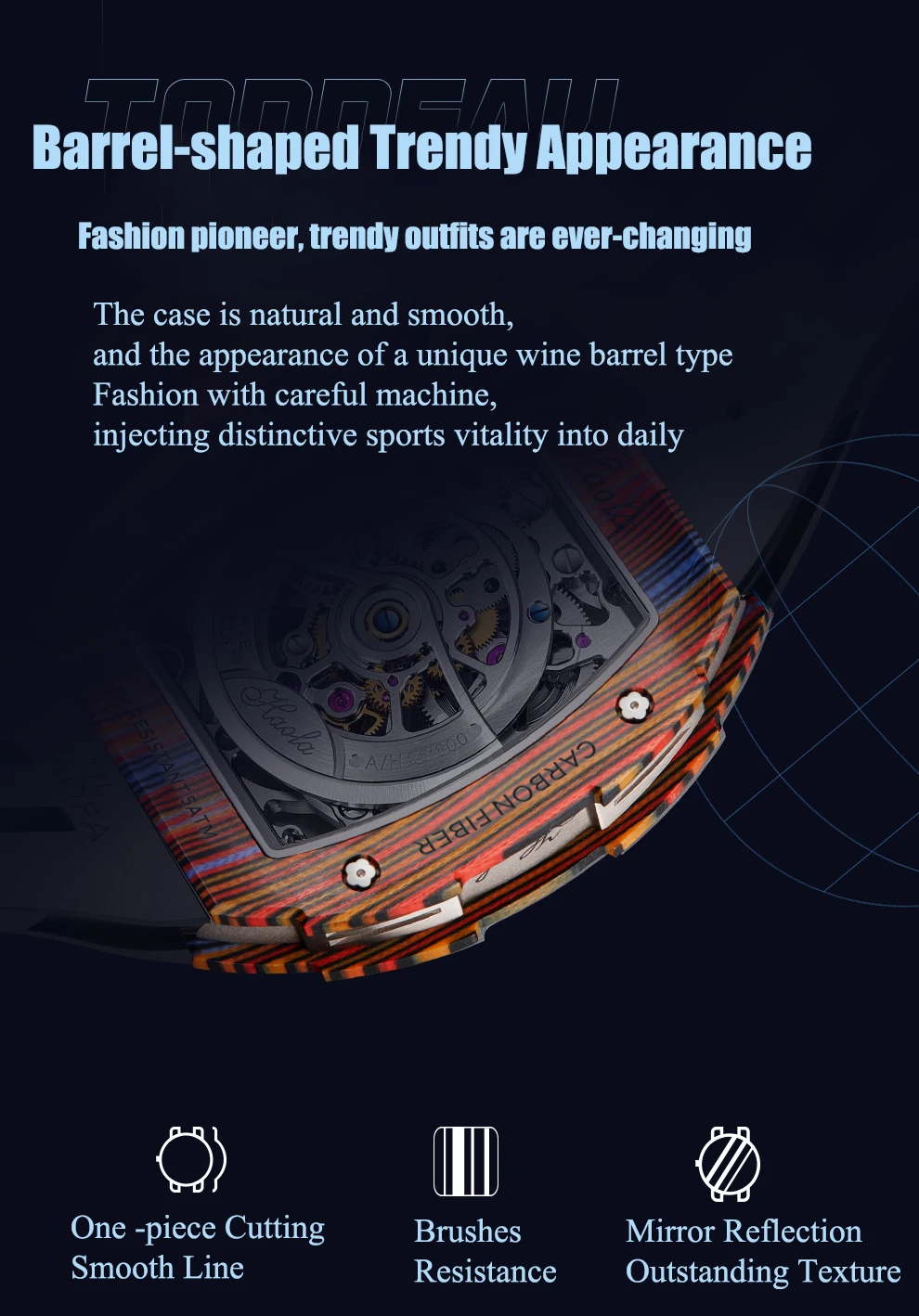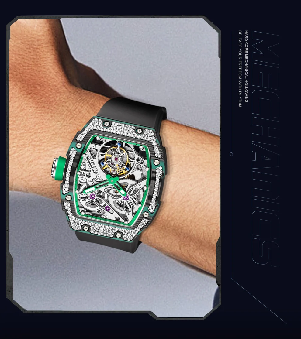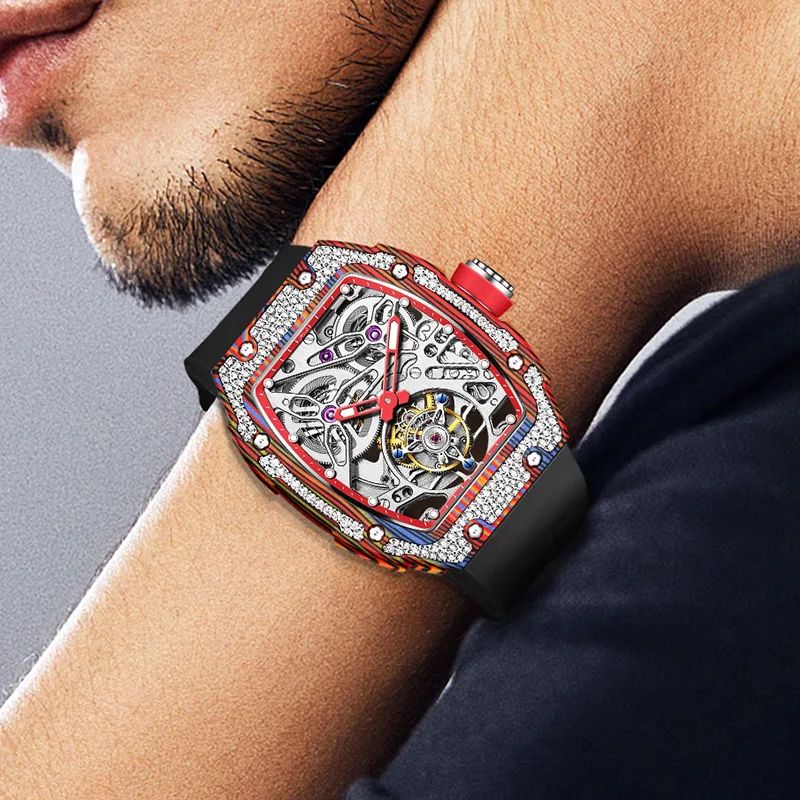 Haofa Automatic Tourbillon Watch Luxury Carbon Fiber Diamond Case Skeleton Mechanical Watch Sapphire Waterproof Luminous 1901-3