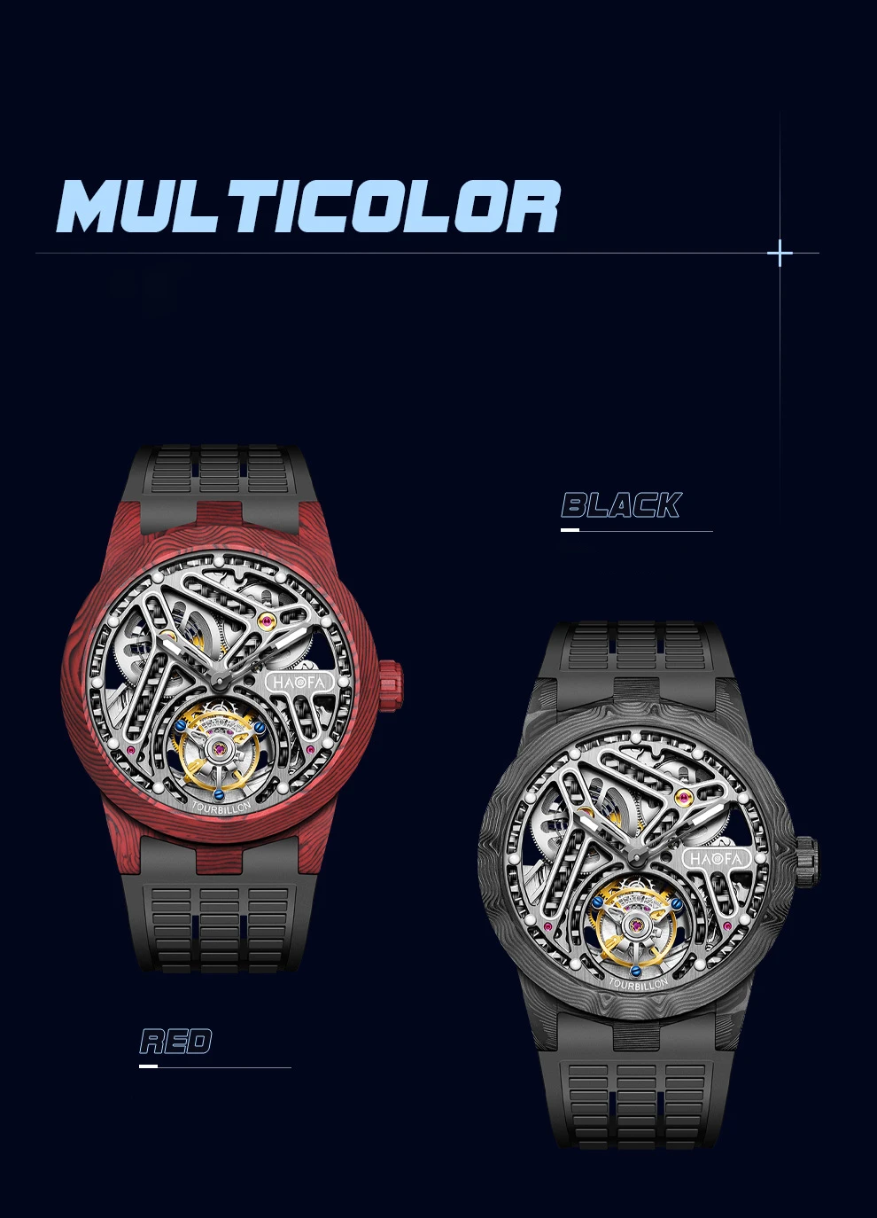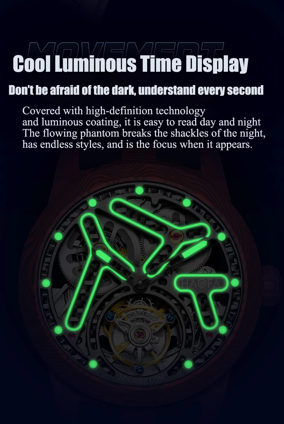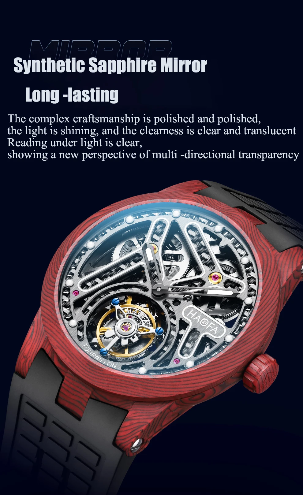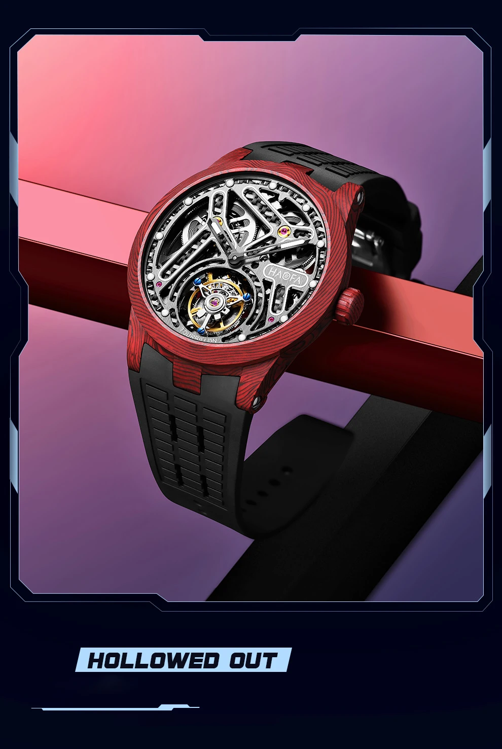 Haofa carbon fiber flying tourbillon watch hollow automatic luxury mechanical watch Sapphire waterproof watch for men 2330