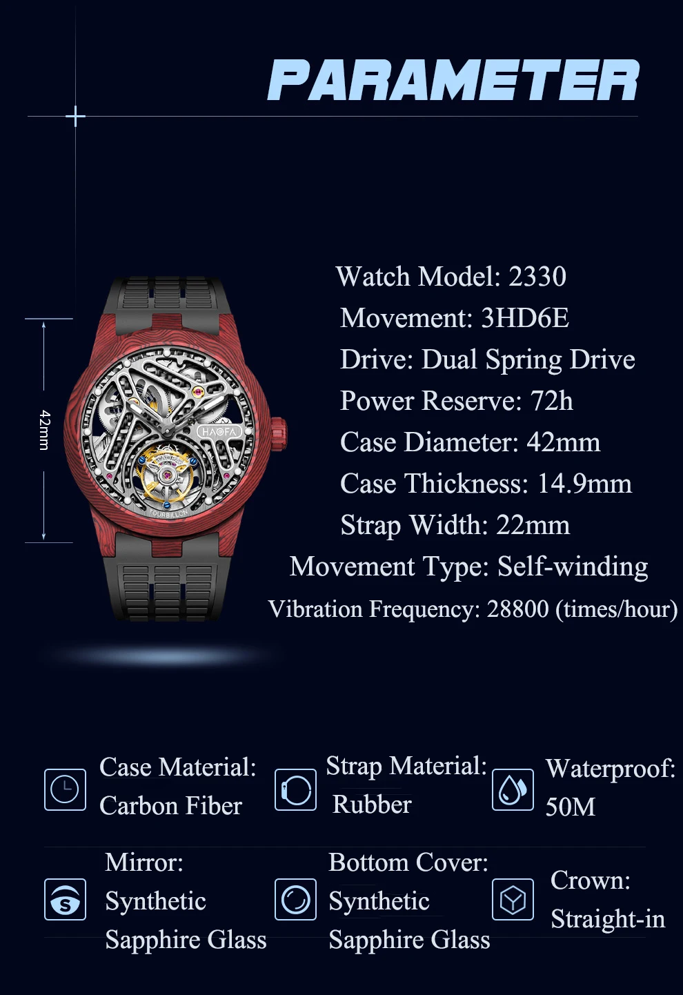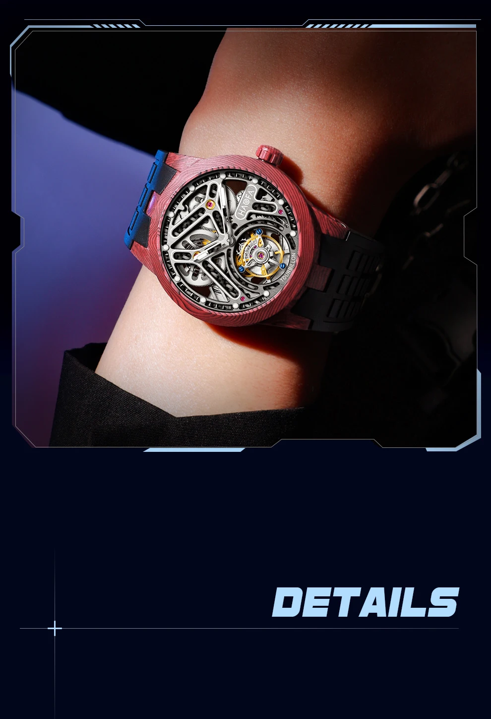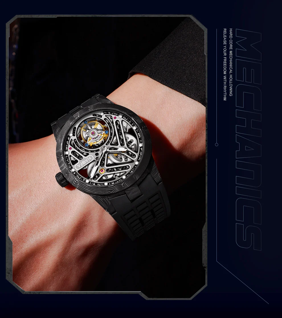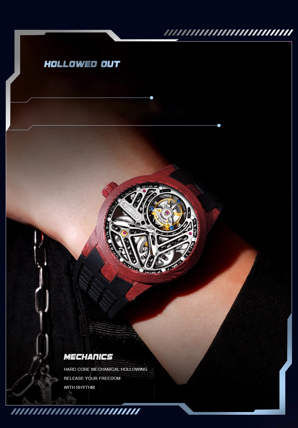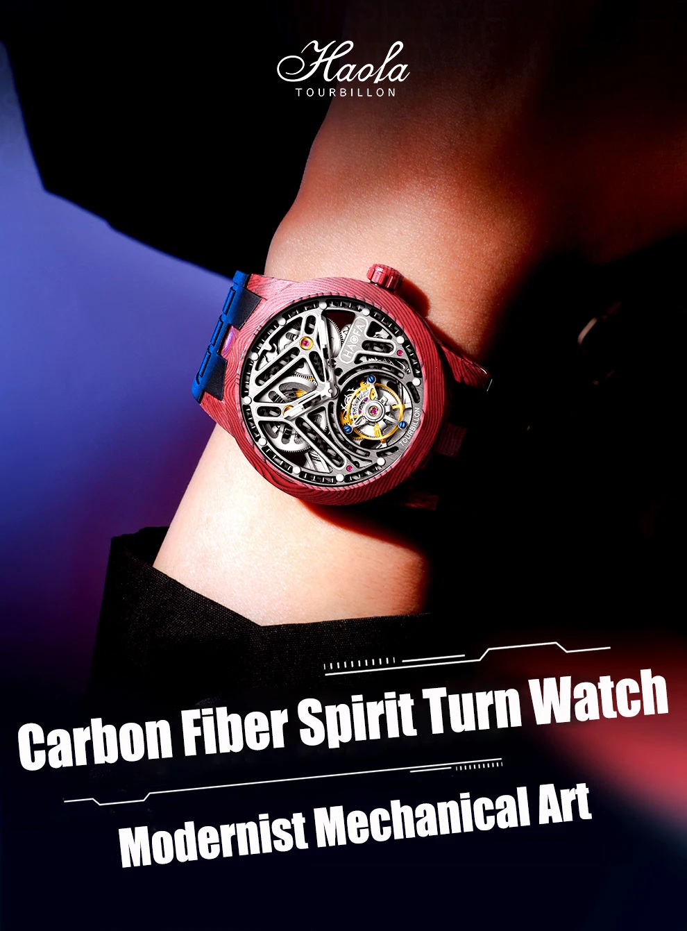Haofa carbon fiber flying tourbillon watch hollow automatic luxury mechanical watch Sapphire waterproof watch for men 2330
