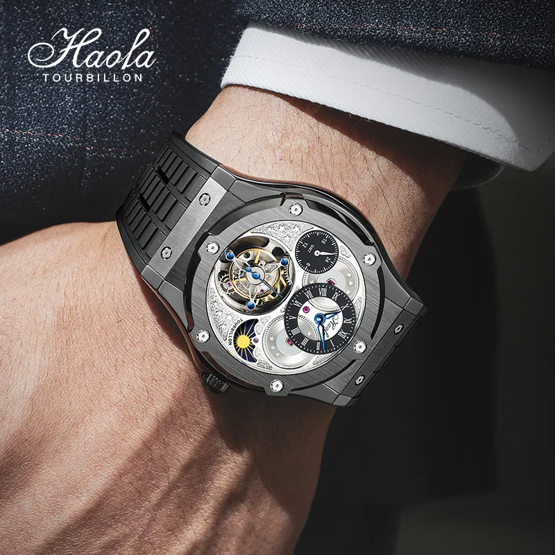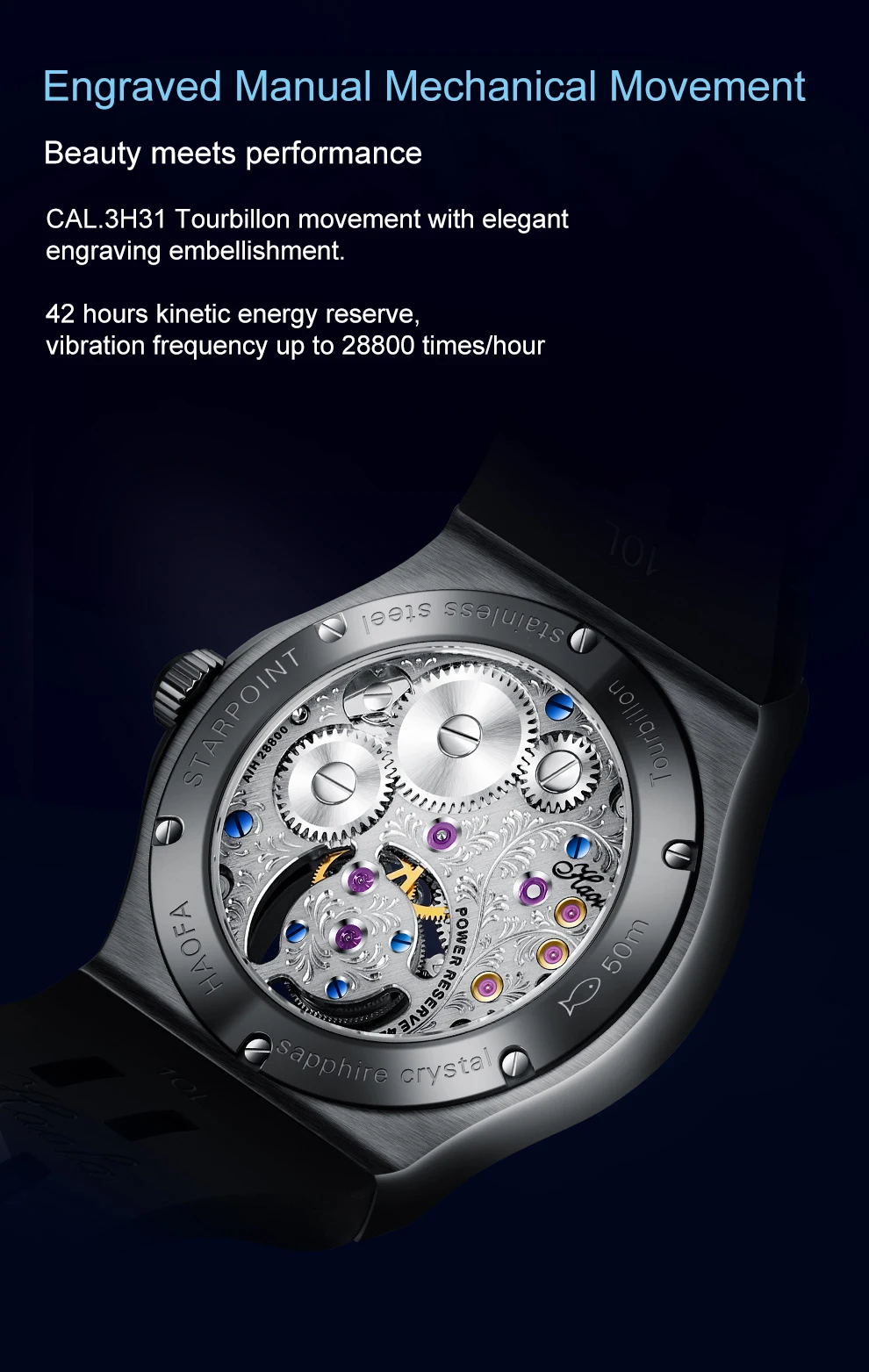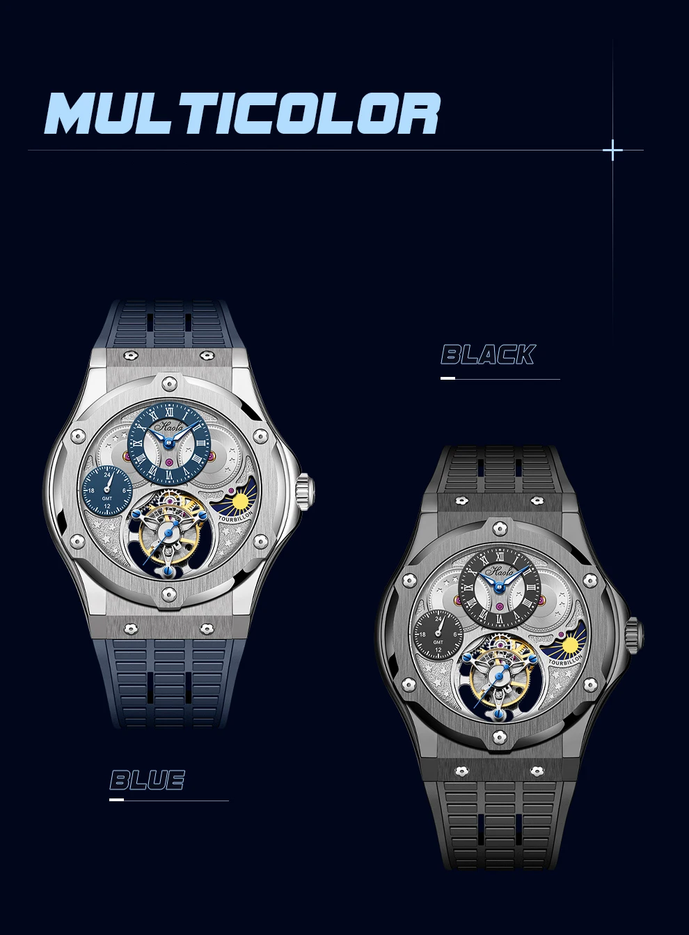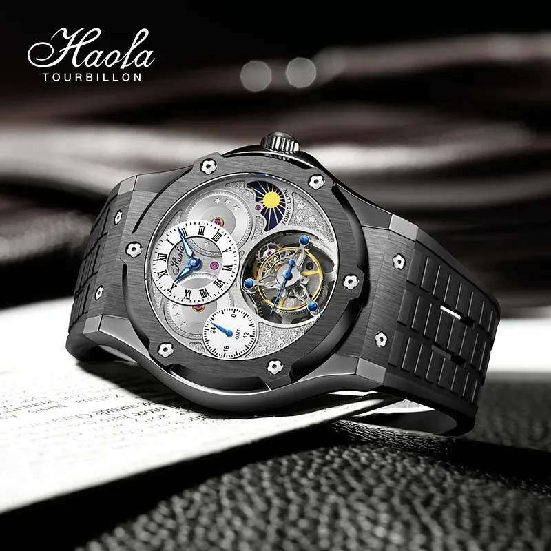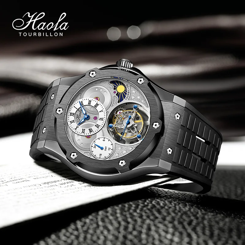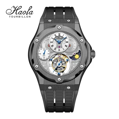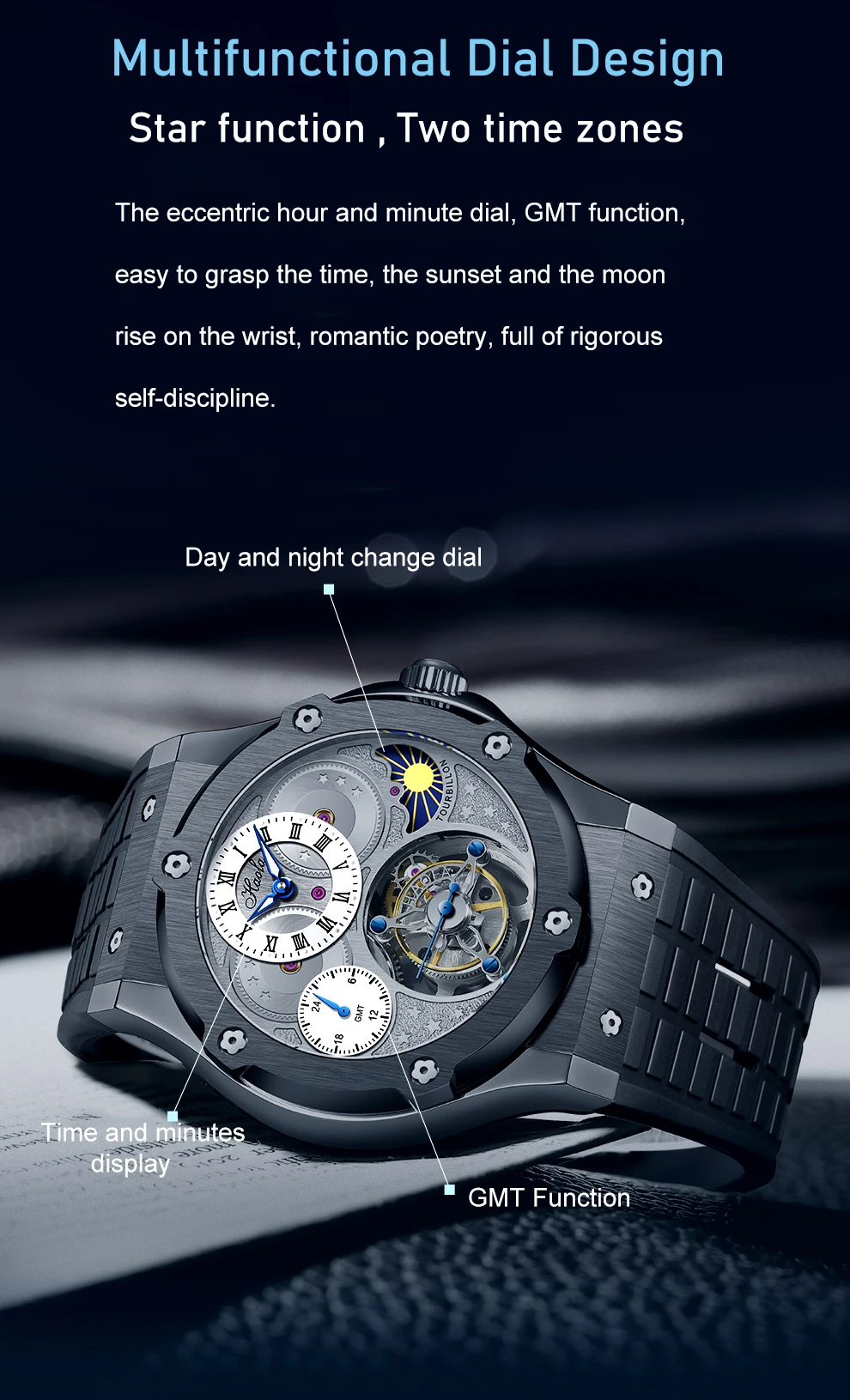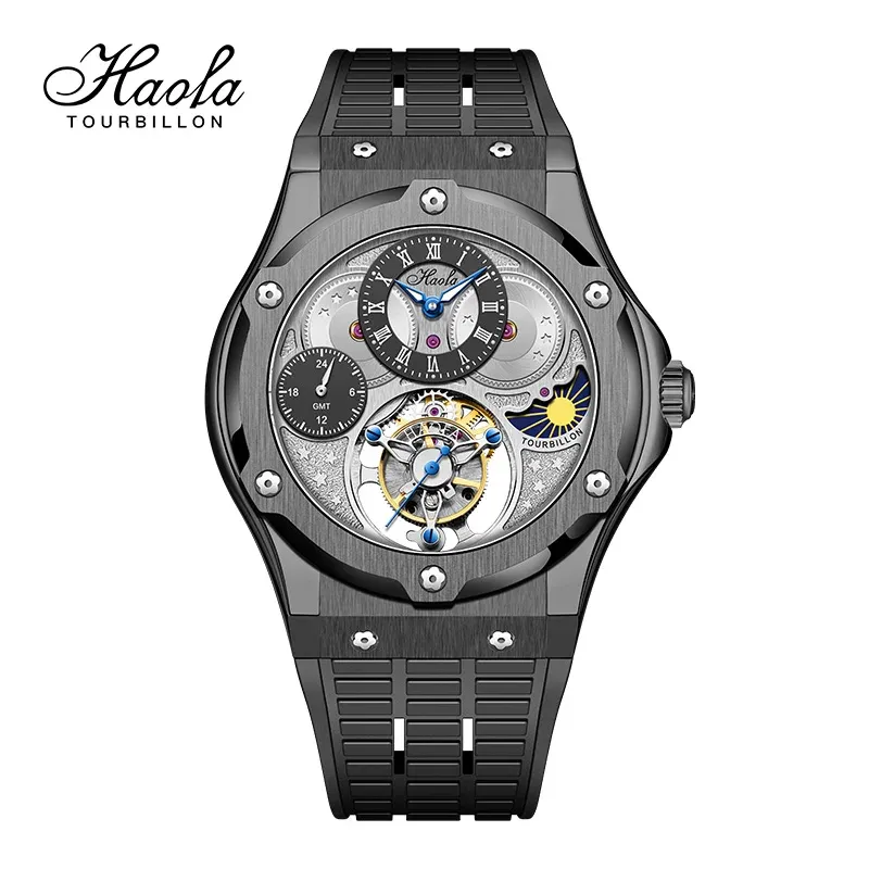 Haofa GMT Flying Tourbillon Men Watch Sapphire Manual Tourbillon Mechanical Movement Day And Night Watch for Men Waterproof 1919