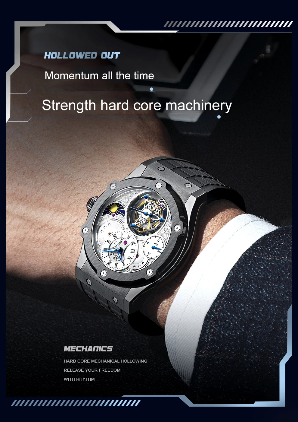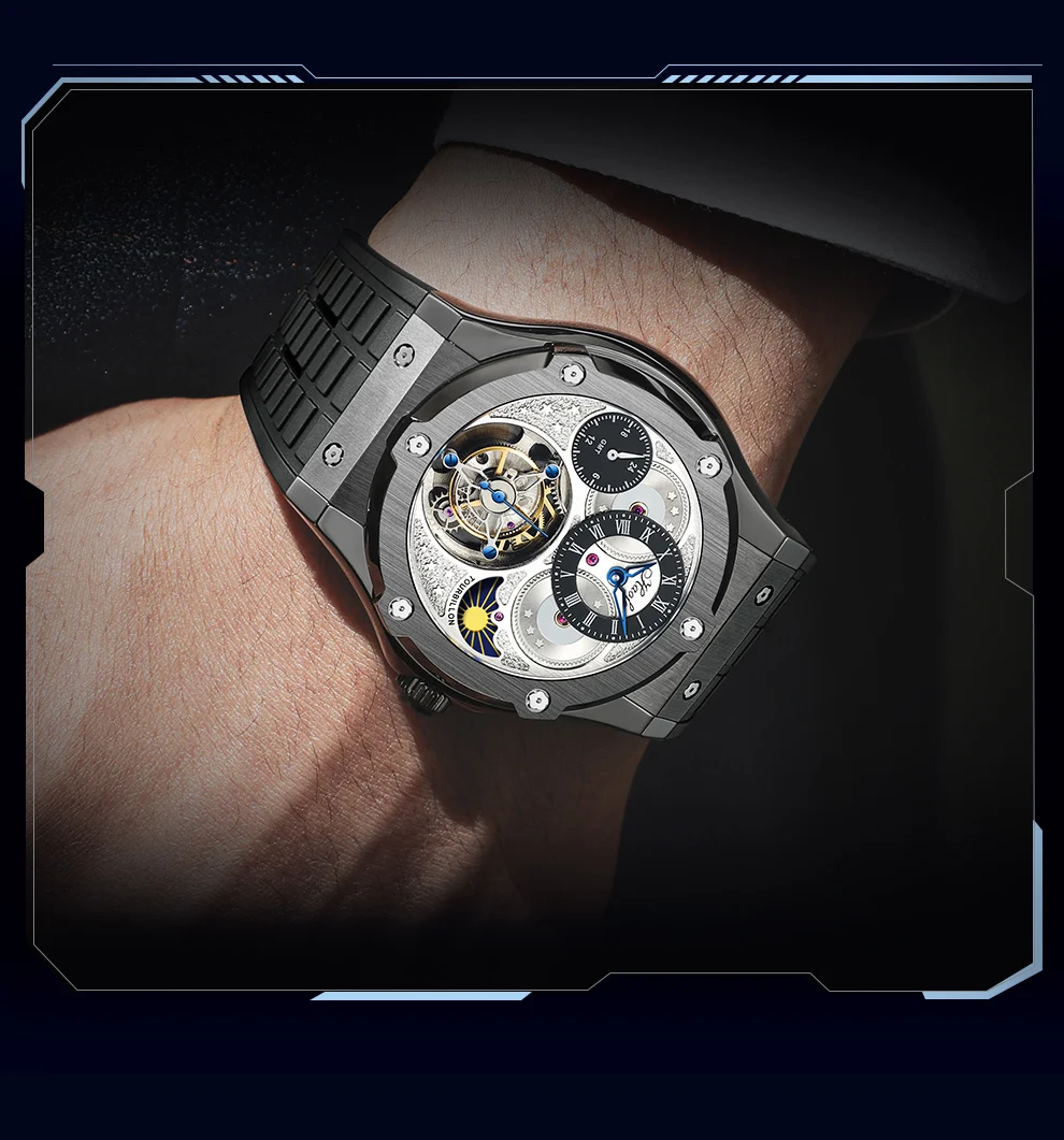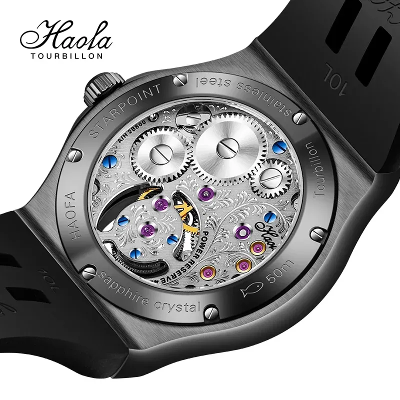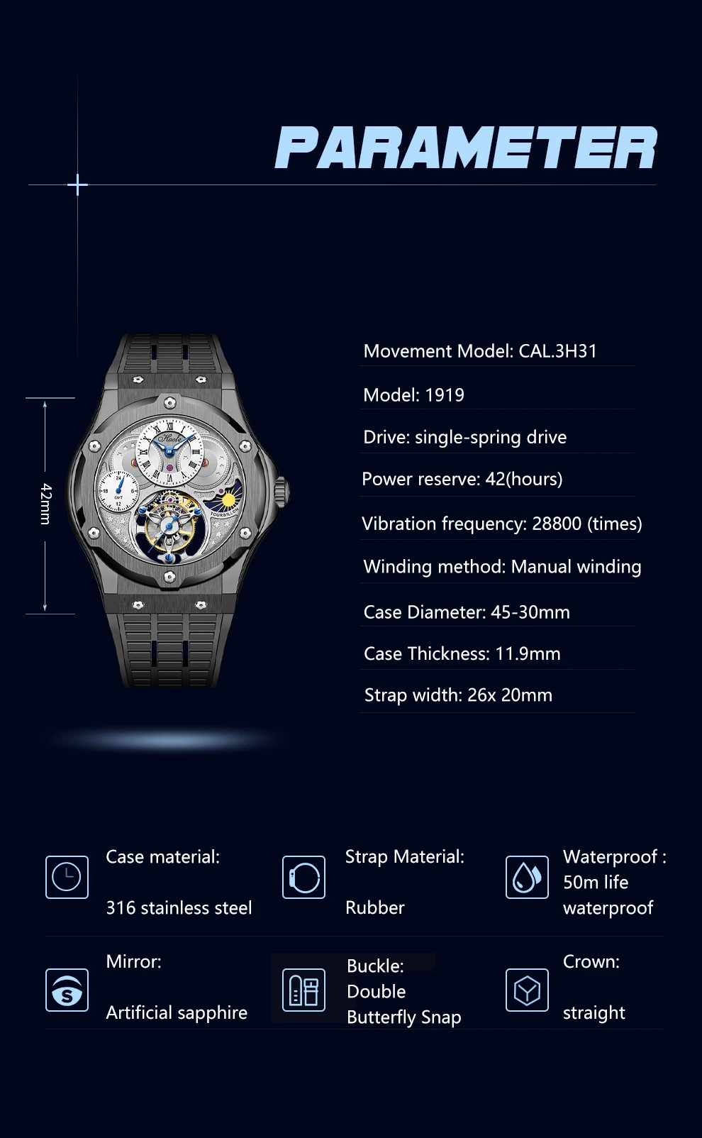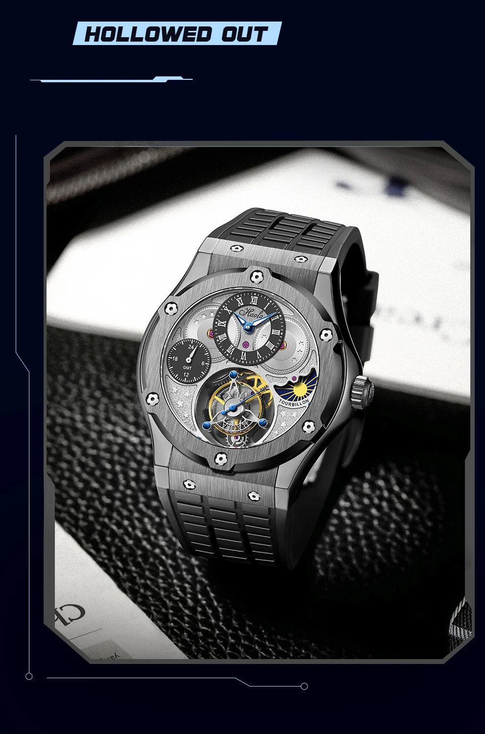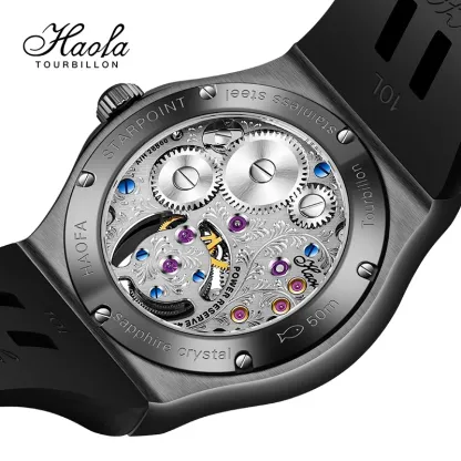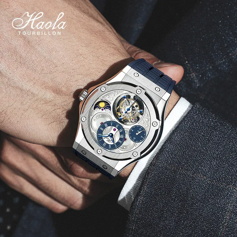 Haofa GMT Flying Tourbillon Men Watch Sapphire Manual Tourbillon Mechanical Movement Day And Night Watch for Men Waterproof 1919