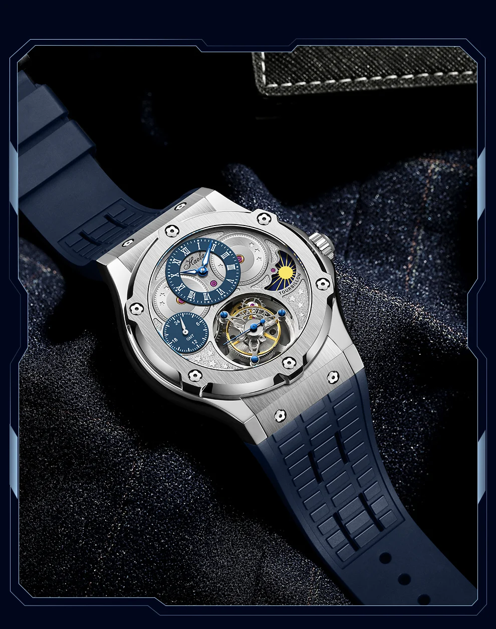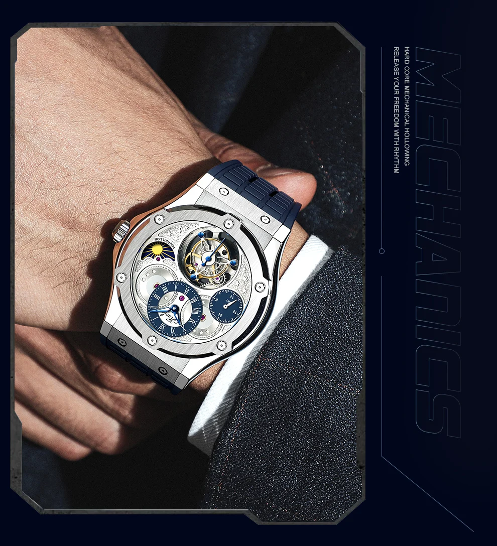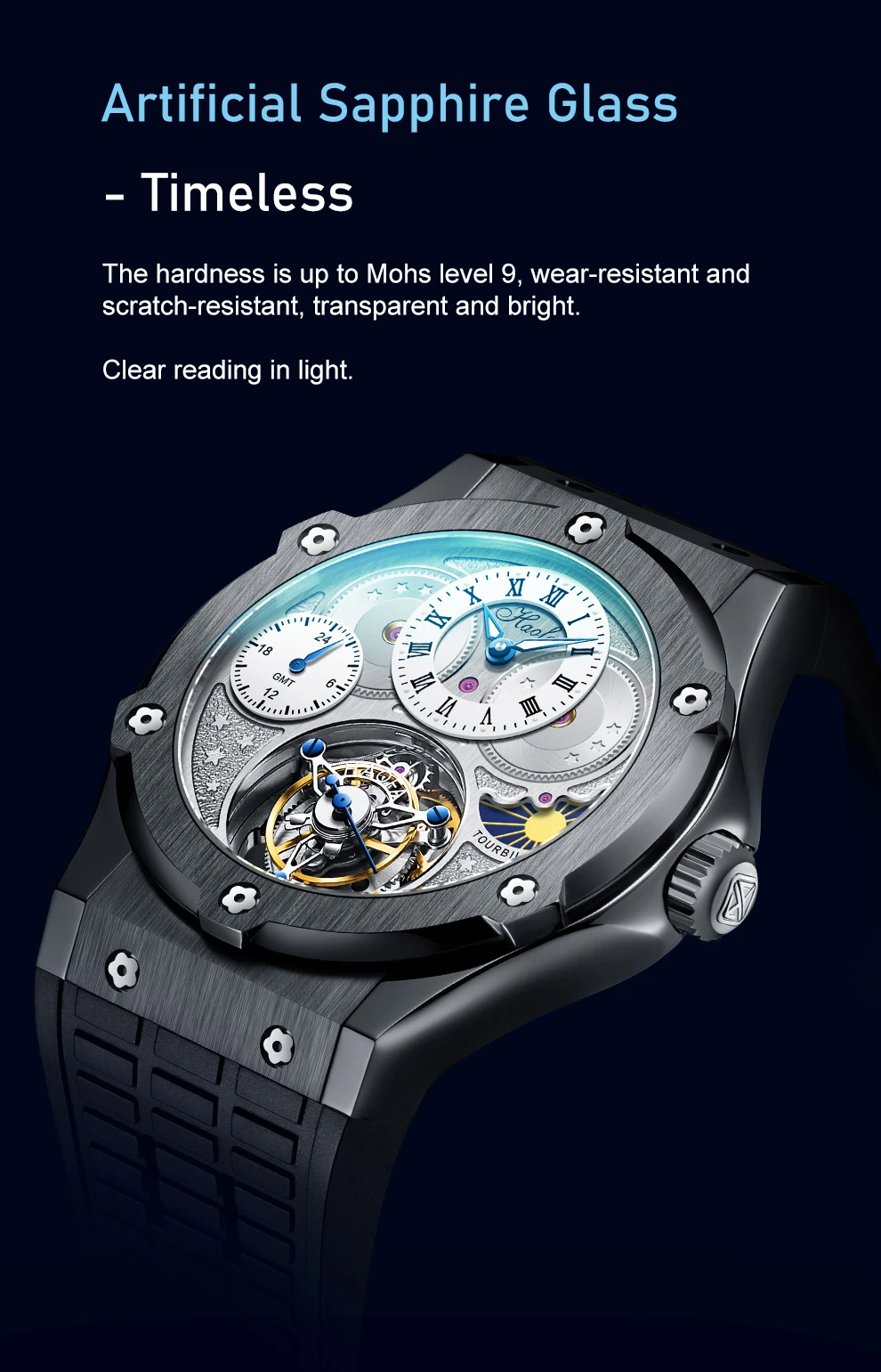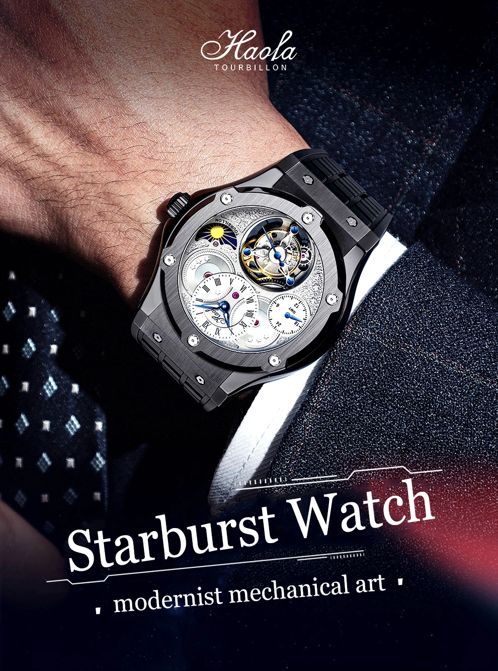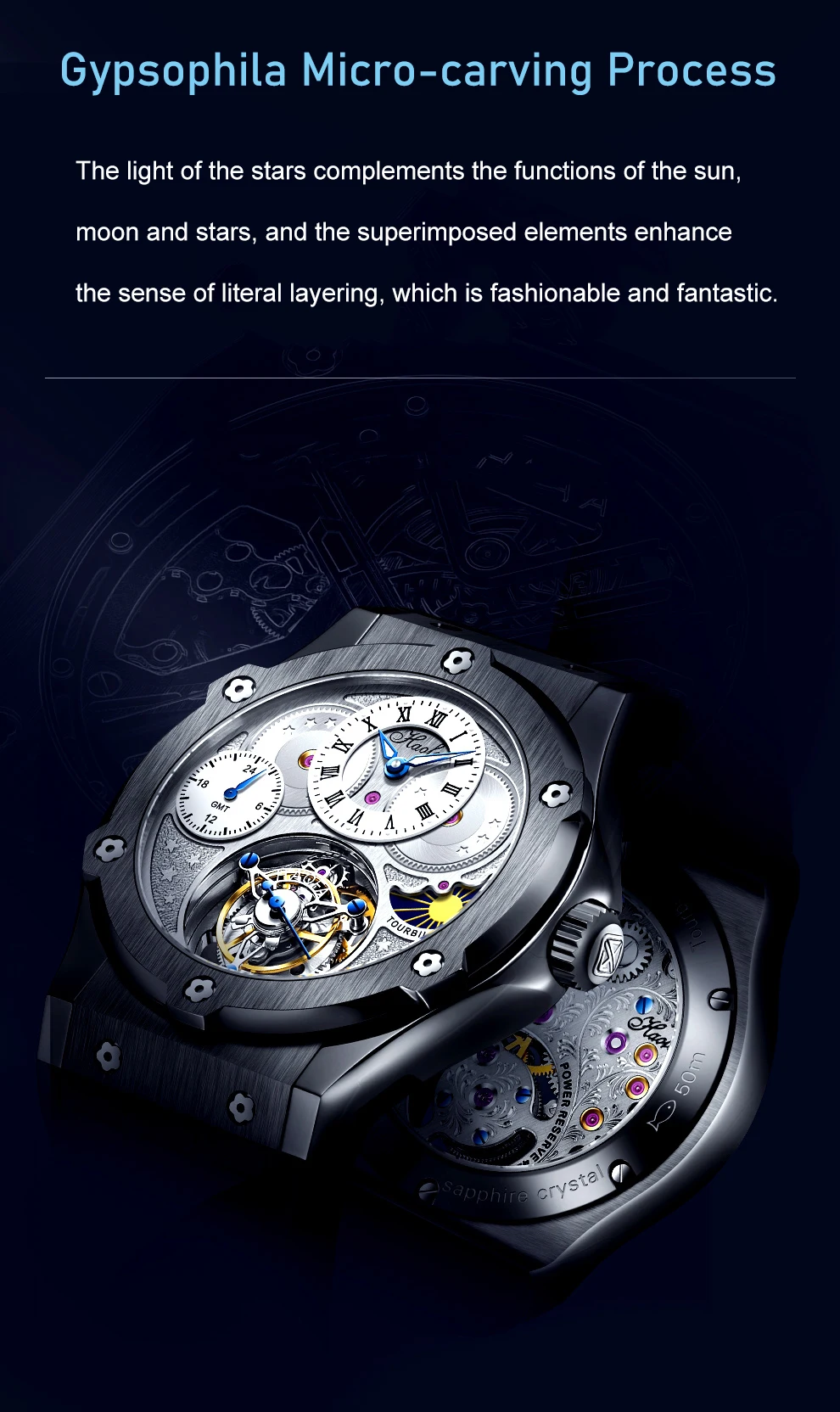 Haofa GMT Flying Tourbillon Men Watch Sapphire Manual Tourbillon Mechanical Movement Day And Night Watch for Men Waterproof 1919