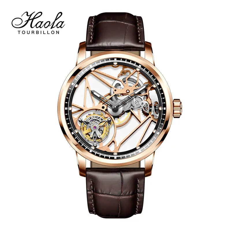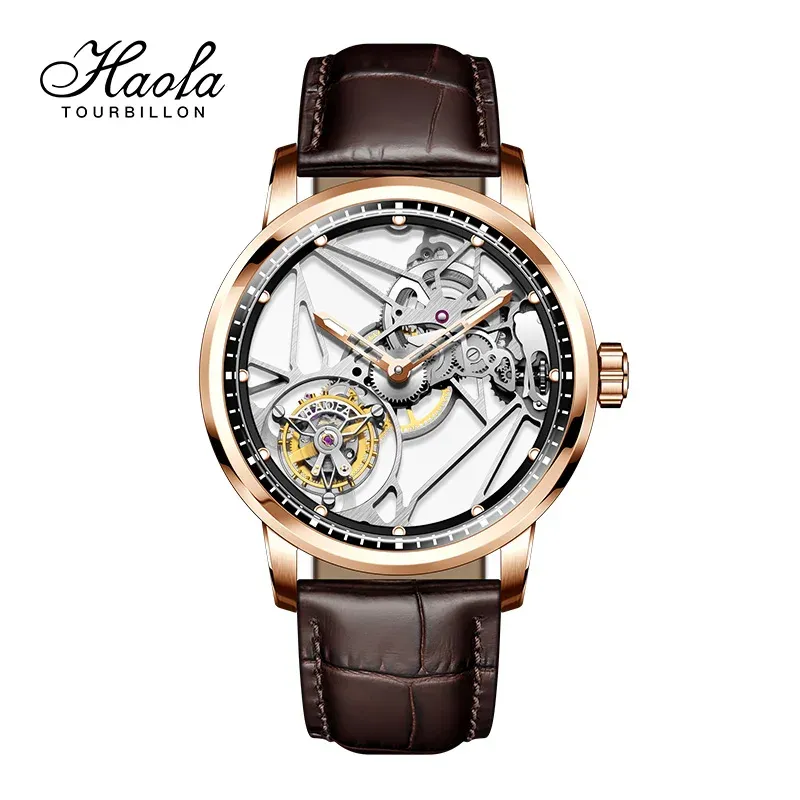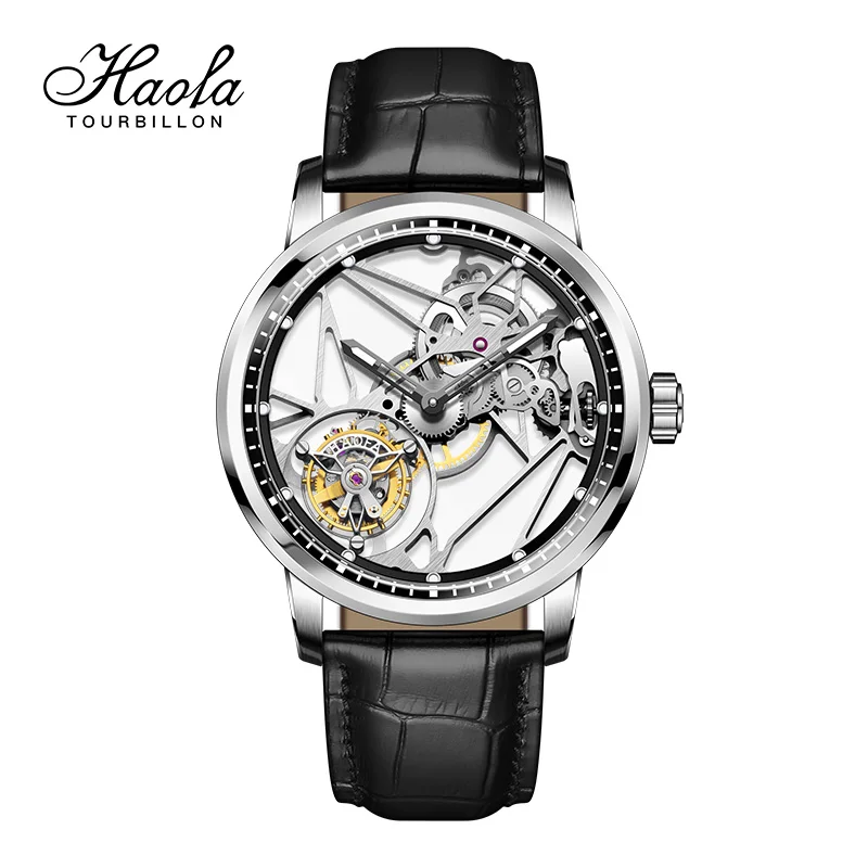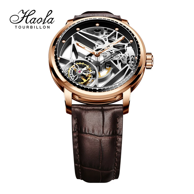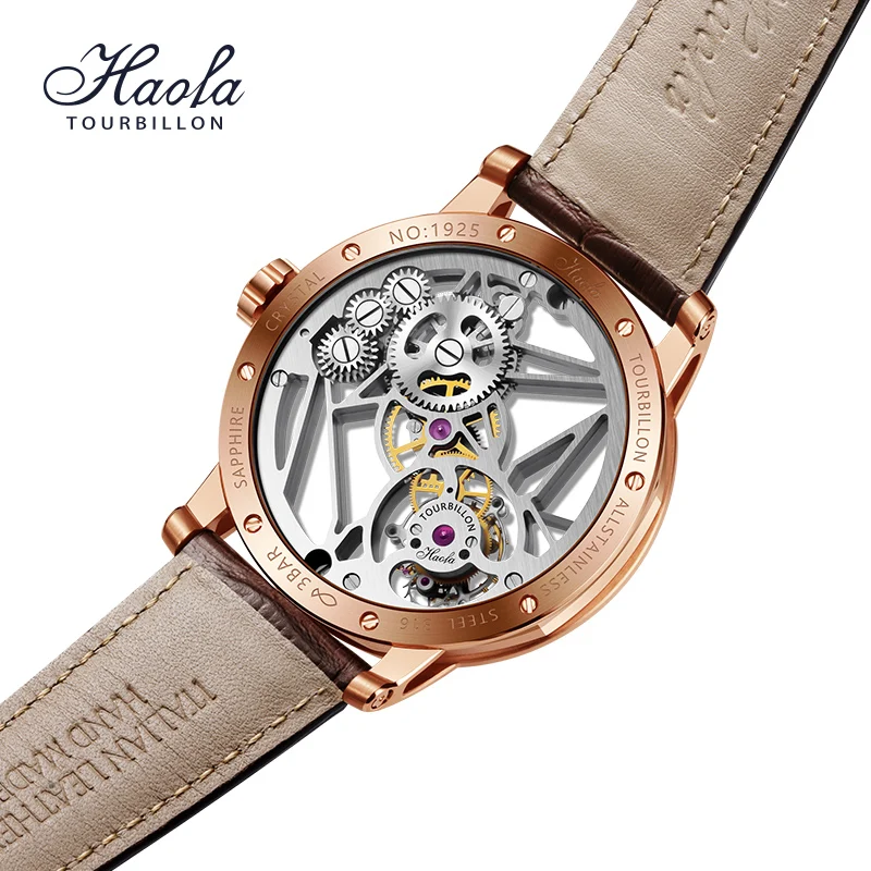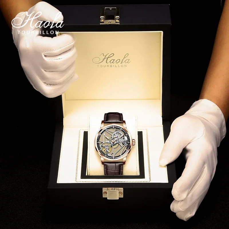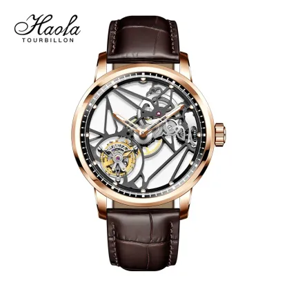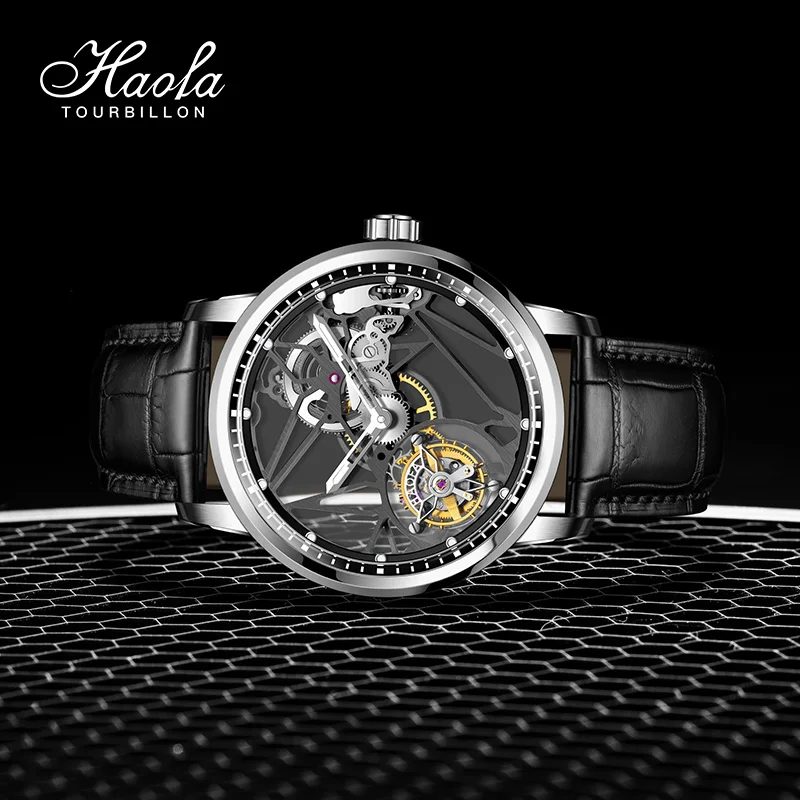 Haofa Luxury Real Skeleton Tourbillon Movement Mens Watch Mechanical Sapphire Manual Tourbillon Hollow Watch For Men Luminous