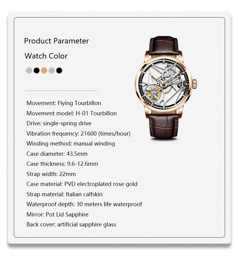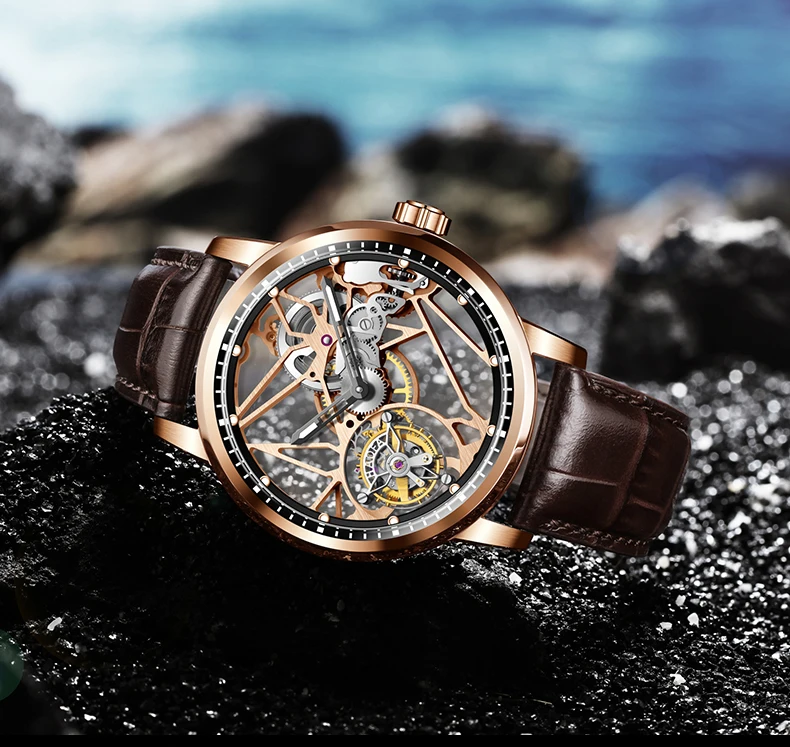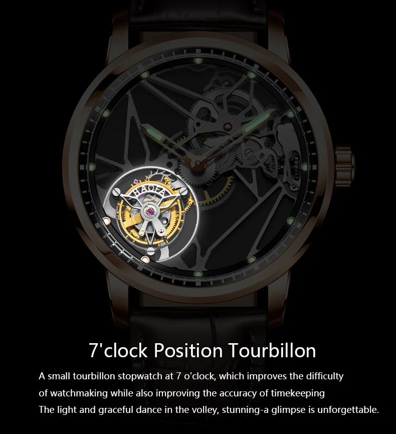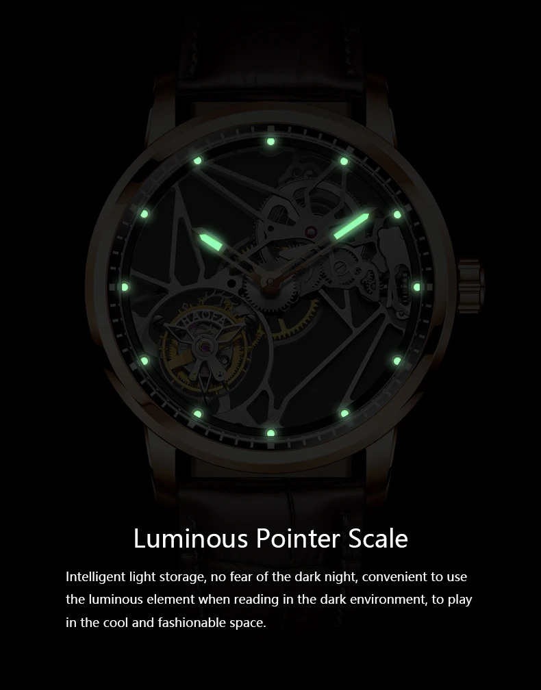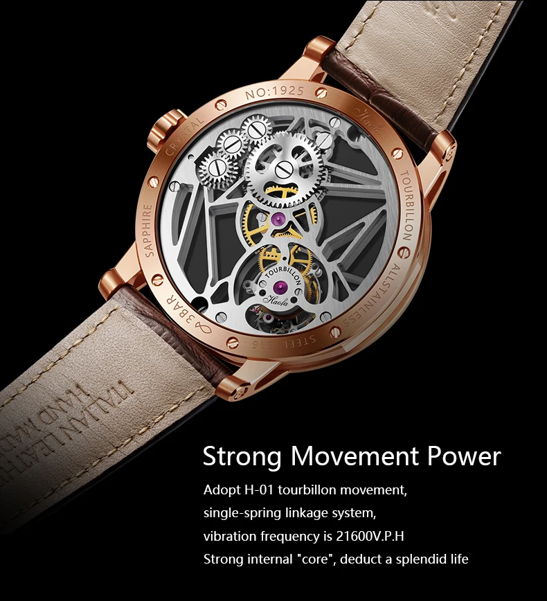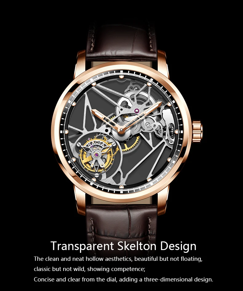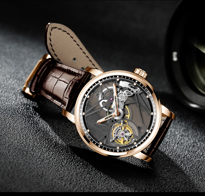 Haofa Luxury Real Skeleton Tourbillon Movement Mens Watch Mechanical Sapphire Manual Tourbillon Hollow Watch For Men Luminous