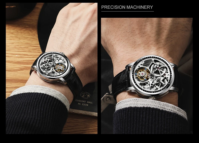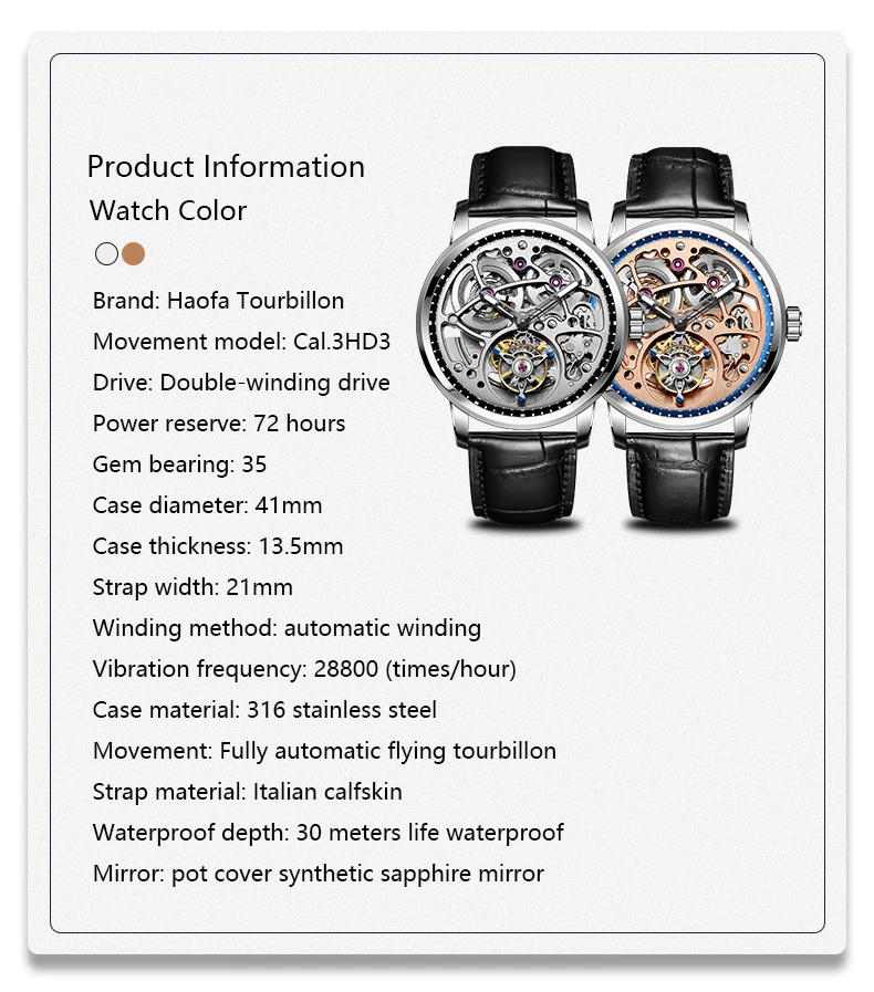 Haofa Real Automatic Tourbillon Mechanical Sapphire Watches Mens Hollow Tourbillon Automatic Movement Watch For Men Luxury
