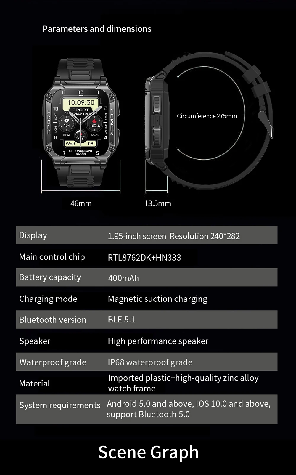 Hit 1.95 "new Bluetooth call smart watch men sport fitness tracker compass weather IP68 waterproof male smartwatch 400mAh